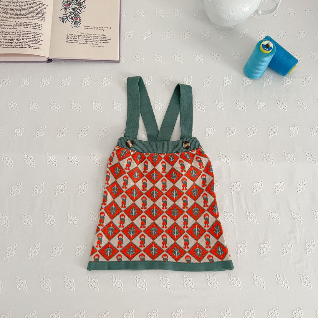 여아 2023 가을과 겨울 새로운 웨스턴 스타일 트렌디 아기의 니트 가디건 탑 스웨터 스트랩 스커트 소녀를위한 투피스 세트