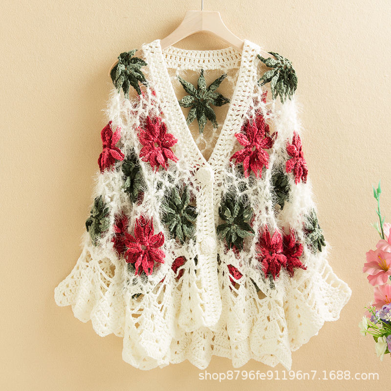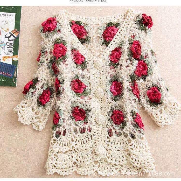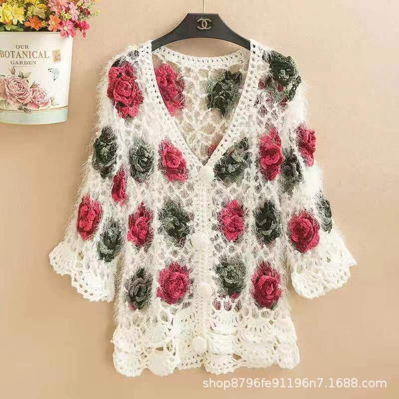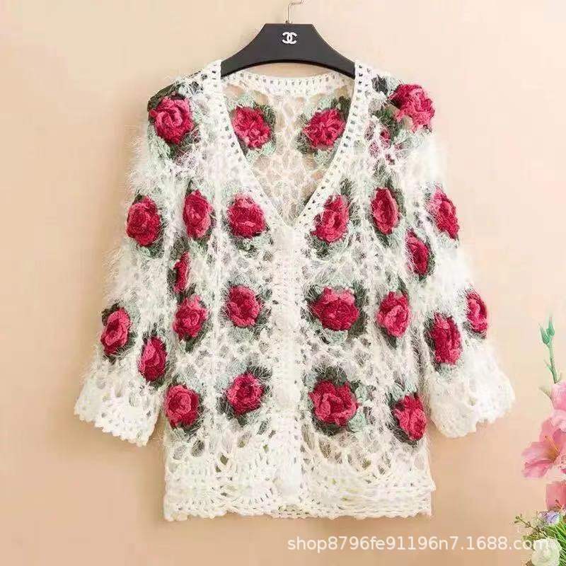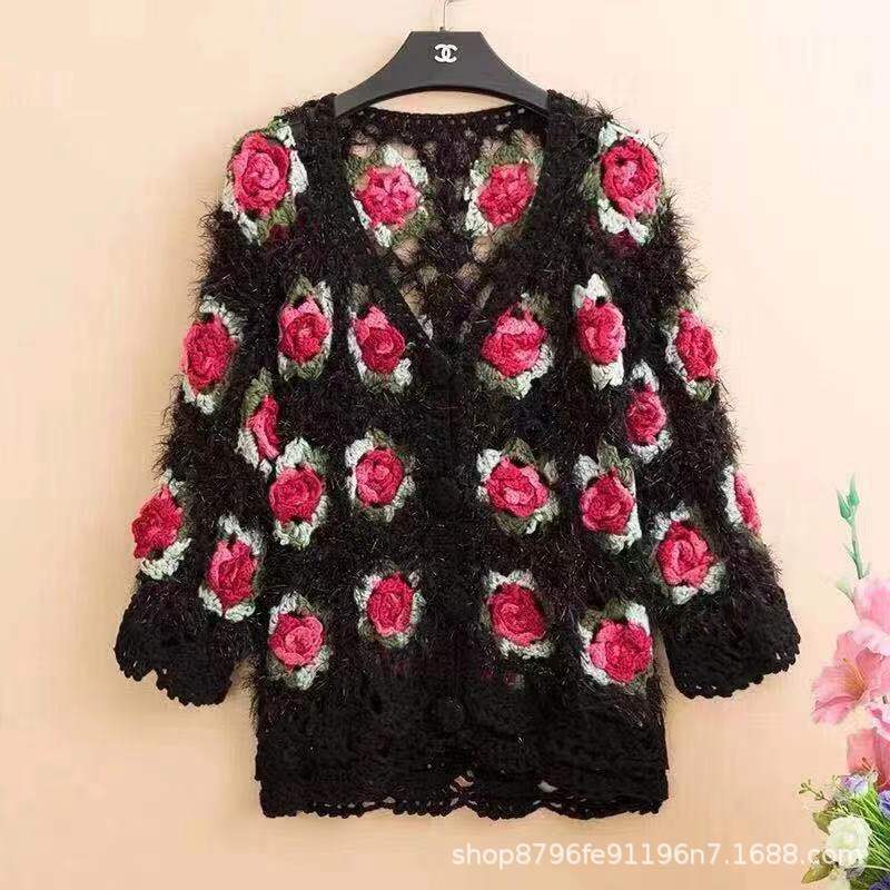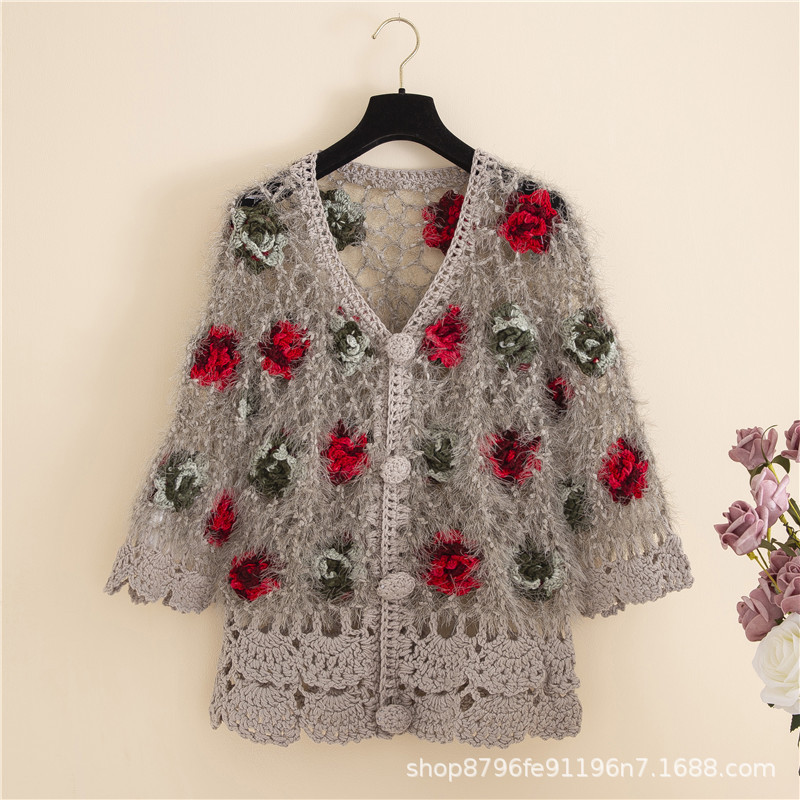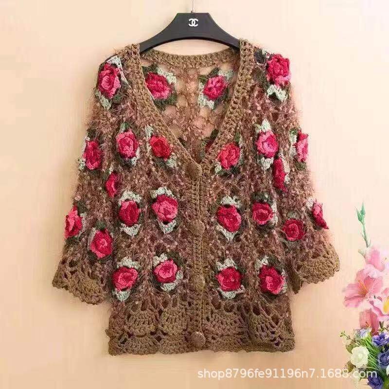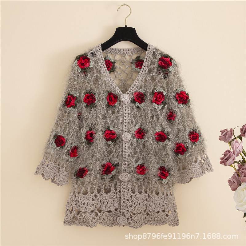 봄과 가을 새로운 버클 중공 가디건 여성용 로즈국 코트 슬림 스웨터 중공 아웃 핏 스웨터스토어 가기