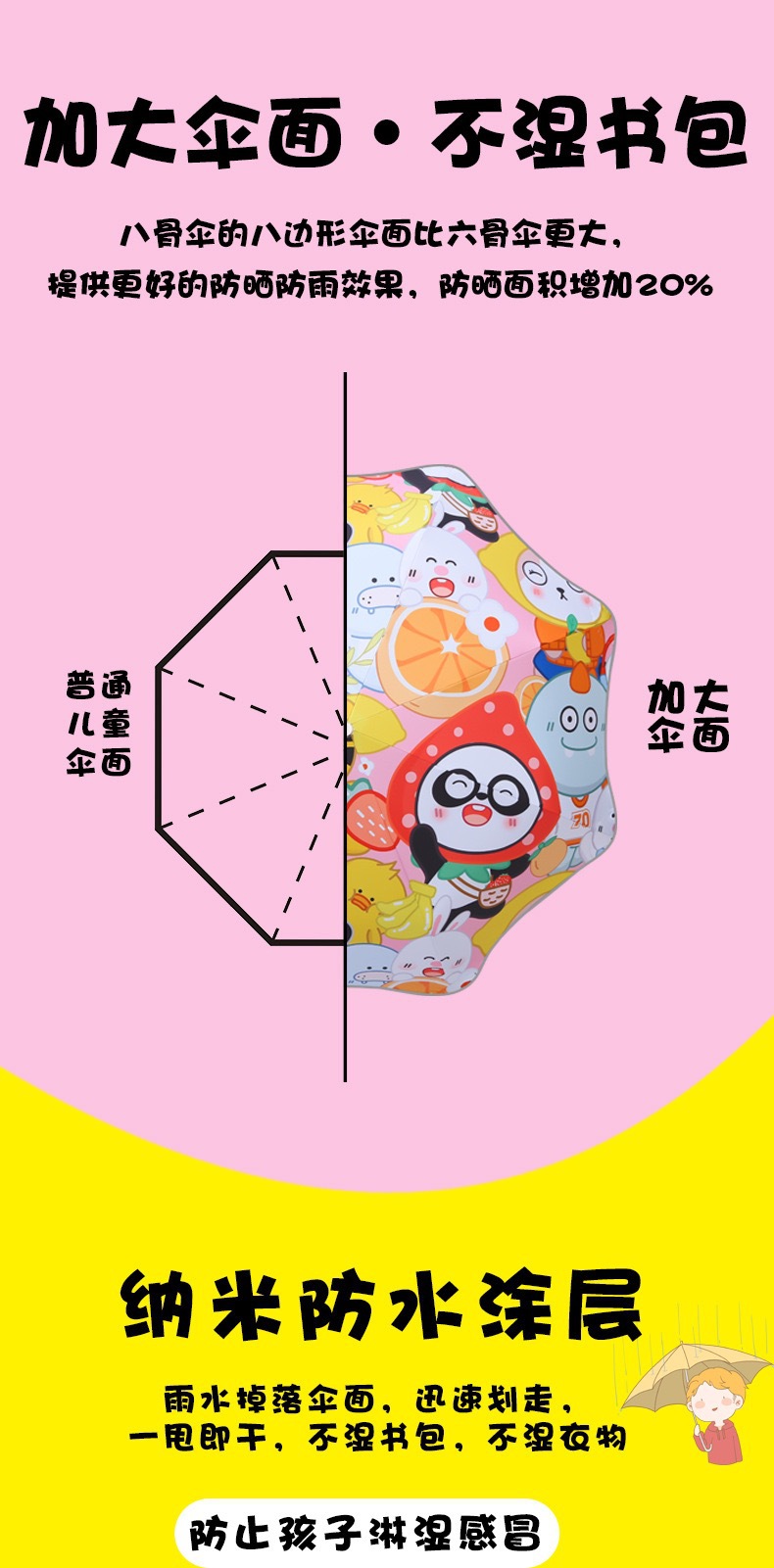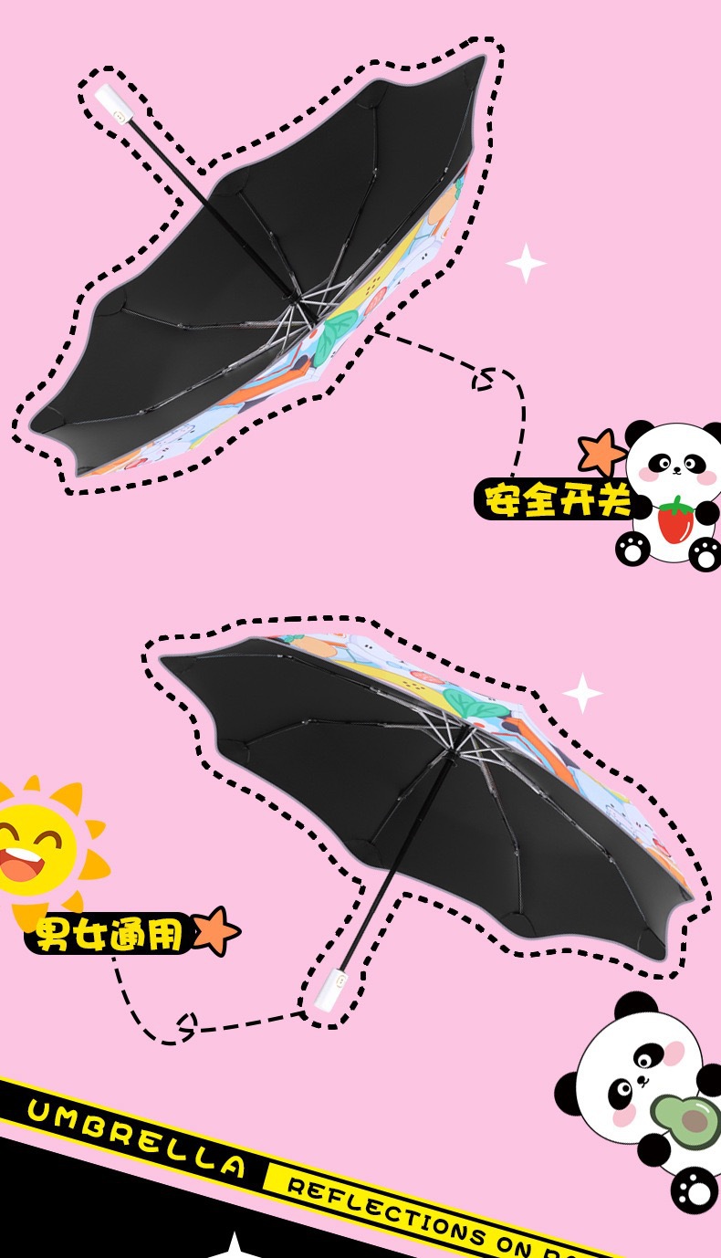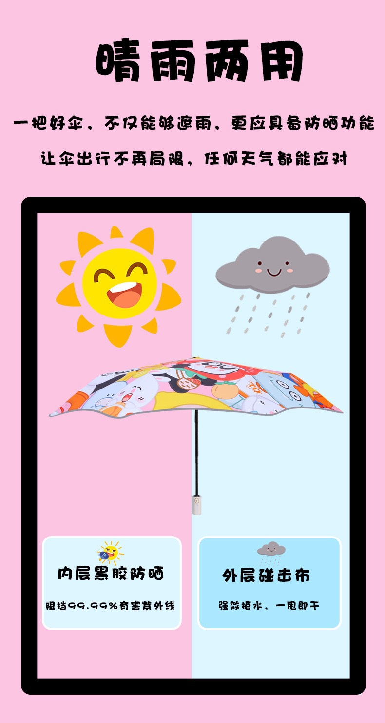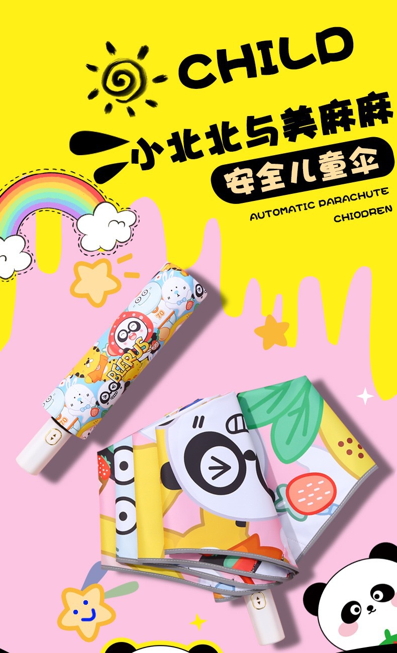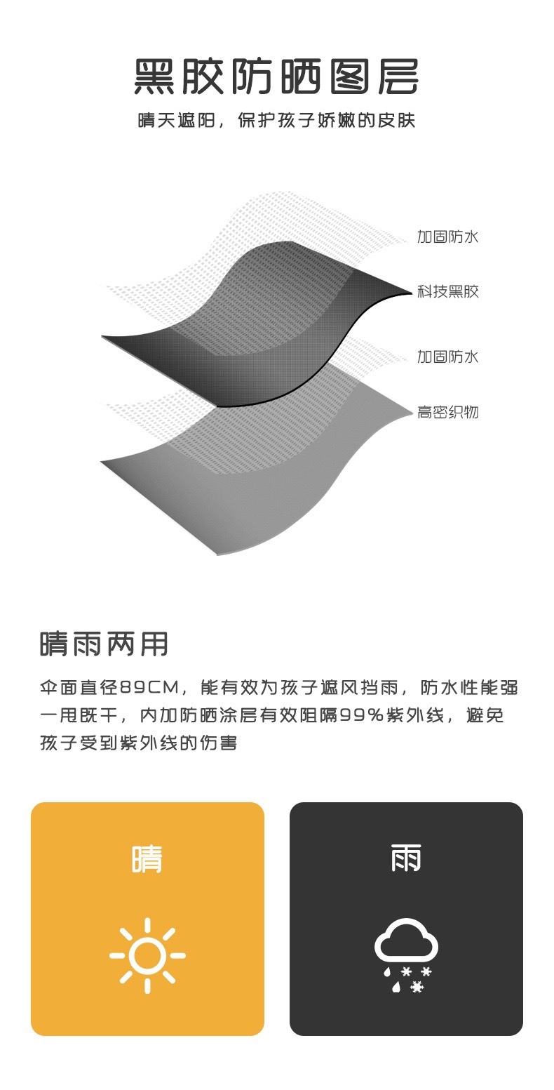 어린이 우산 자동 방폭 안전 써니 우산 비루스 블랙 고무 태양 보호 초등 학생을위한 UV 보호 둥근 우산스토어 가기