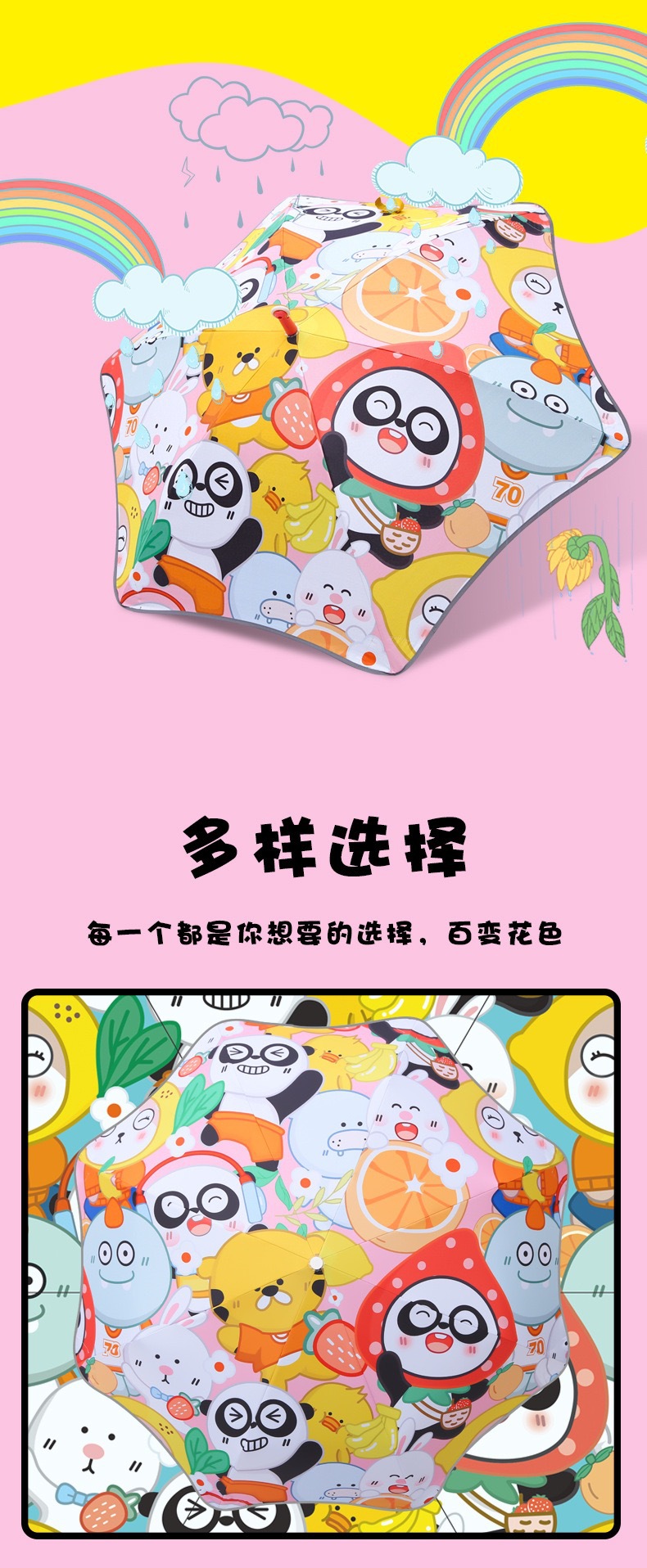 • 과일 파티 대형 직선 우산 핑크