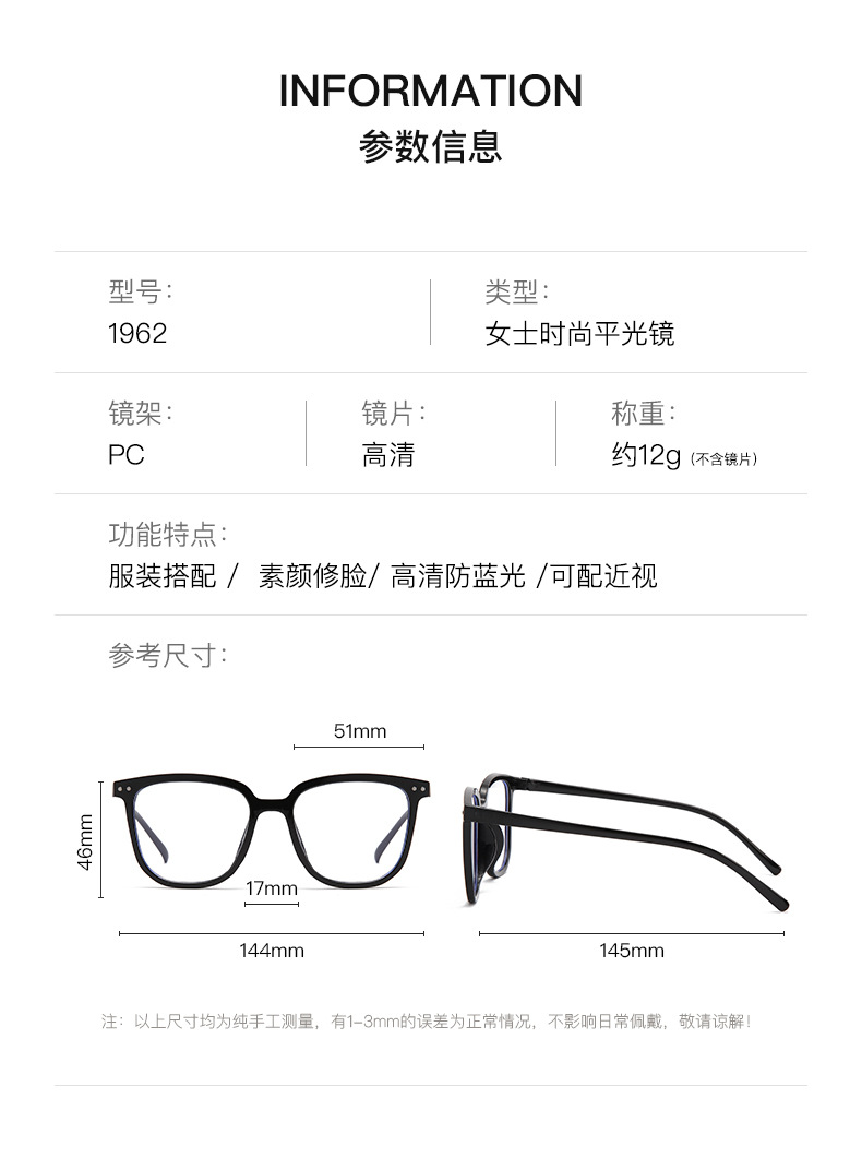 새로운 안티 블루 라이트 안경 여성 한국식 무지 불규칙 플랫 미러 남성 완료 근시 1962 가공 커스텀스토어 가기