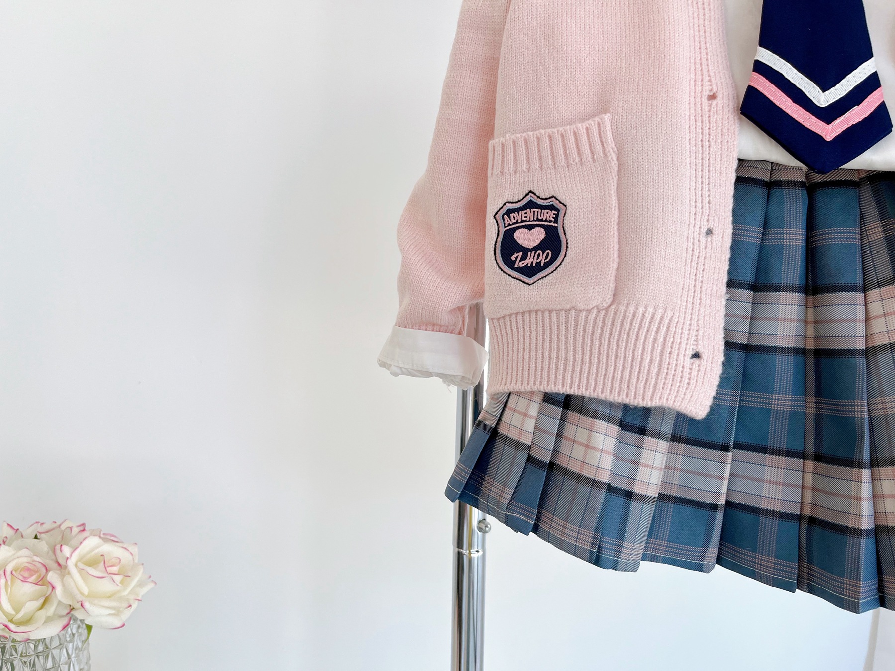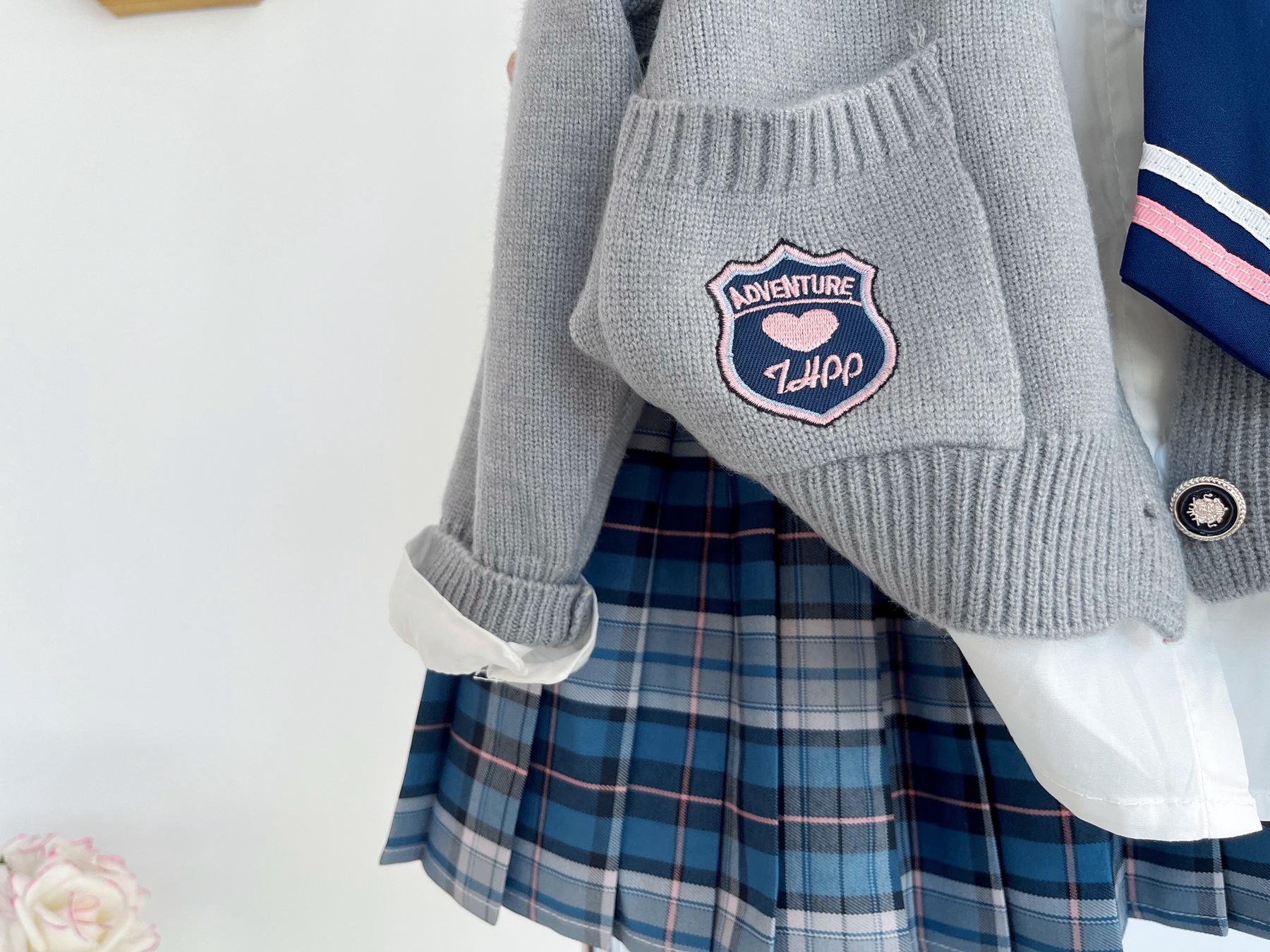 대학 스타일 JK 세트 소녀 가을과 겨울 토끼 유니폼 니트 카디건 화이트 셔츠 격자 무늬 주름스토어 가기