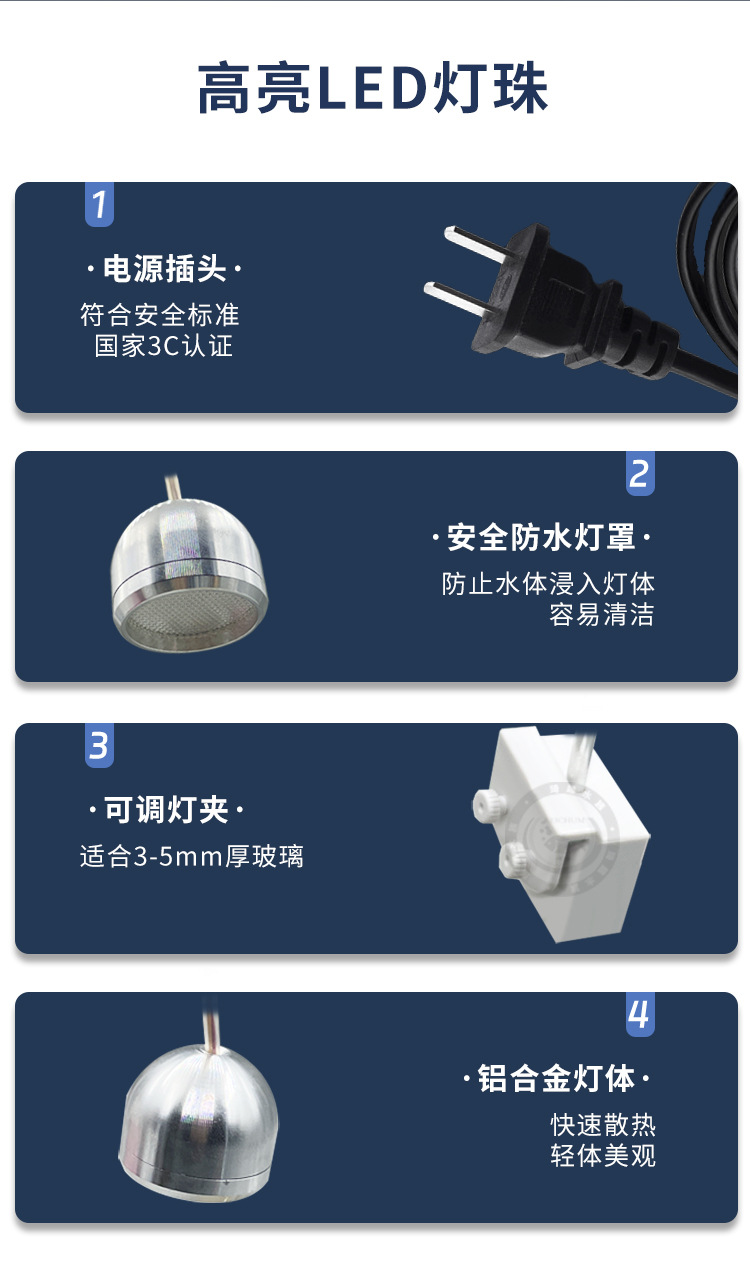 • 유리 두께가 5MM 미만인 3W [파란색 및 흰색 조명]