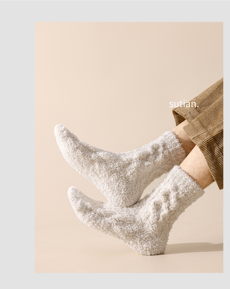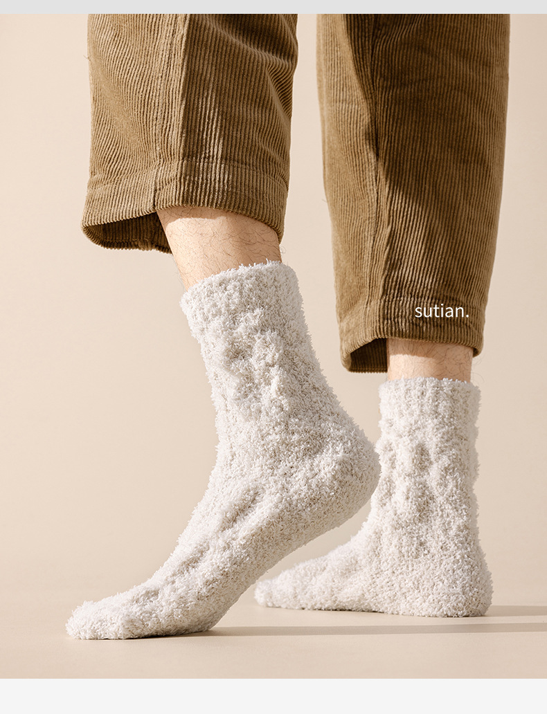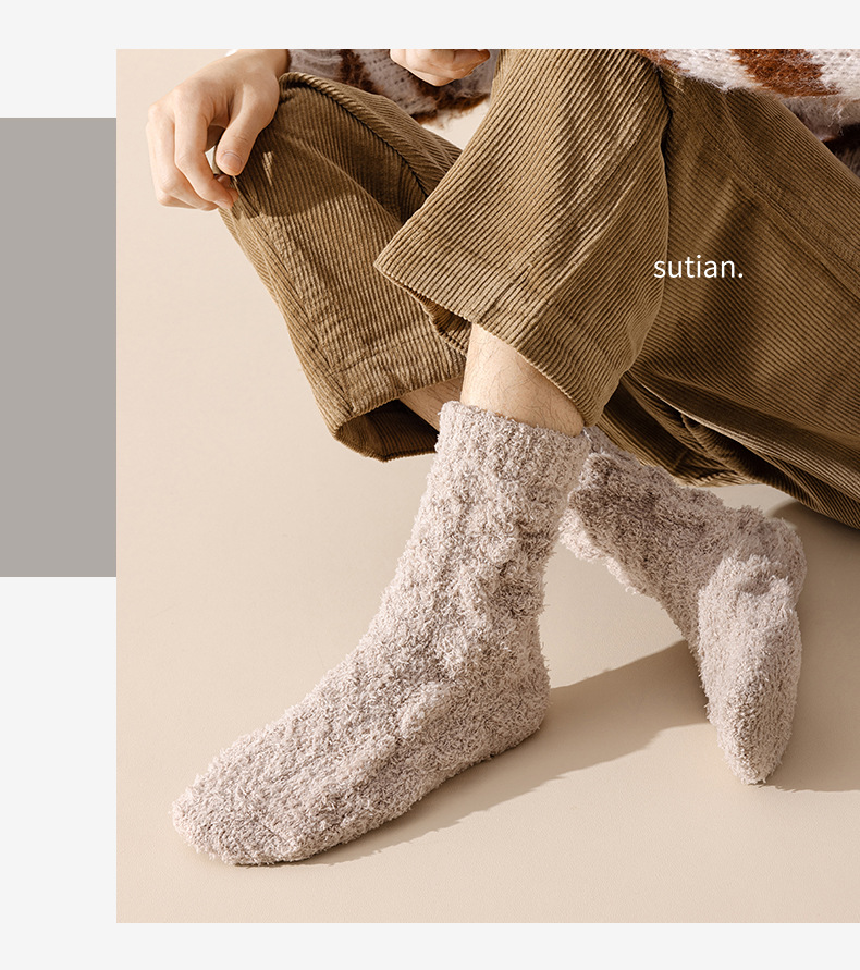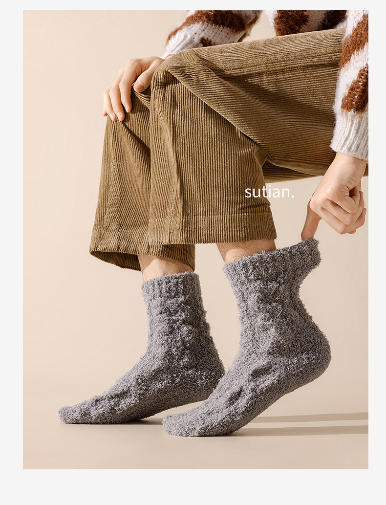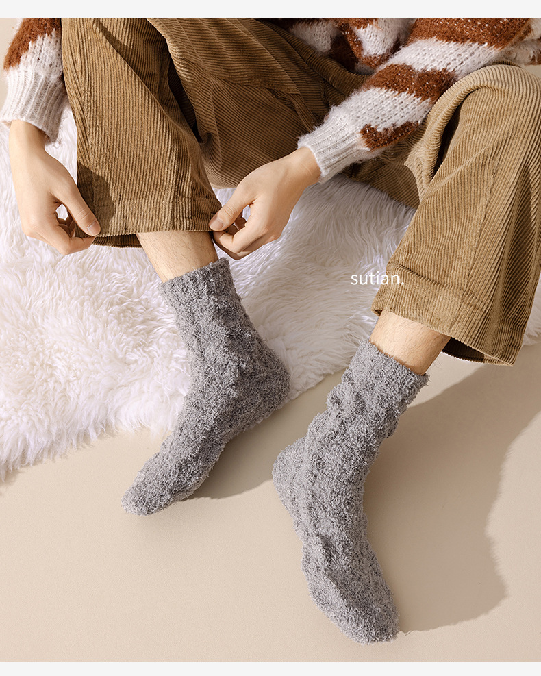 산호 벨벳 양말 남성용 중간 길이 양말 가을과 겨울 두꺼운 기모 따뜻한 유행 겨울 홈 봉제 긴 튜브 남성 양말