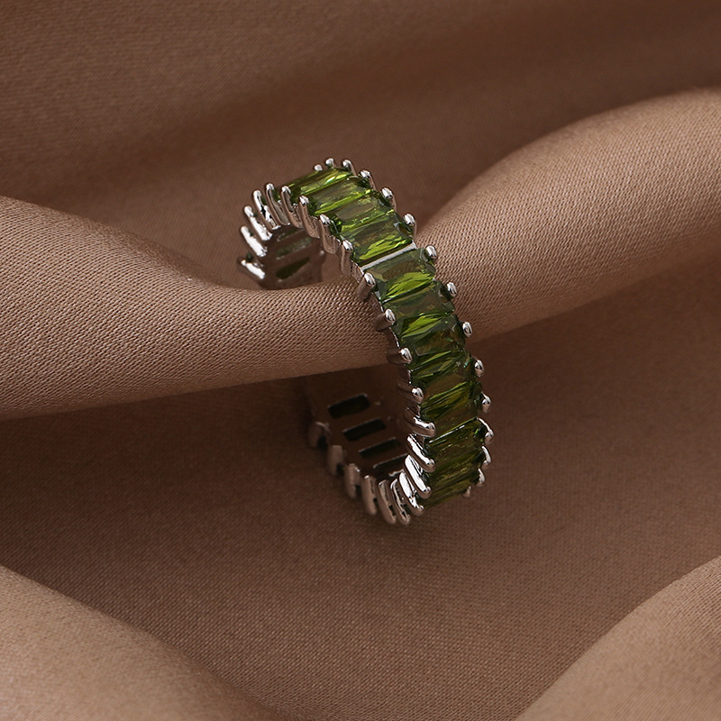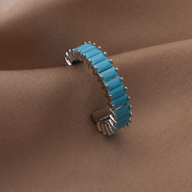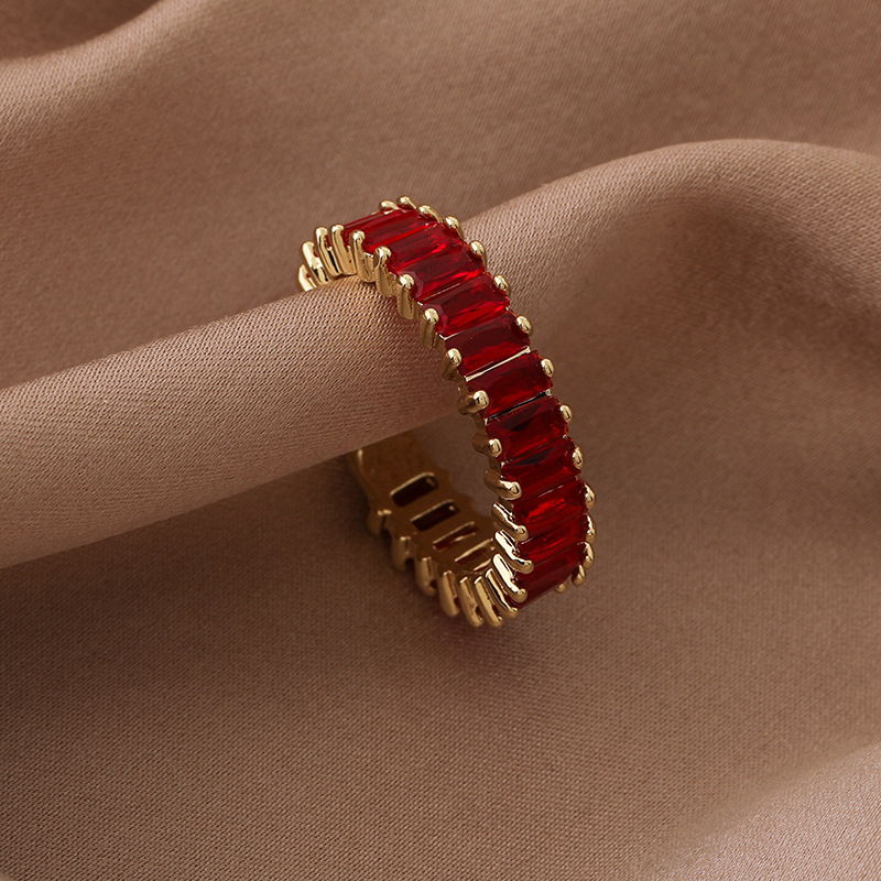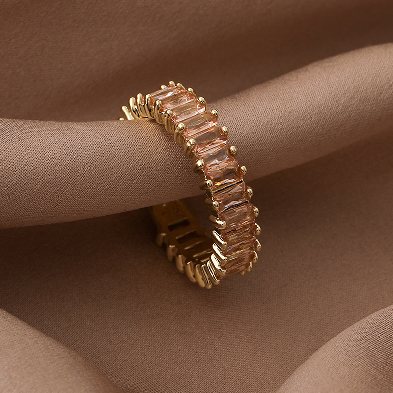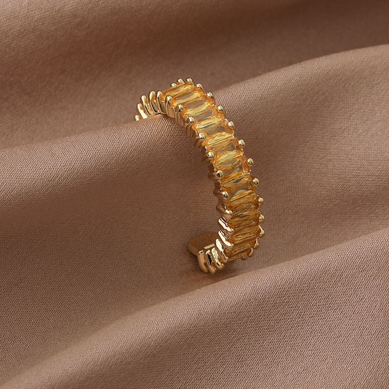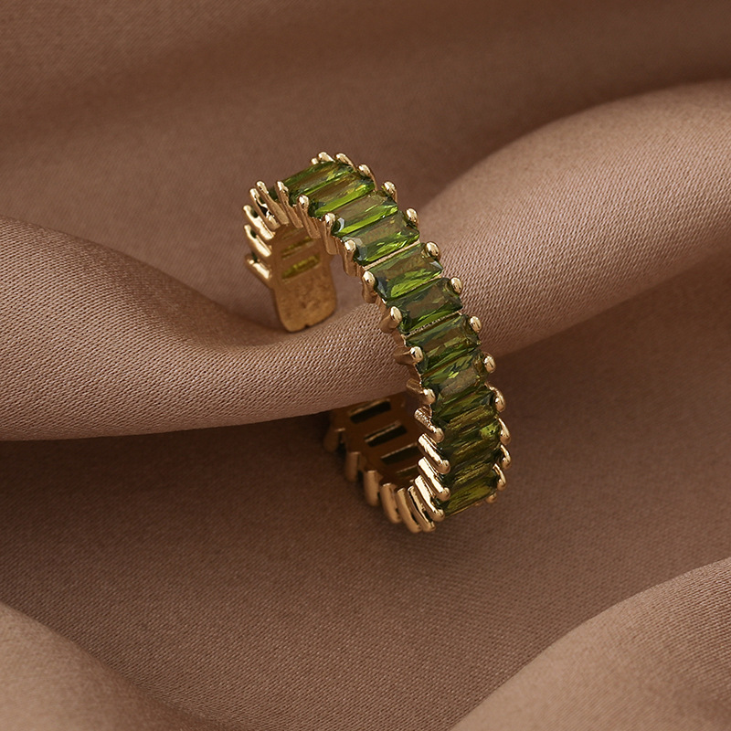 간단한 마이크로 상감 스퀘어 다이아몬드 링 유럽과 미국 패션 인기있는 라이트 럭셔리 컬러 지르콘 메탈 오픈 링 쥬얼리스토어 가기