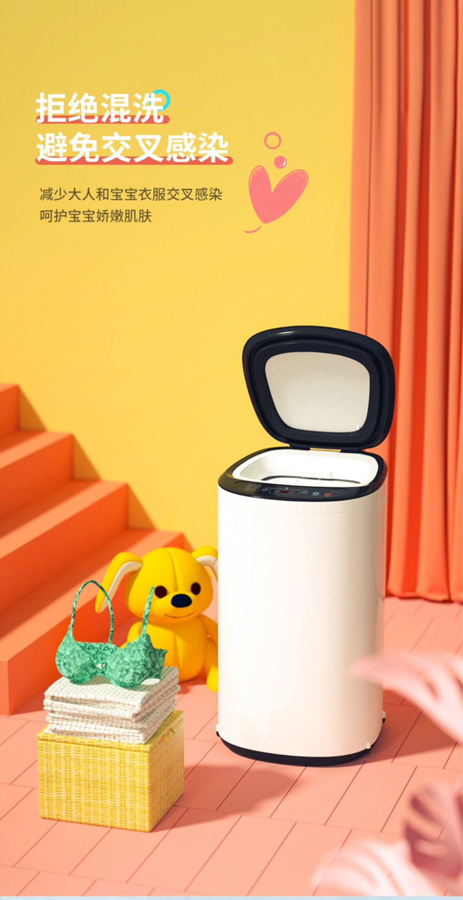 지제 꼬마 노랑 오리 3.5kg 아기 자동 세탁기 미니 가정용 고온 살균 세탁 건조