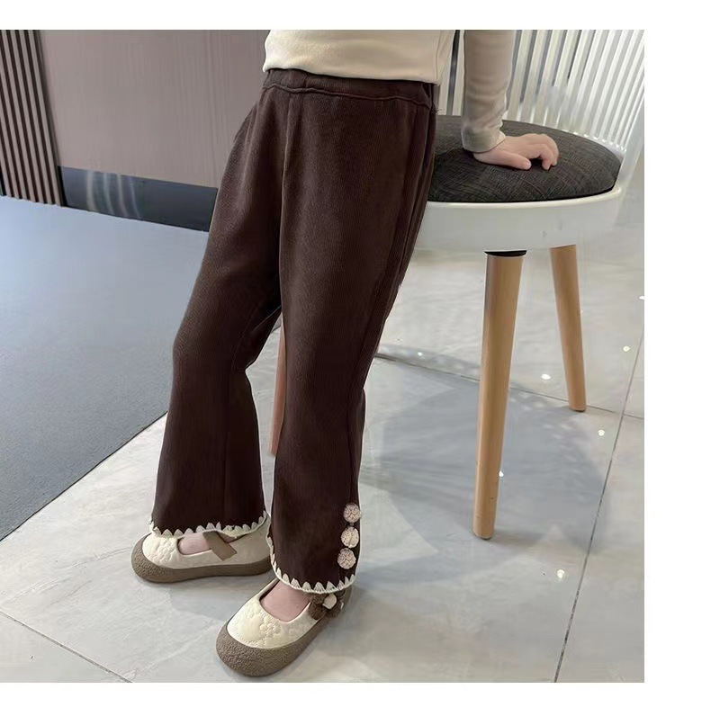 새로운 여성 아기 겉옷 레깅스 레이스 외국 스타일 플레어 팬츠 모든 매치 바지 여아 가을과 겨울 양털 긴 바지스토어 가기