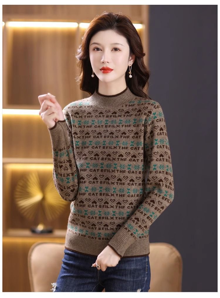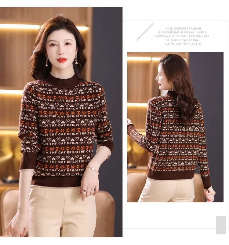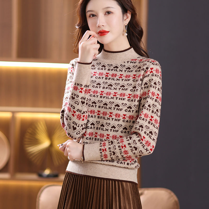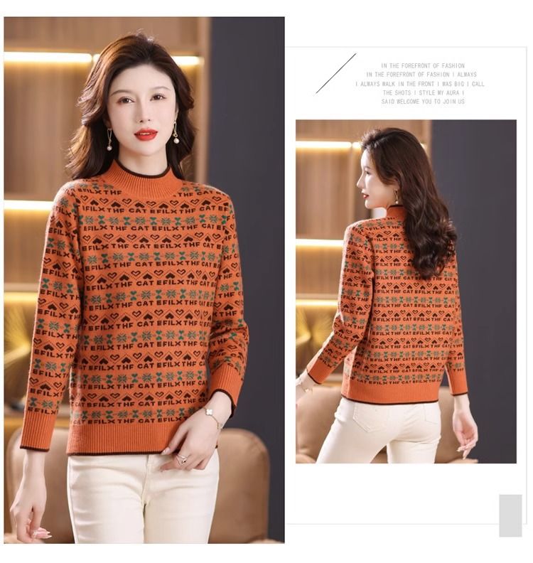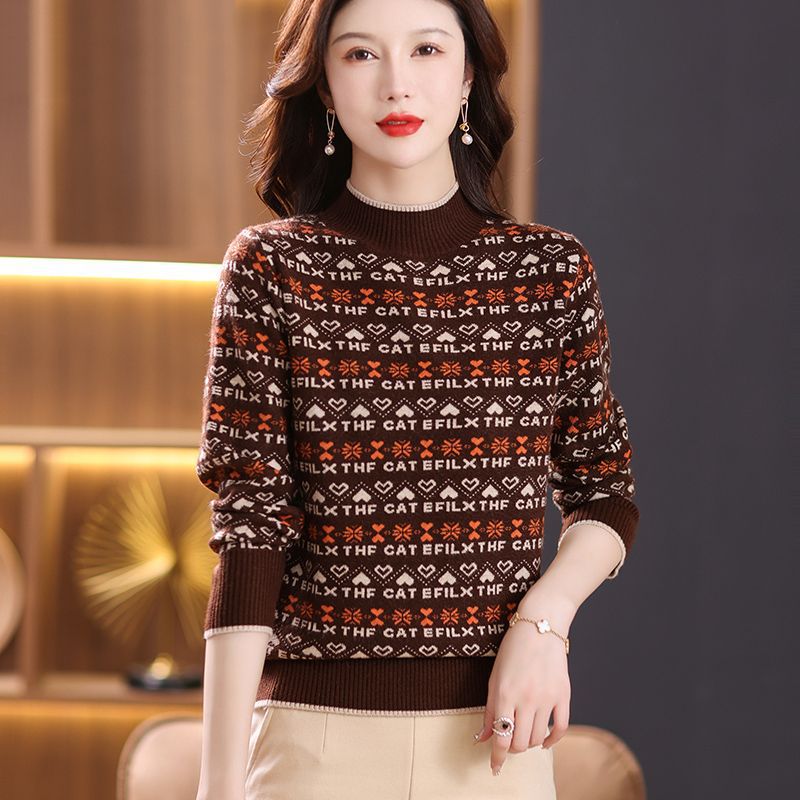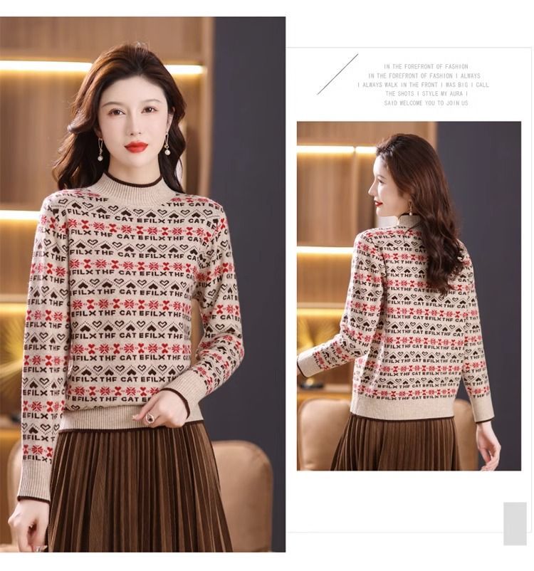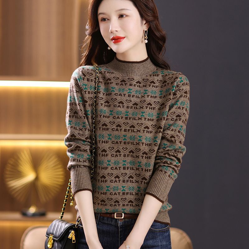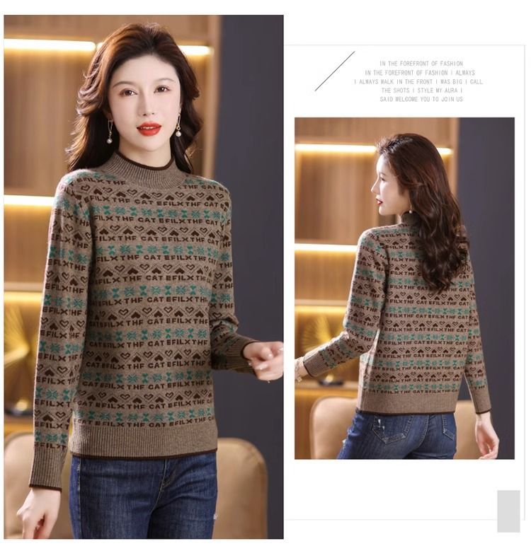 【양모】세련된 니트 스웨터, 하프 터틀넥 엄마 스웨터, 우아한 이너웨어, 울 베이스 레이어, 두꺼운 가을 겨울용스토어 가기