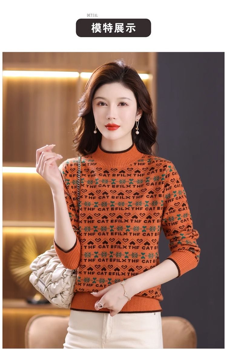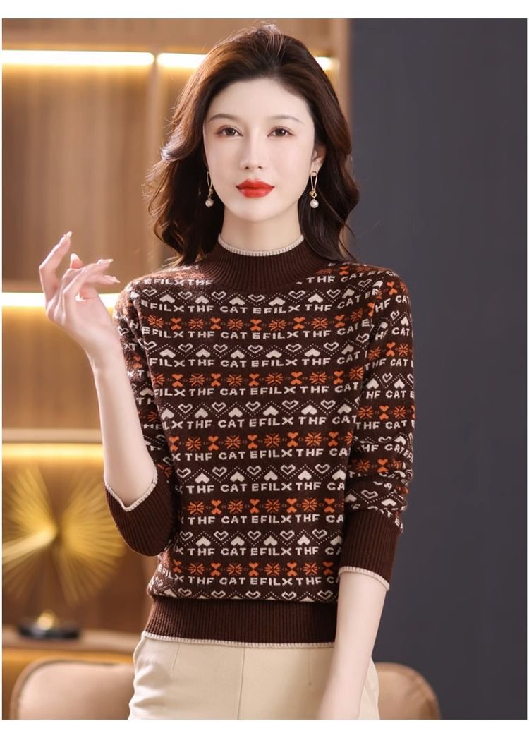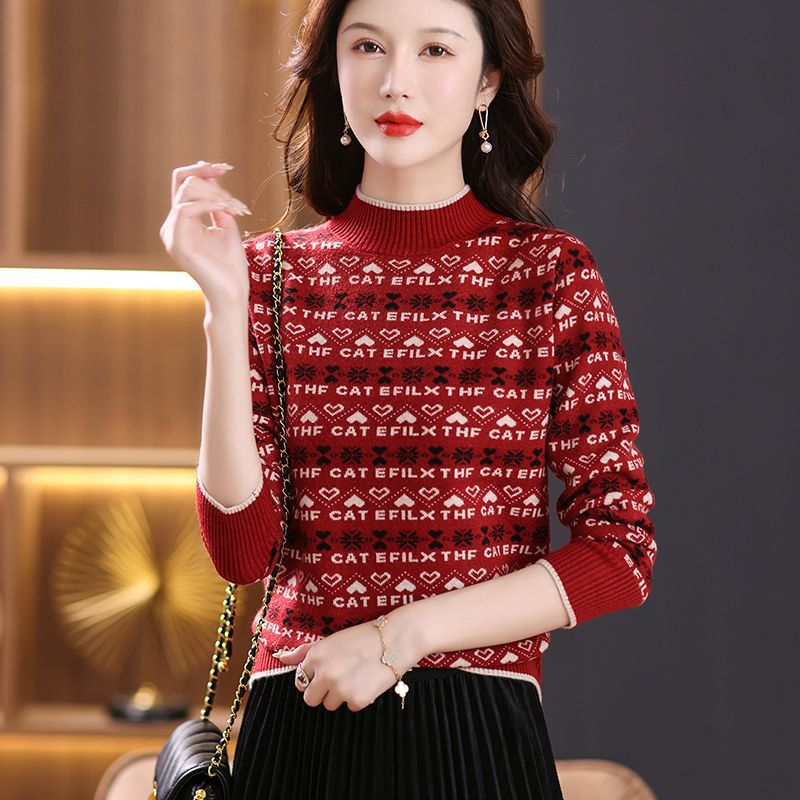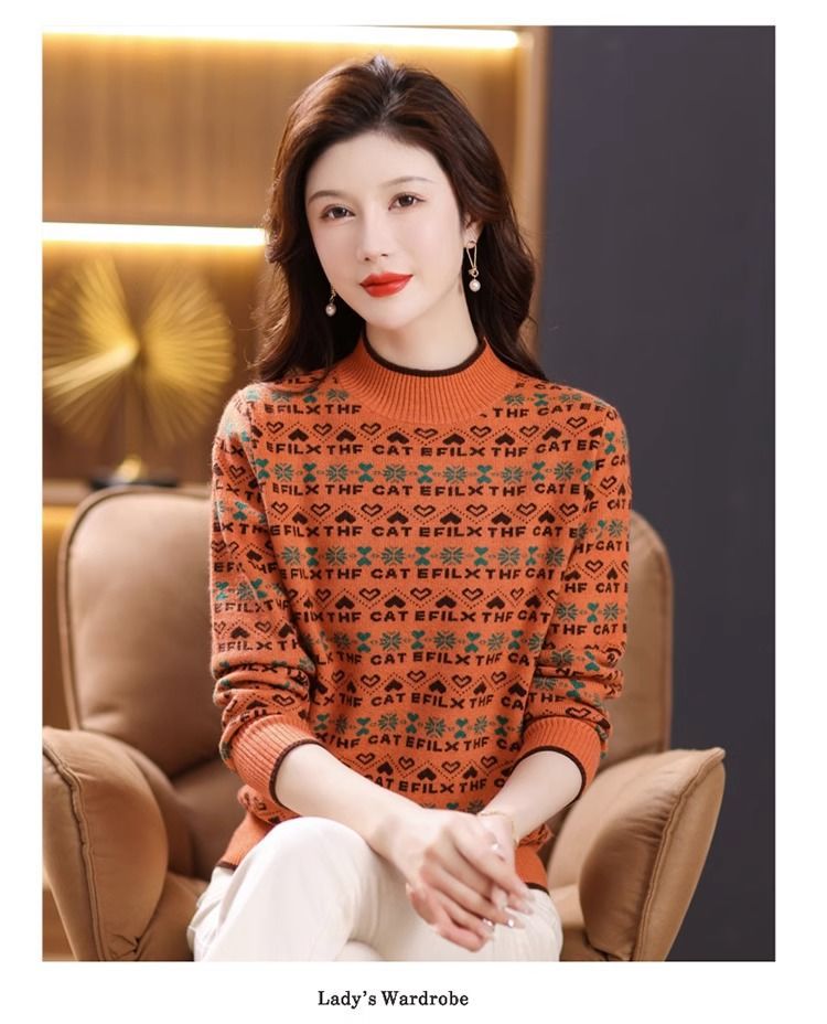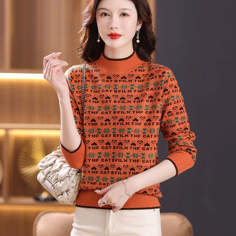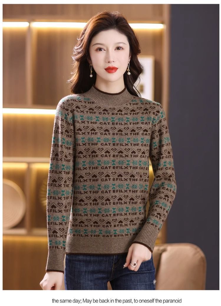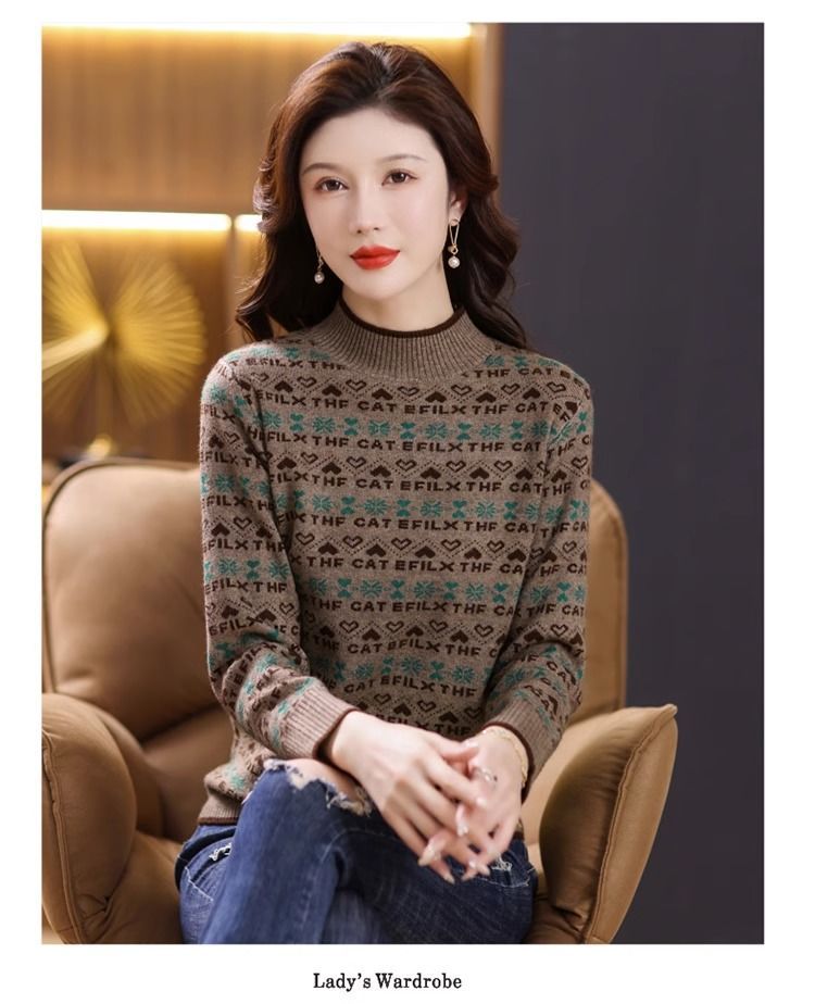 【양모】세련된 니트 스웨터, 하프 터틀넥 엄마 스웨터, 우아한 이너웨어, 울 베이스 레이어, 두꺼운 가을 겨울용스토어 가기