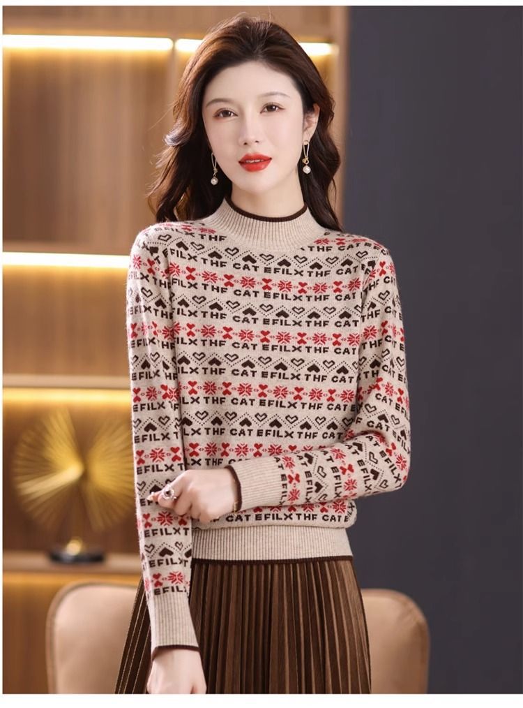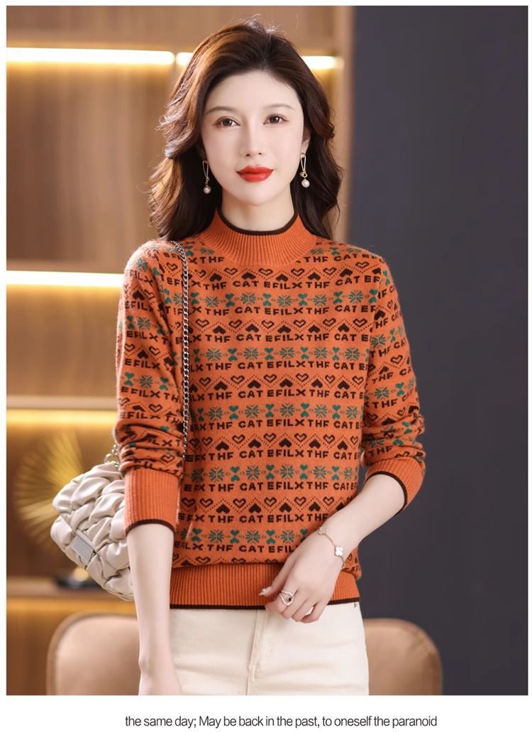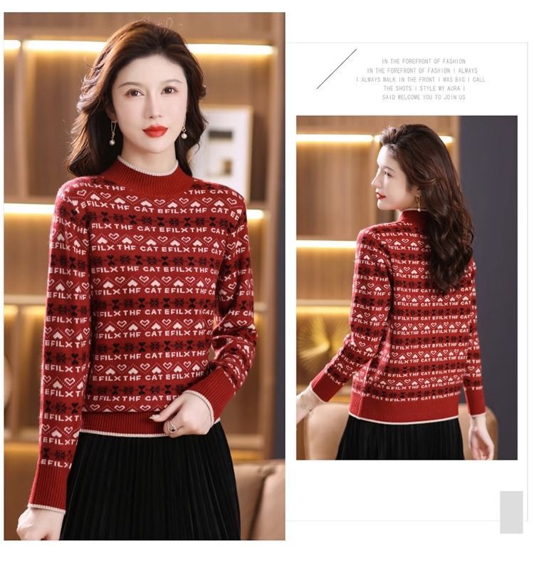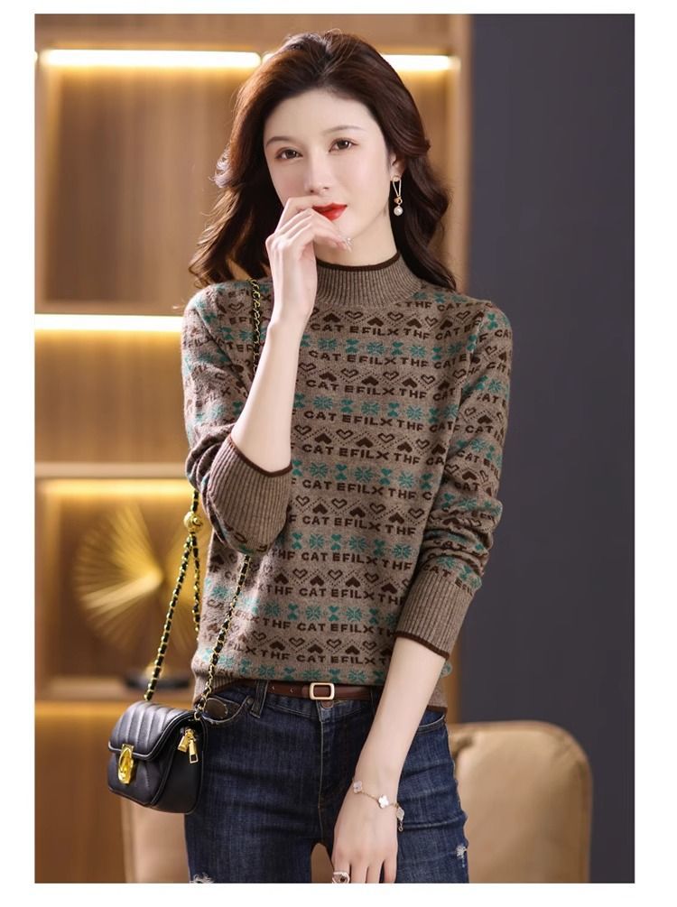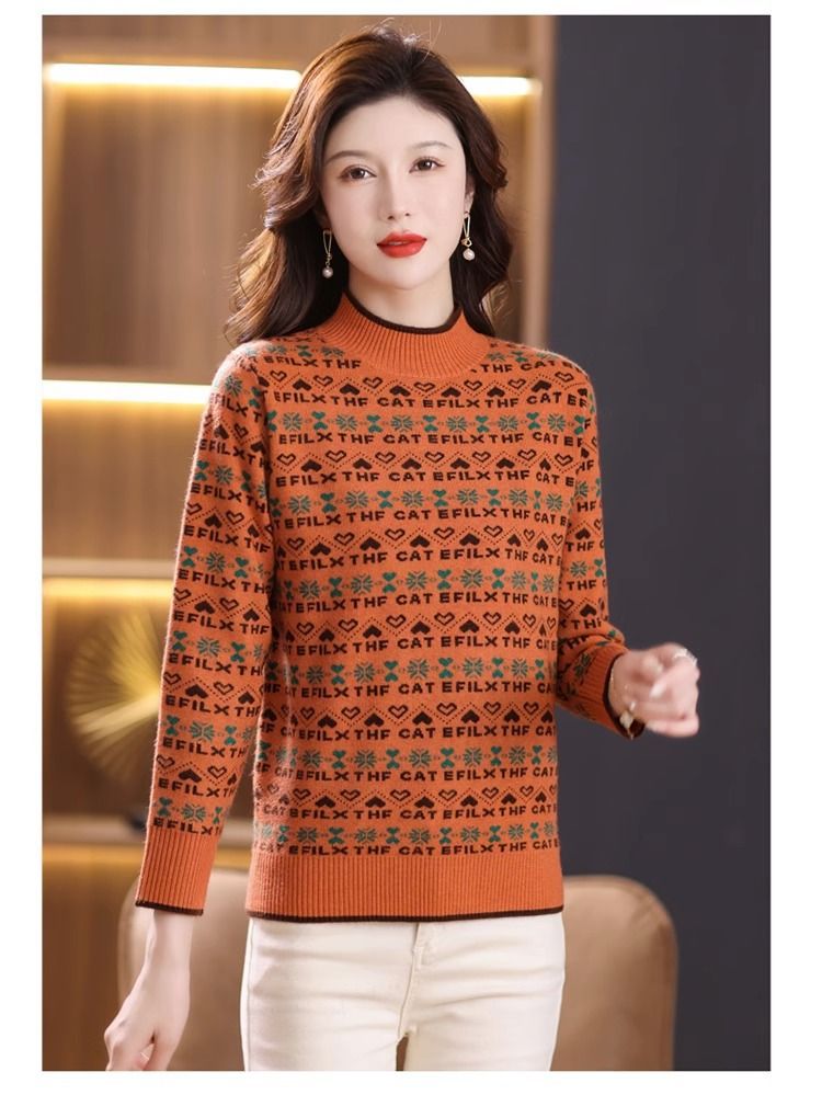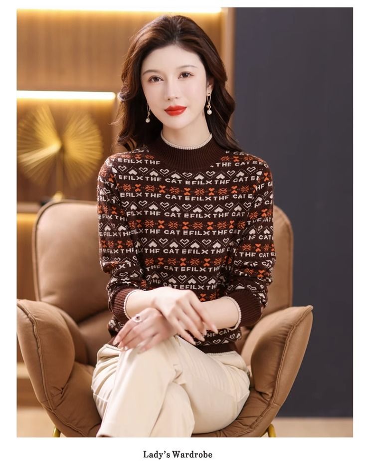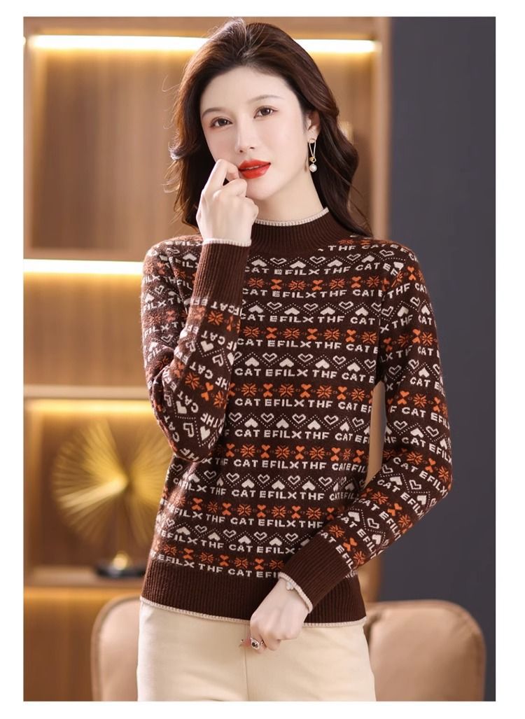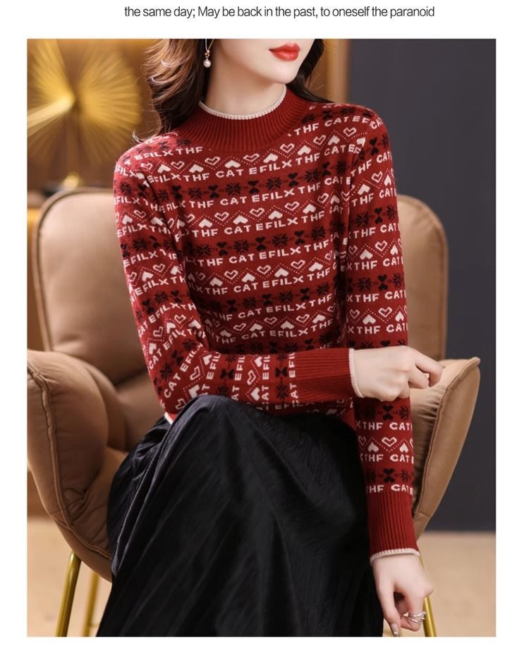 【양모】세련된 니트 스웨터, 하프 터틀넥 엄마 스웨터, 우아한 이너웨어, 울 베이스 레이어, 두꺼운 가을 겨울용스토어 가기