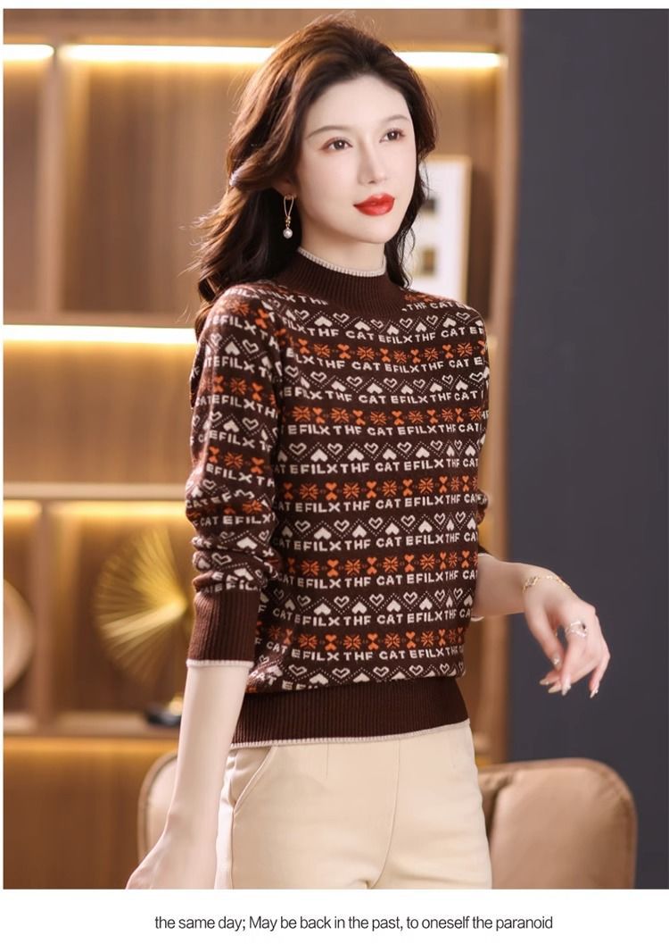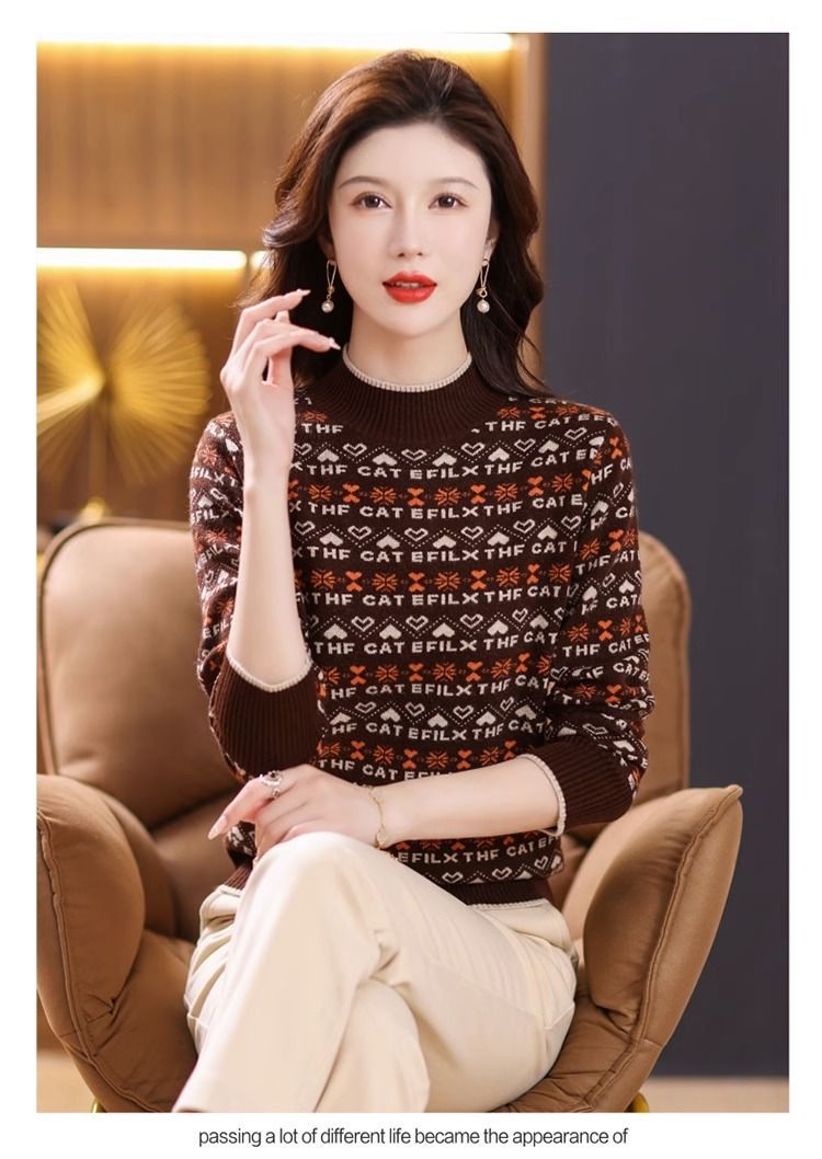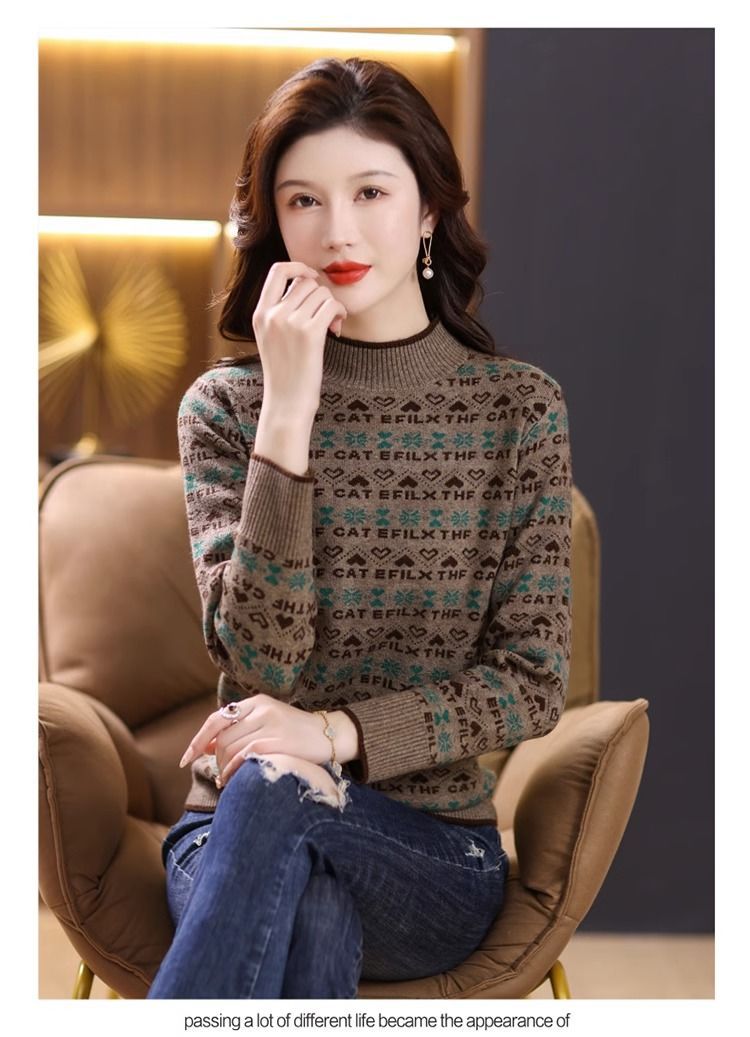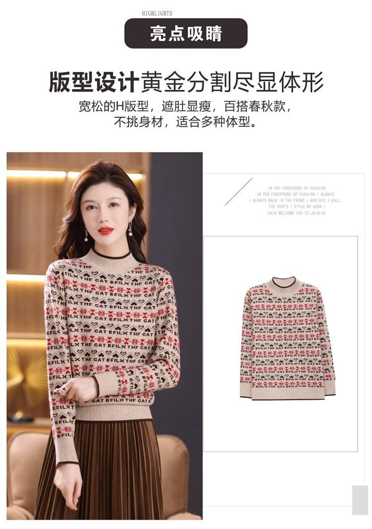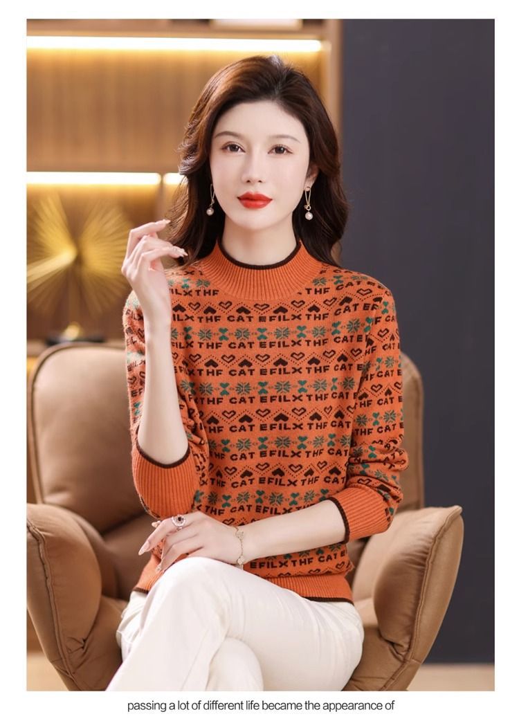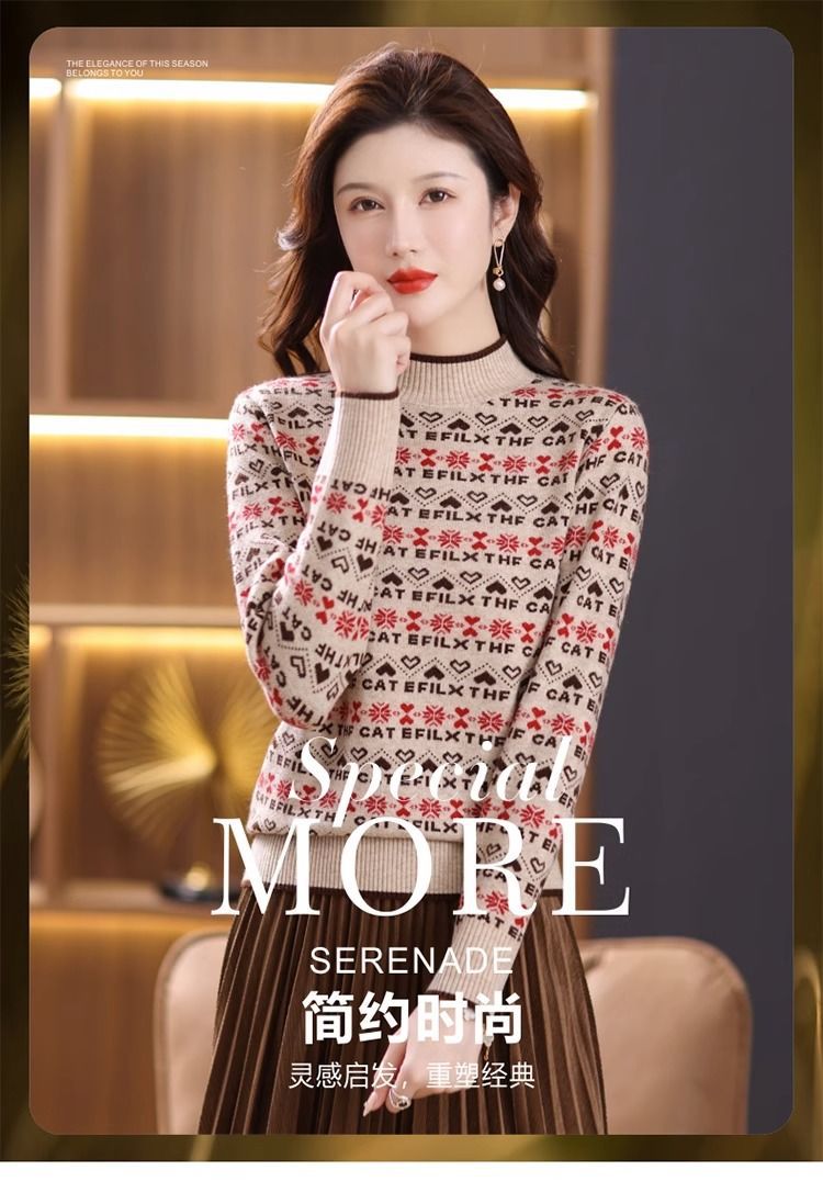 【양모】세련된 니트 스웨터, 하프 터틀넥 엄마 스웨터, 우아한 이너웨어, 울 베이스 레이어, 두꺼운 가을 겨울용스토어 가기