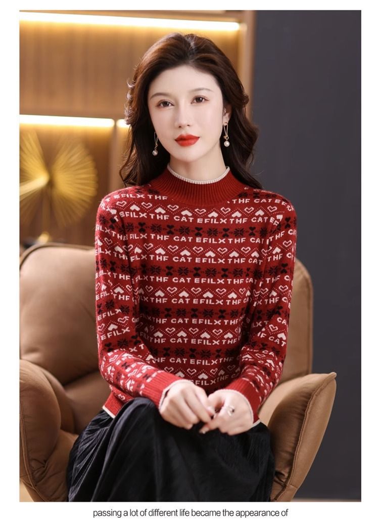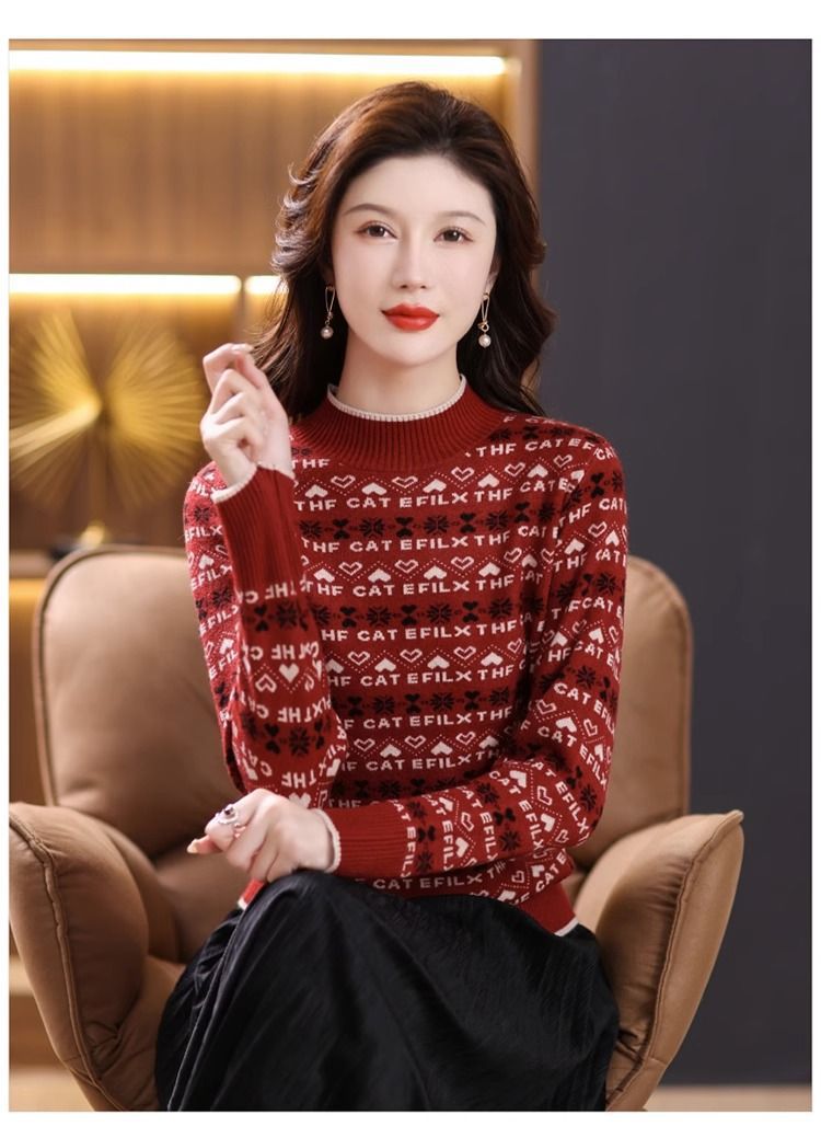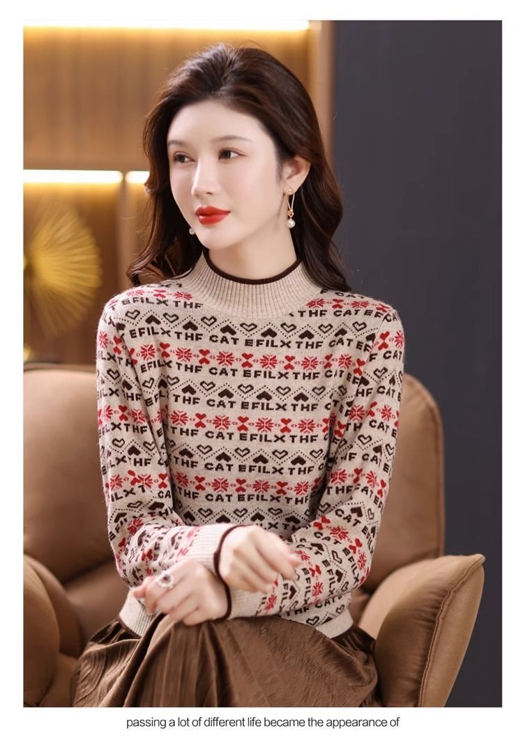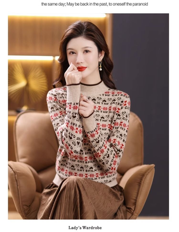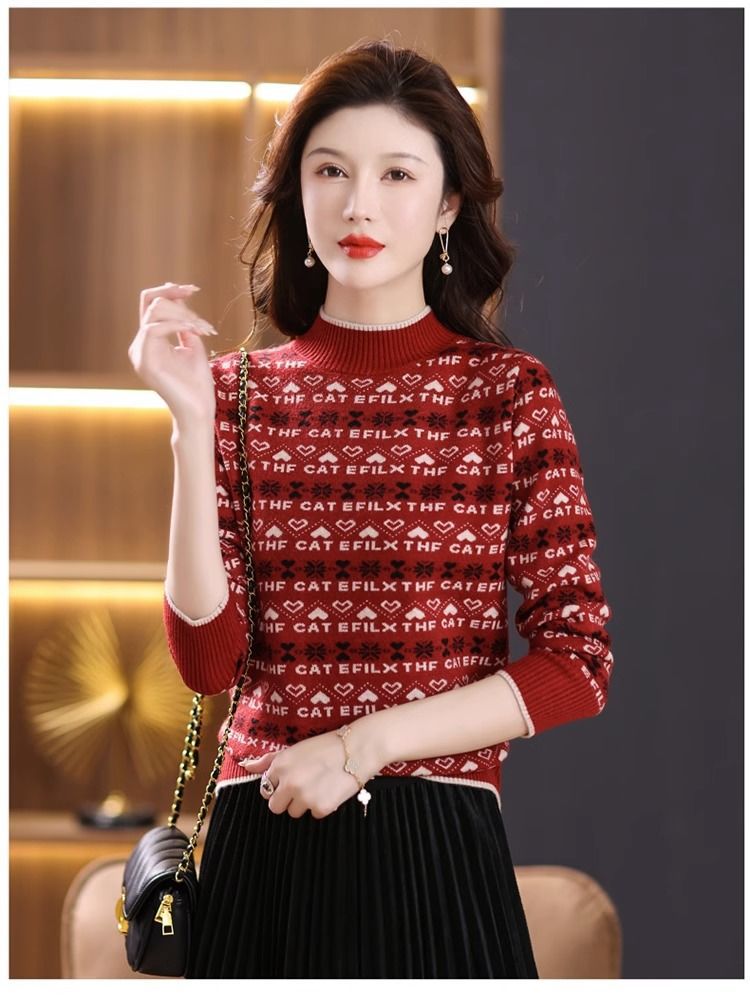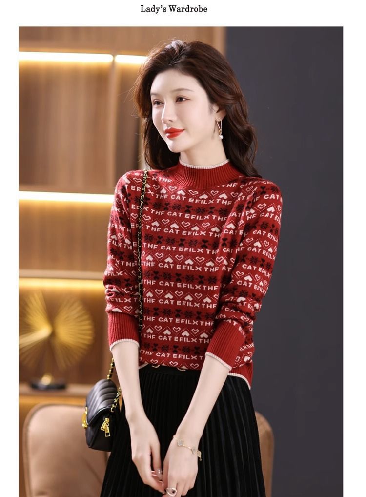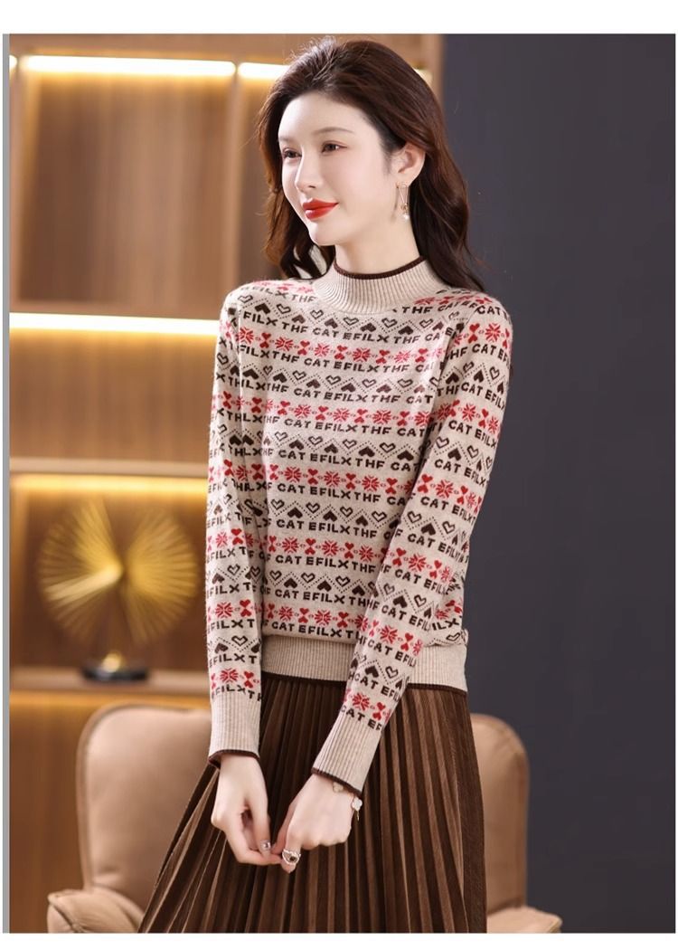 【양모】세련된 니트 스웨터, 하프 터틀넥 엄마 스웨터, 우아한 이너웨어, 울 베이스 레이어, 두꺼운 가을 겨울용스토어 가기