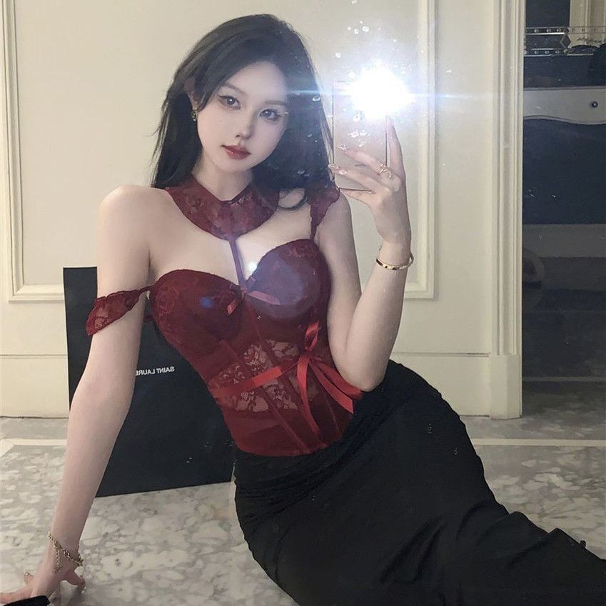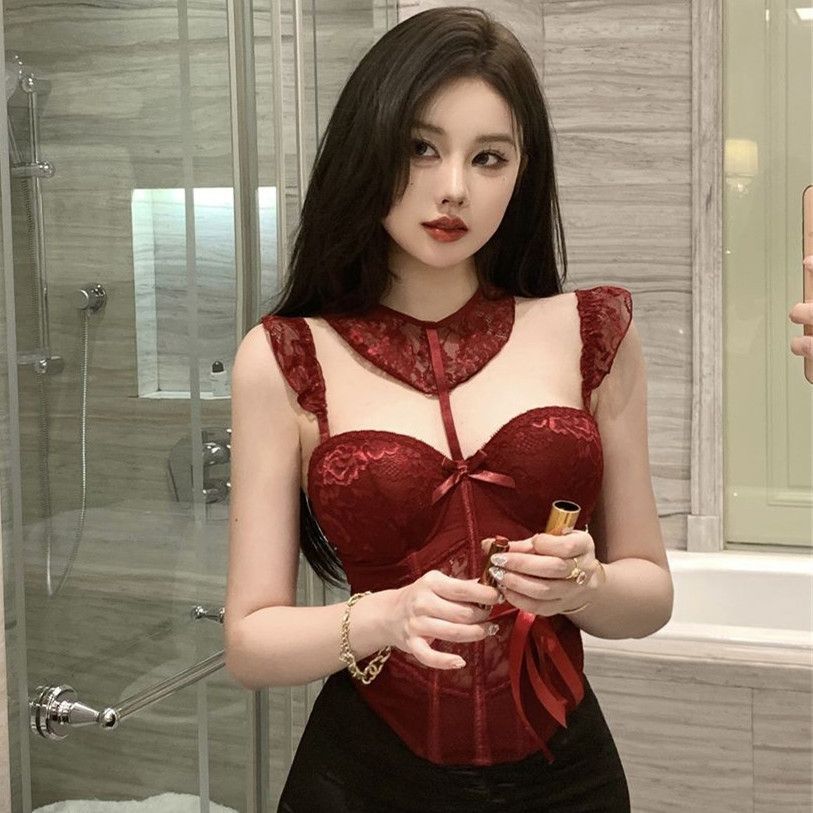 Bao Fei Fishbone Bra Pure Lust Style은 레이스와 가슴 패드가 있는 캐미솔 탑으로 착용할 수 있으며 여성용 짧은 베이스 조끼입니다.스토어 가기