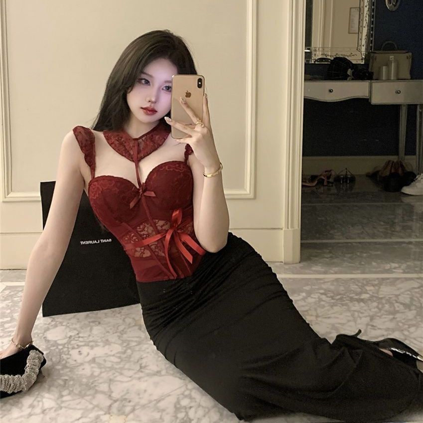 Bao Fei Fishbone Bra Pure Lust Style은 레이스와 가슴 패드가 있는 캐미솔 탑으로 착용할 수 있으며 여성용 짧은 베이스 조끼입니다.