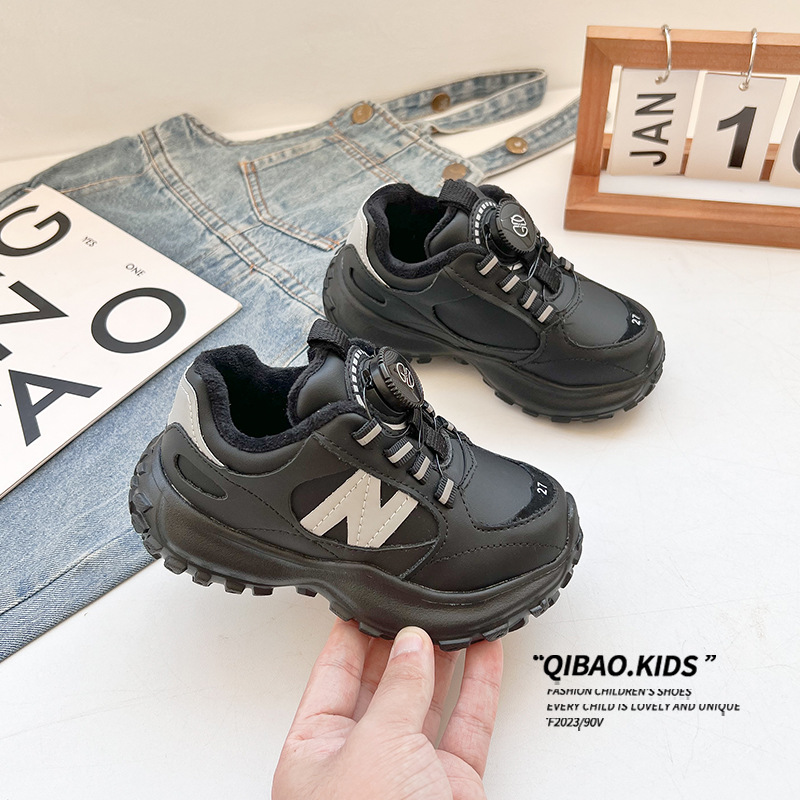 어린이 한국어 유행 운동화 소년 기모 따뜻한 회전 버튼 면 신발 여아 세련된 유행 캐주얼 신발