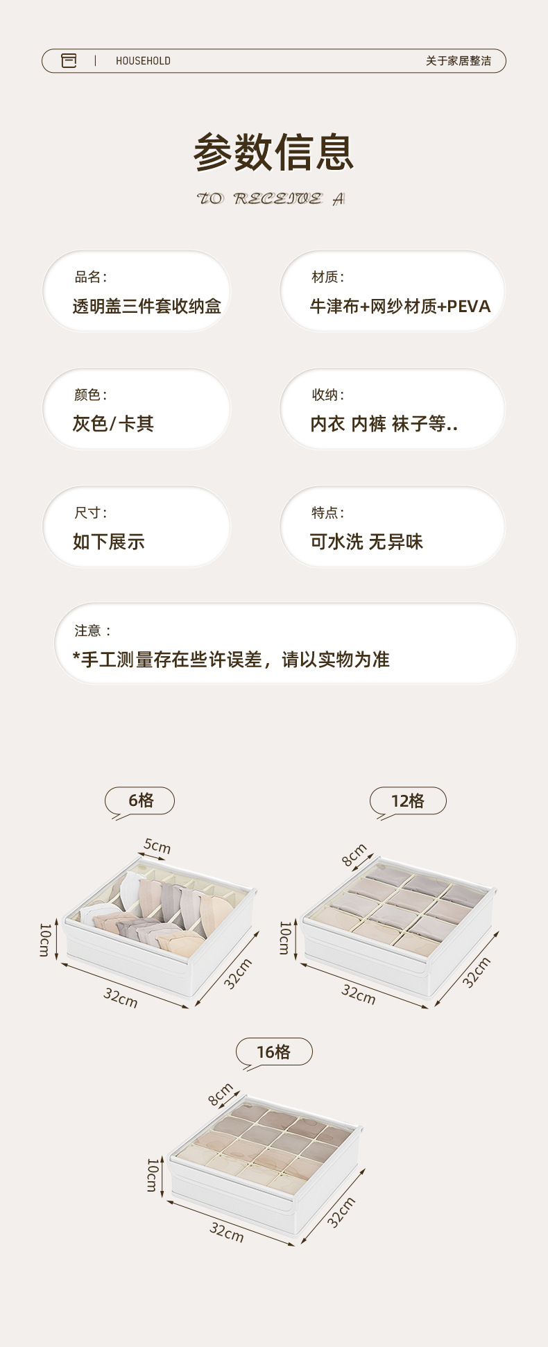 옥스포드 천 빨 속옷 보관함 3 종 세트 투명 보이는 브래지어 보관함 서랍형 주최자