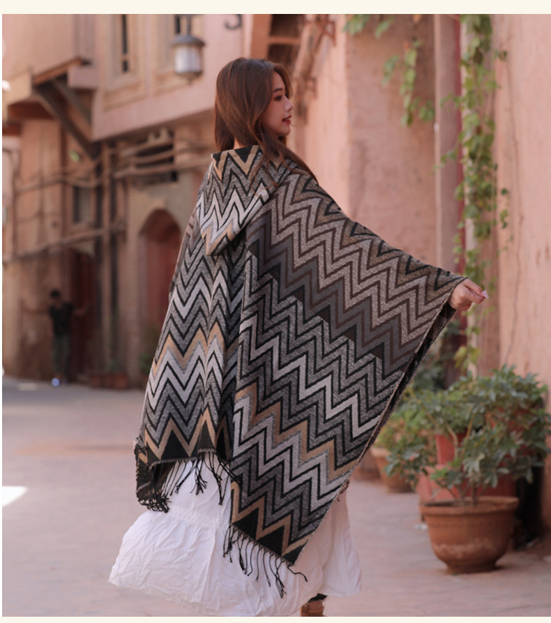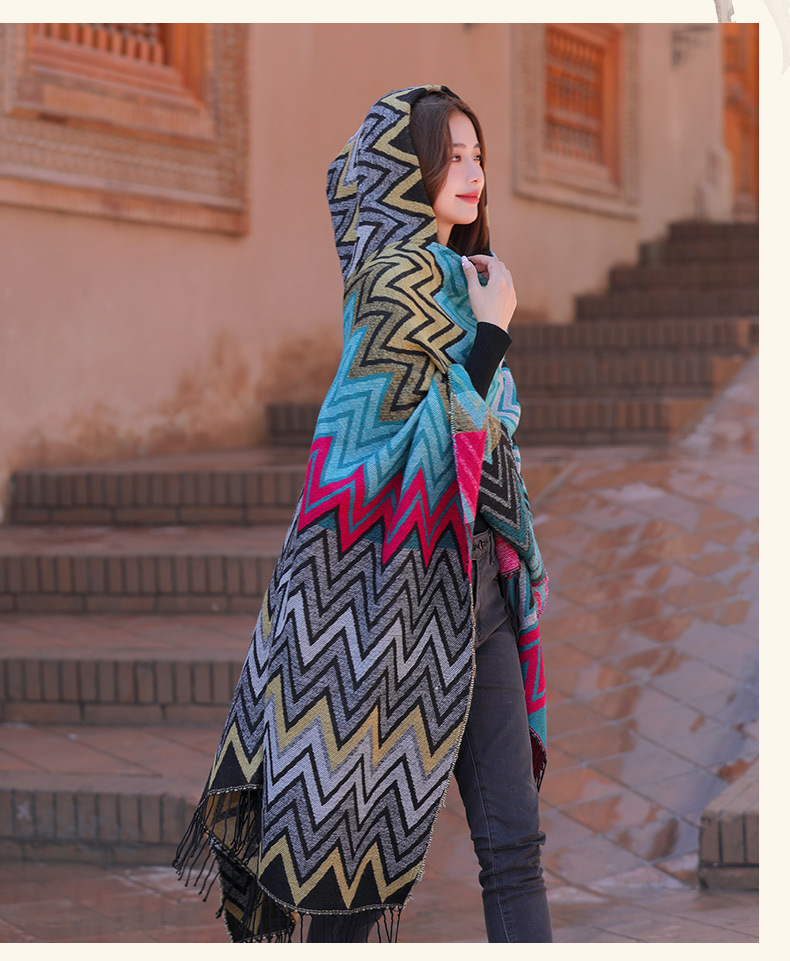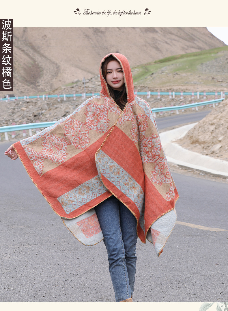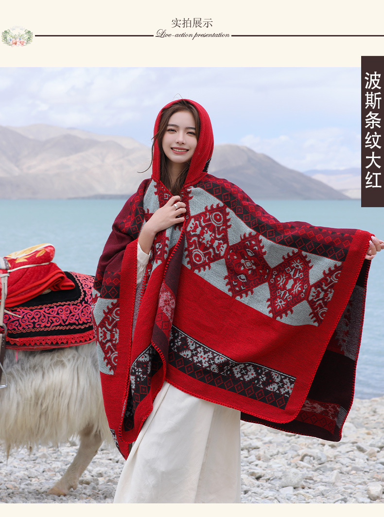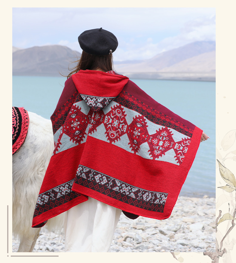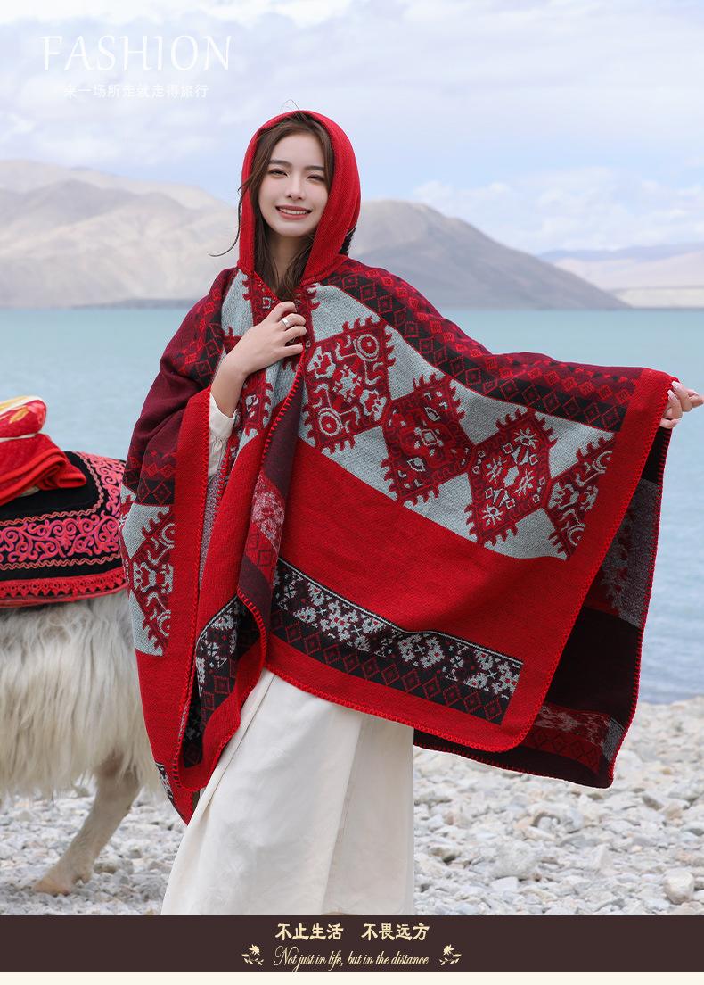 가을과 겨울 새로운 예술적 복고풍 민족 스타일 숄 두꺼운 따뜻한 모자 스카프 윈난 스노우 마운틴 여행 케이프 여성