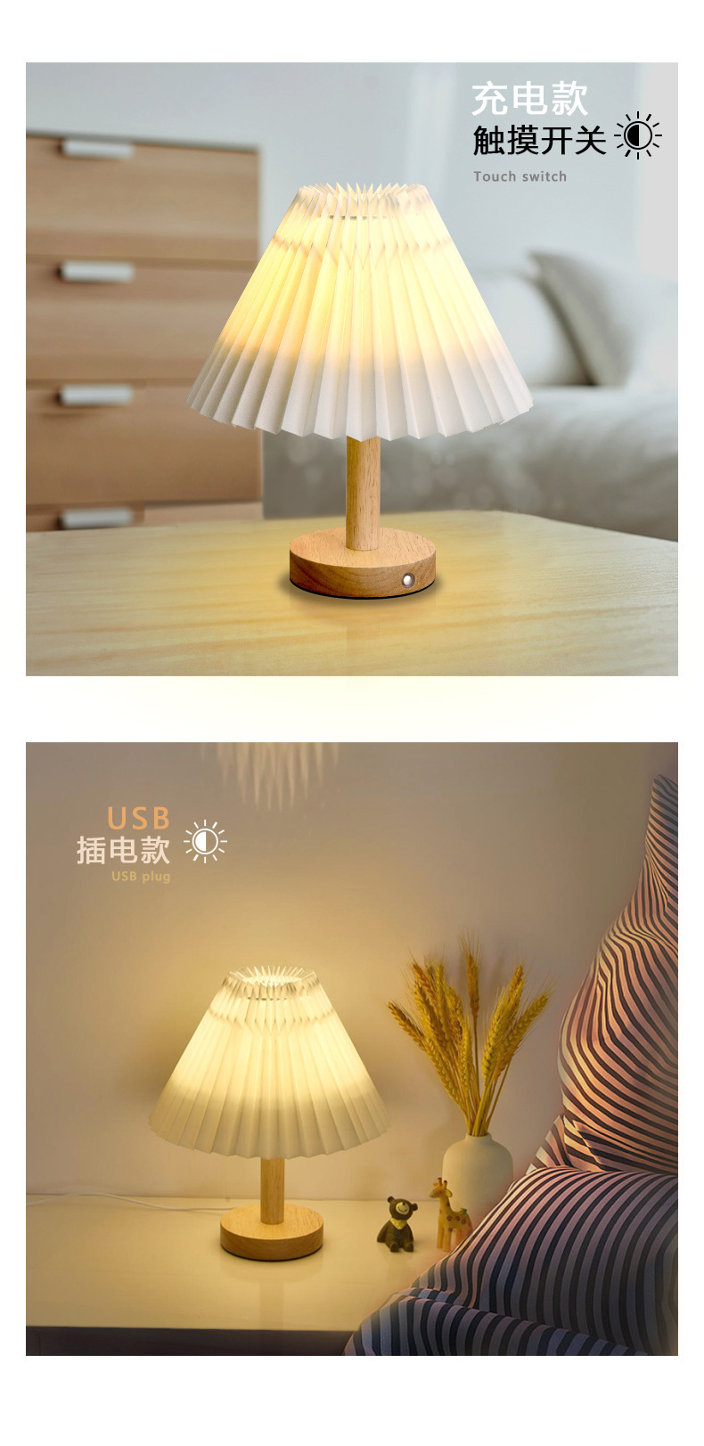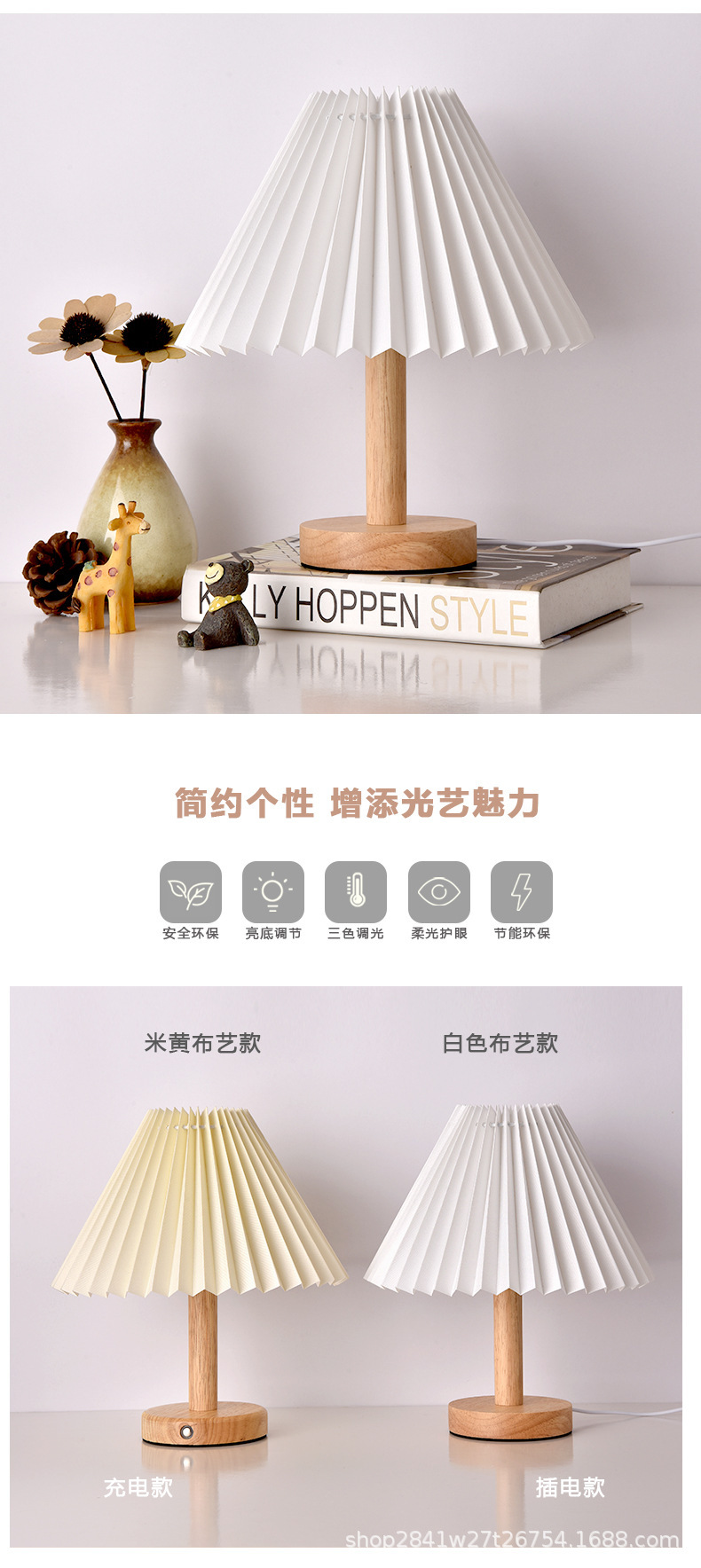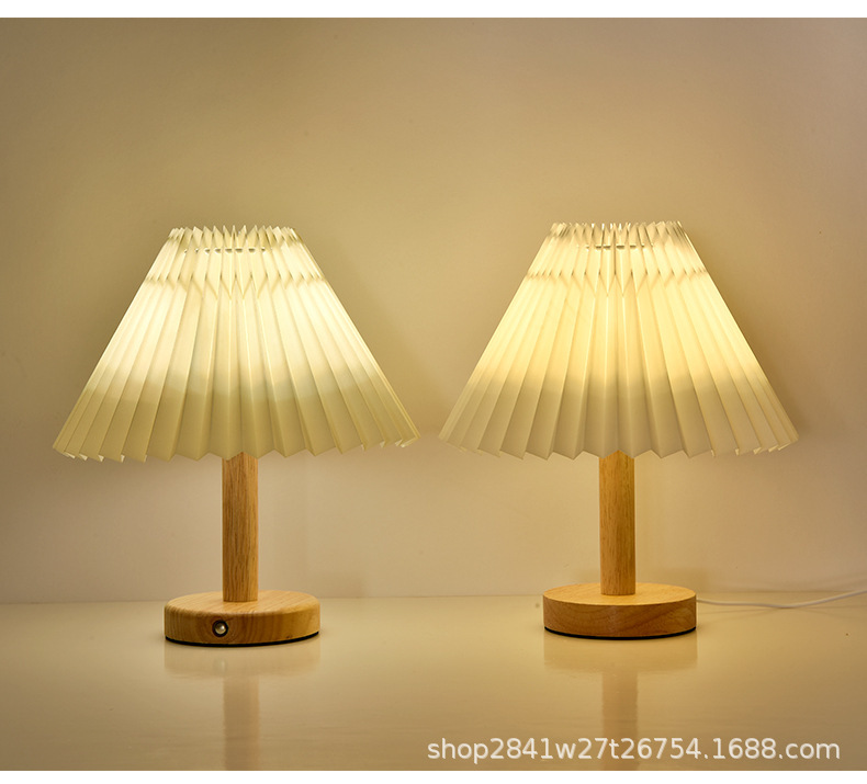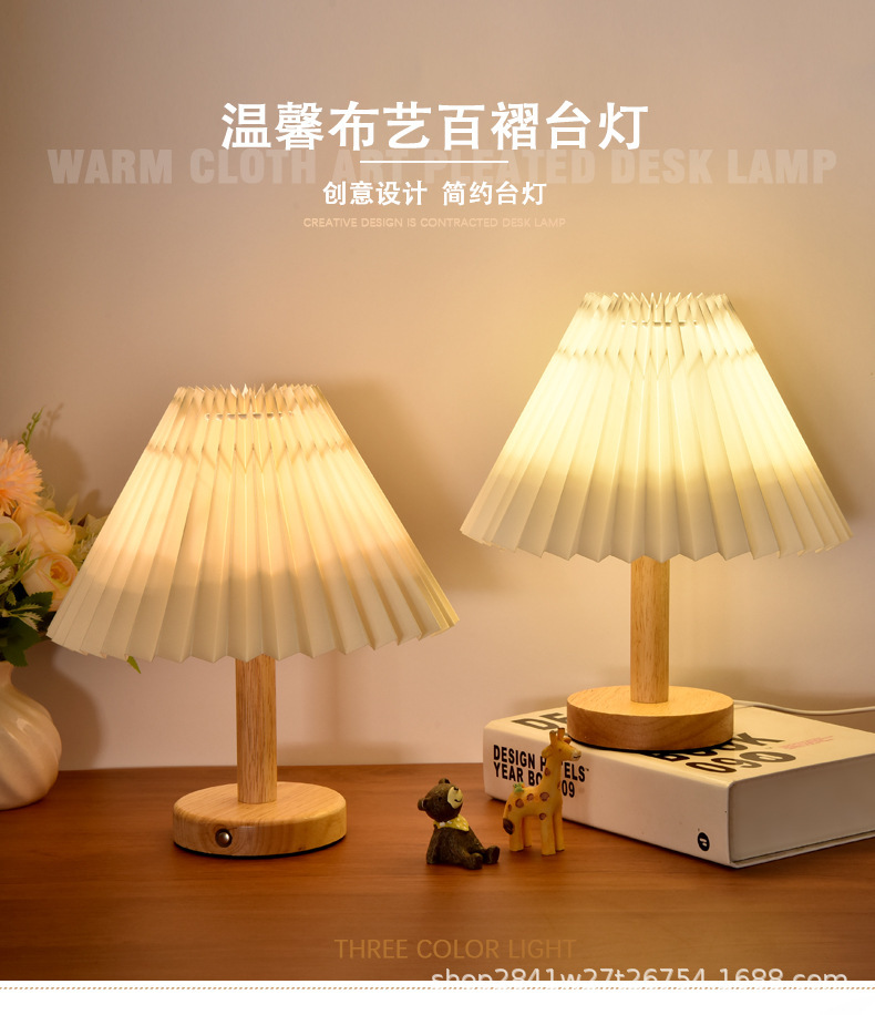 Nordic Ins 스타일 침실 침실 램프 일본식 야간 간호 인터넷 인기 주름 테이블 램프 소녀 기숙사 눈 보호 램프