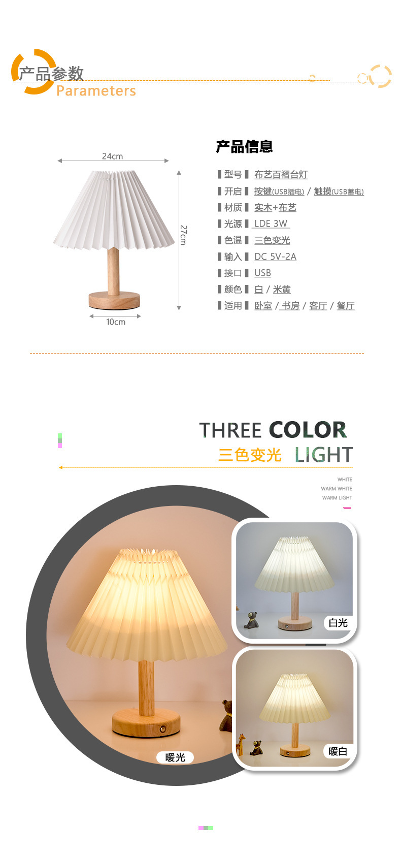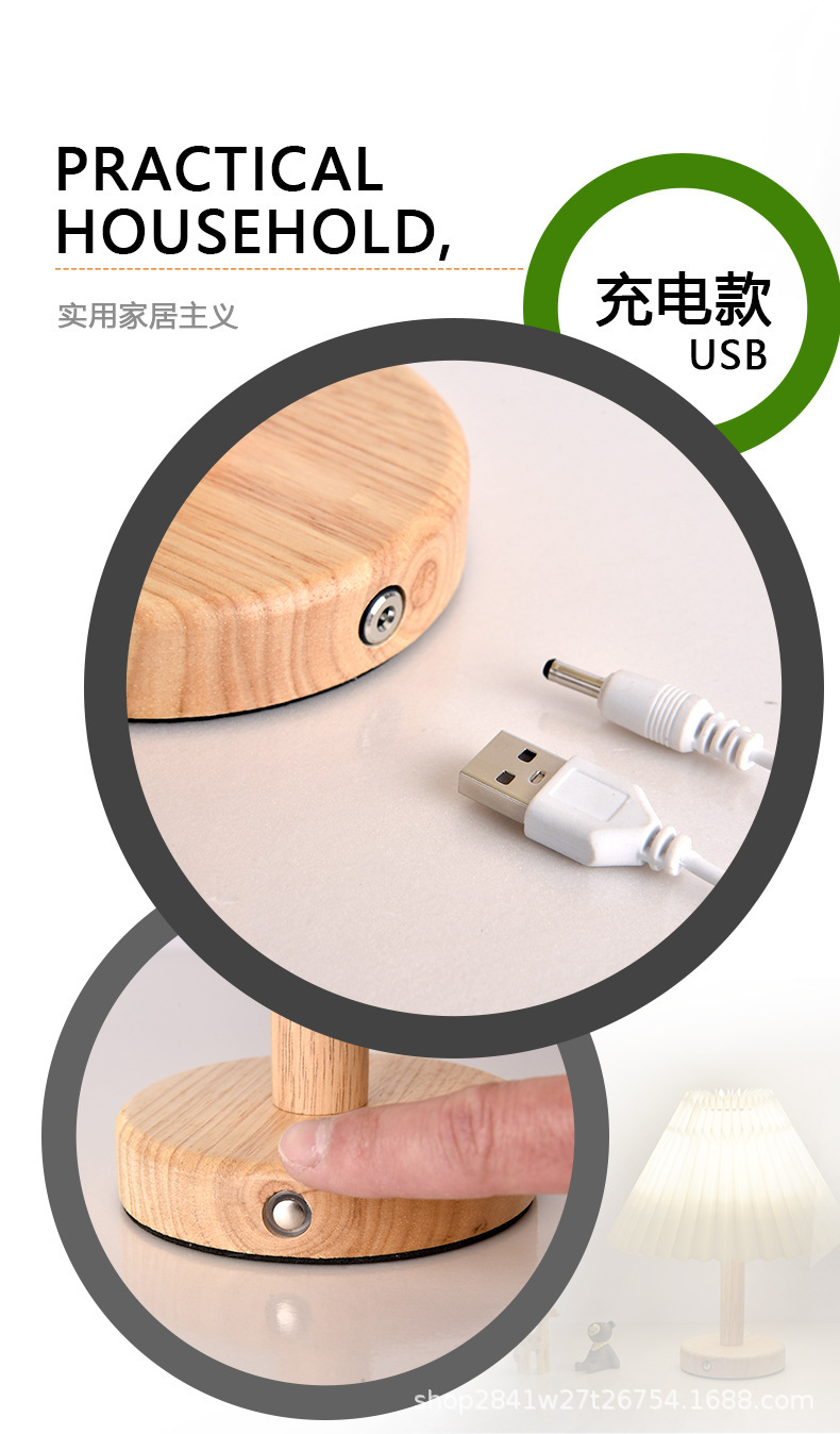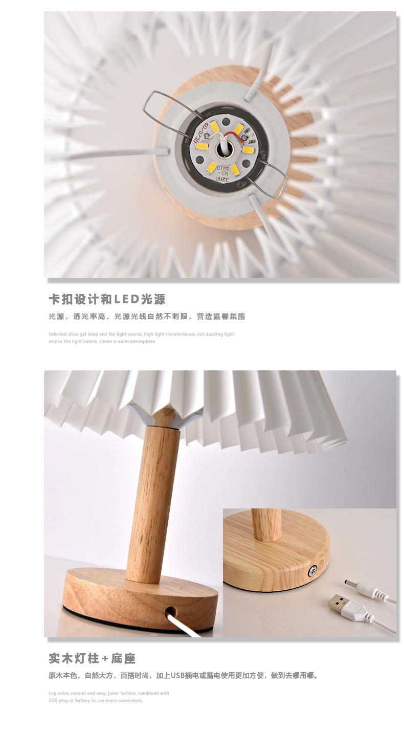 Nordic Ins 스타일 침실 침실 램프 일본식 야간 간호 인터넷 인기 주름 테이블 램프 소녀 기숙사 눈 보호 램프