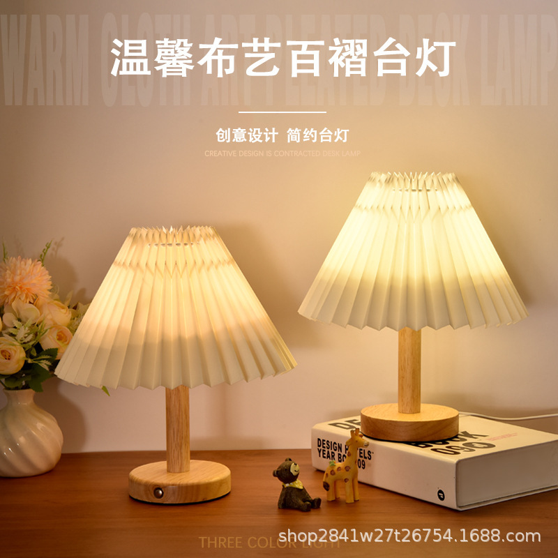 Nordic Ins 스타일 침실 침실 램프 일본식 야간 간호 인터넷 인기 주름 테이블 램프 소녀 기숙사 눈 보호 램프스토어 가기