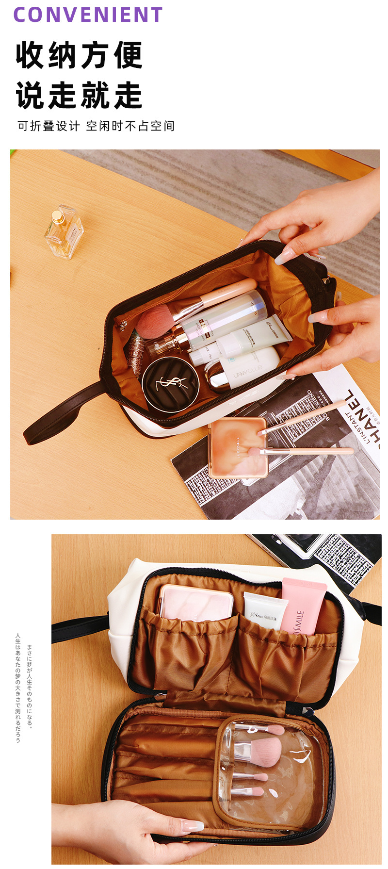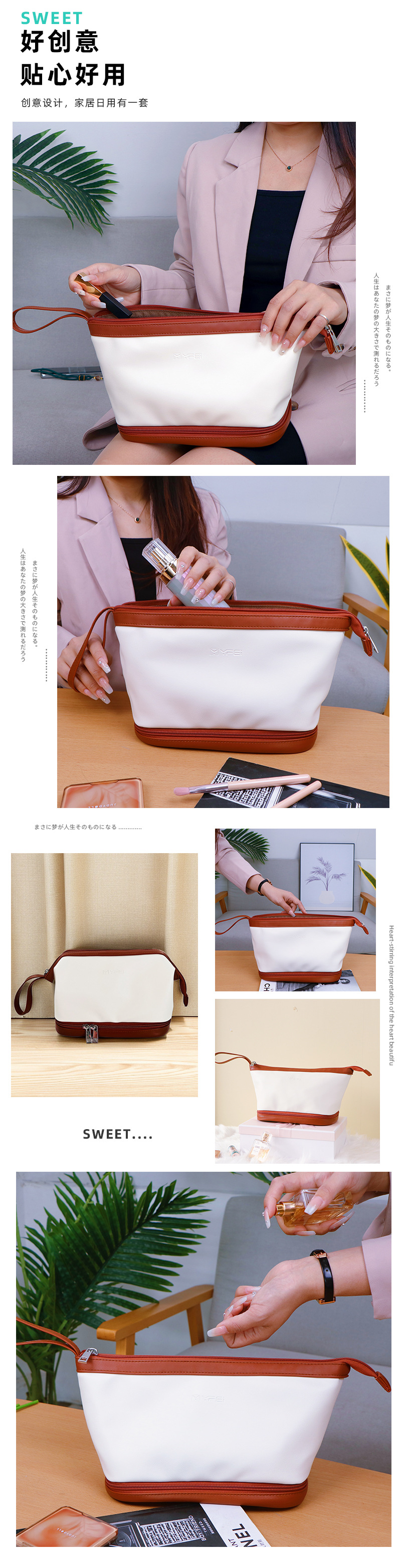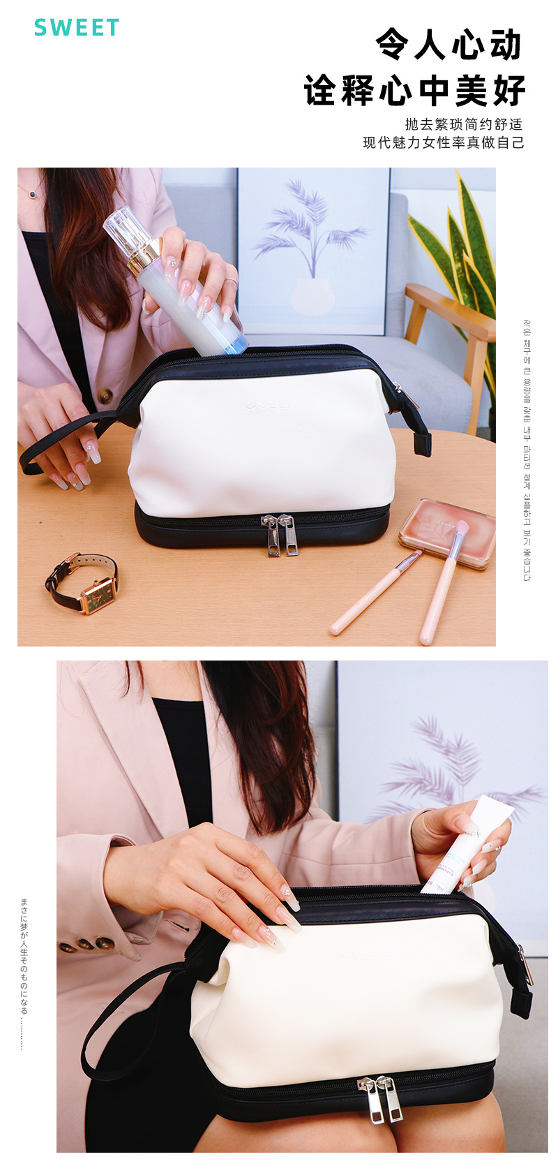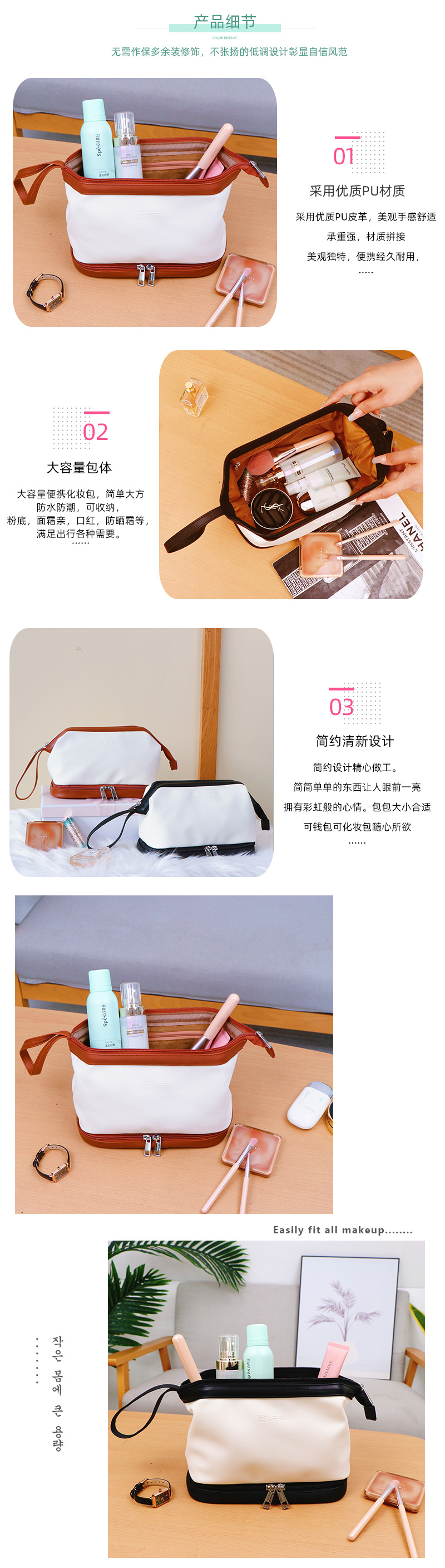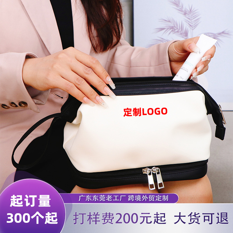 광동 공장 휴대용 화장품 가방 대용량 보관 가방 더블 레이어 PU 화장품 가방 방수 세면도구 가방 화장품 가방스토어 가기