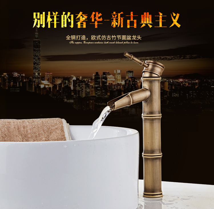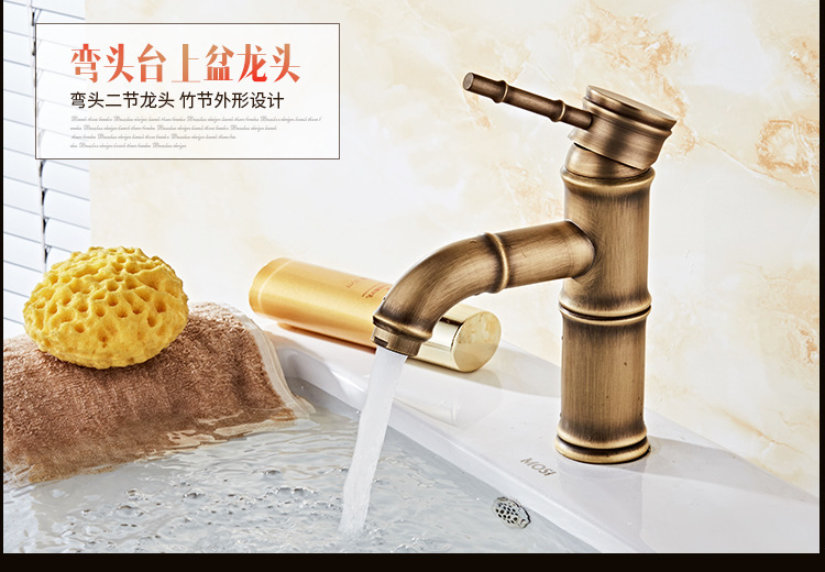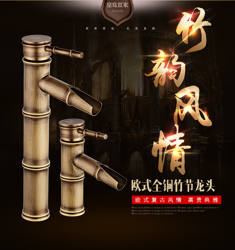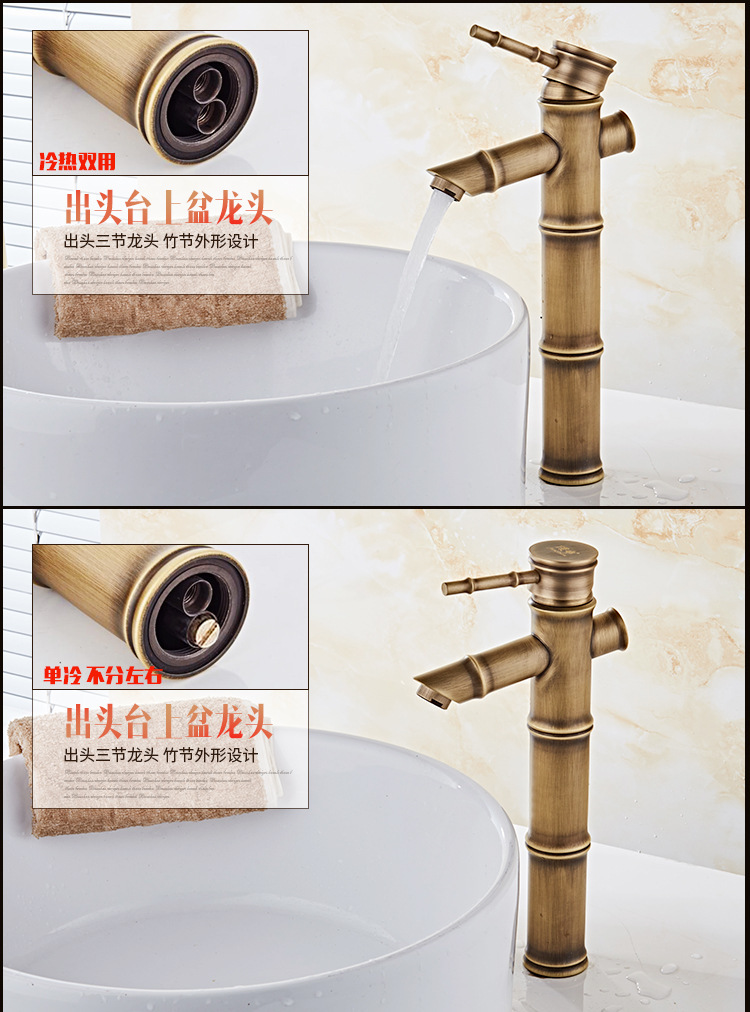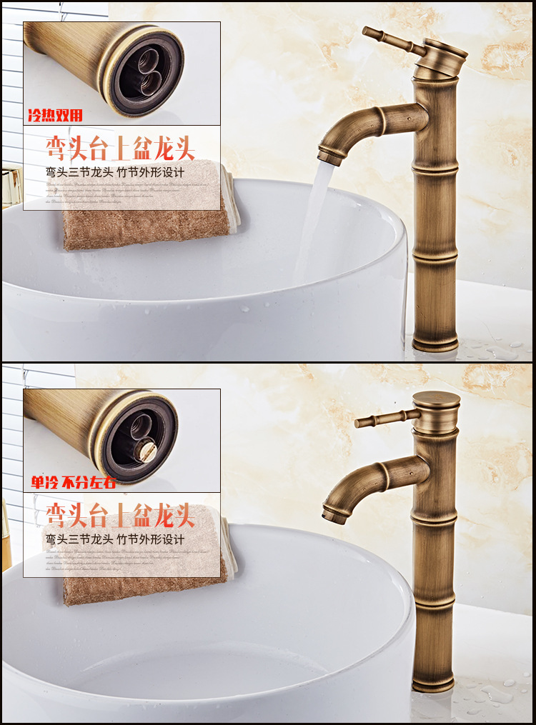 골동품 수도꼭지 단일 차가운 야외 세면기 대나무 섹션 빈티지 분지 중국 스타일 냉기 및 핫 카운터 분지 분지 분지 예술
