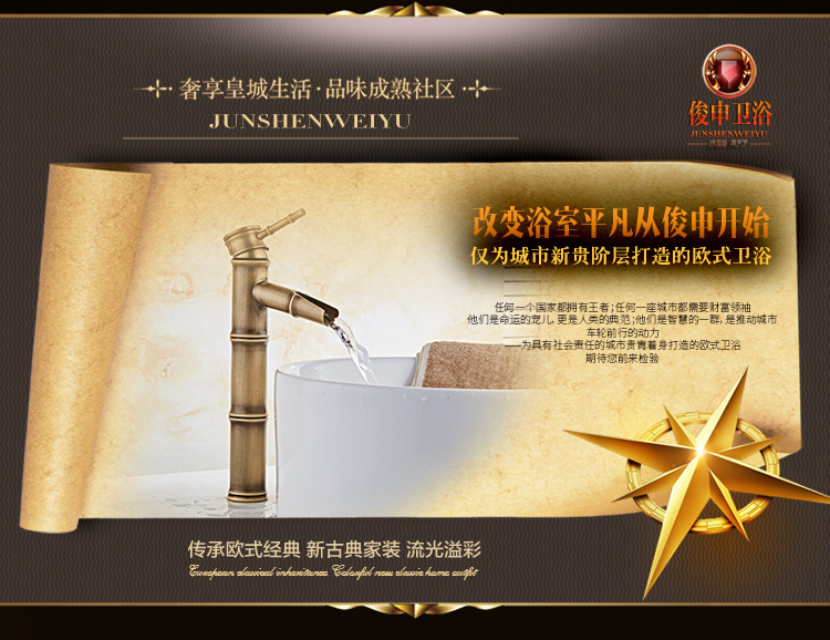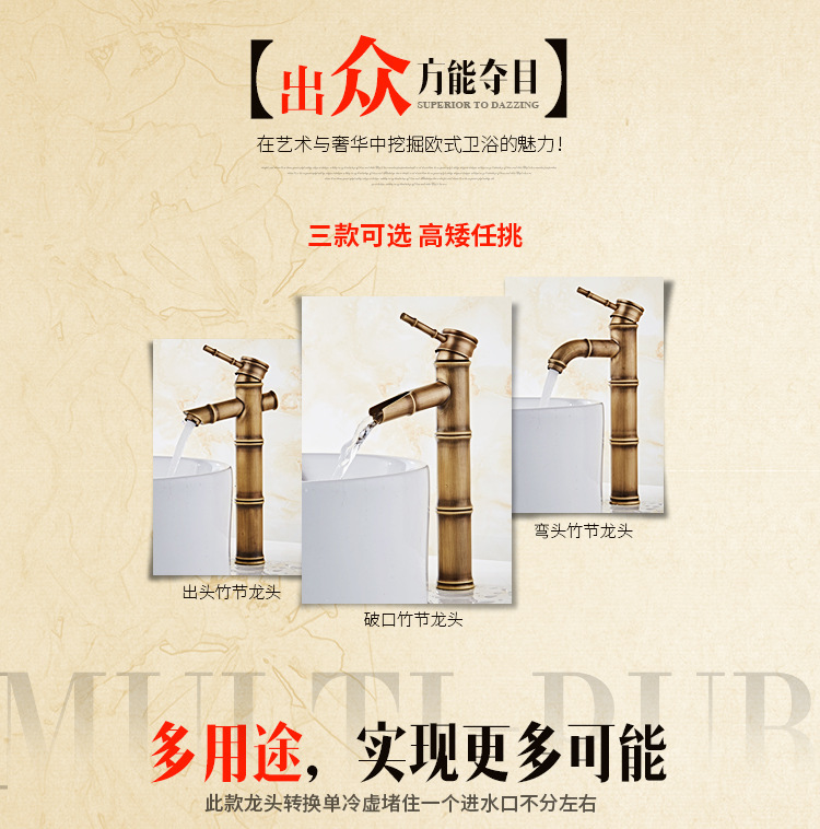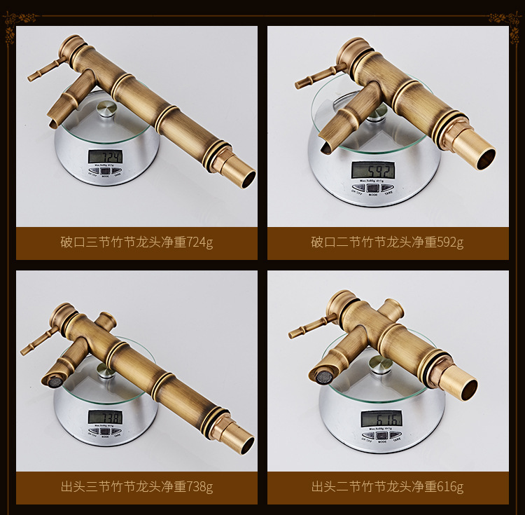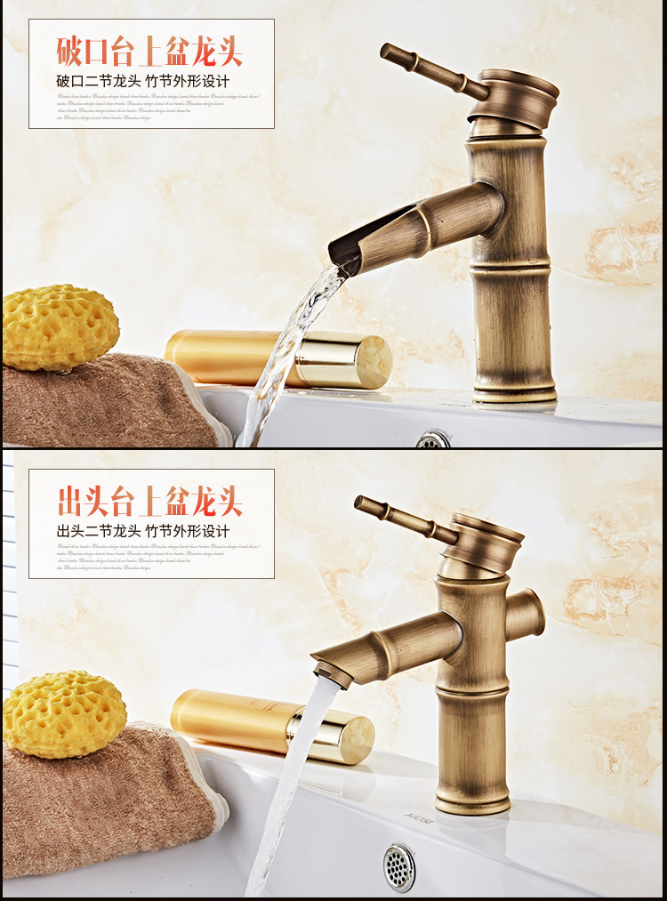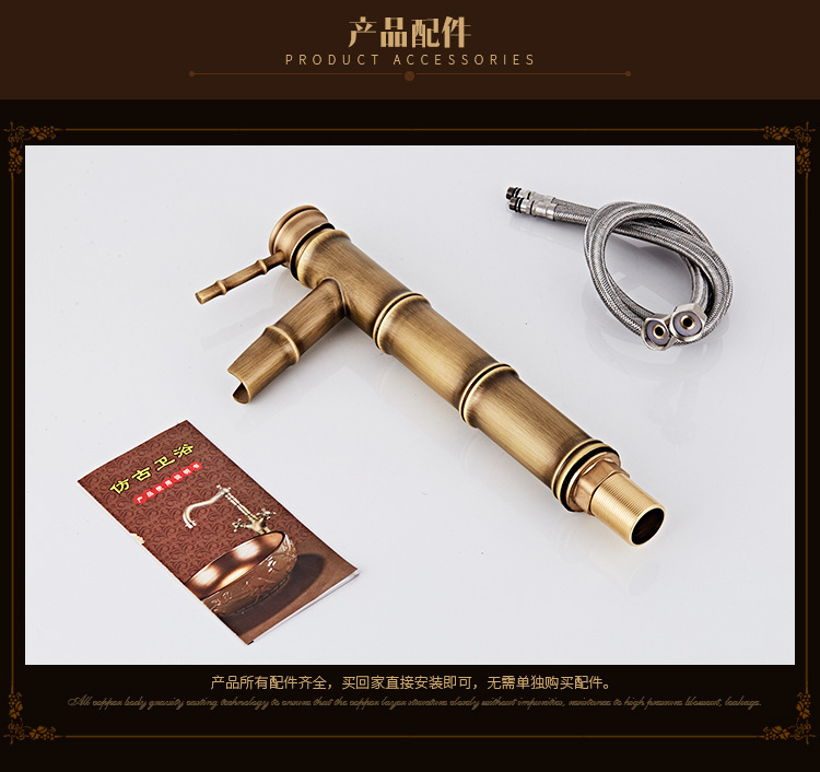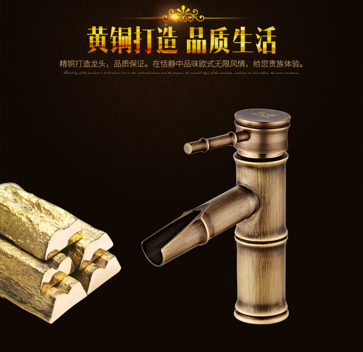 골동품 수도꼭지 단일 차가운 야외 세면기 대나무 섹션 빈티지 분지 중국 스타일 냉기 및 핫 카운터 분지 분지 분지 예술