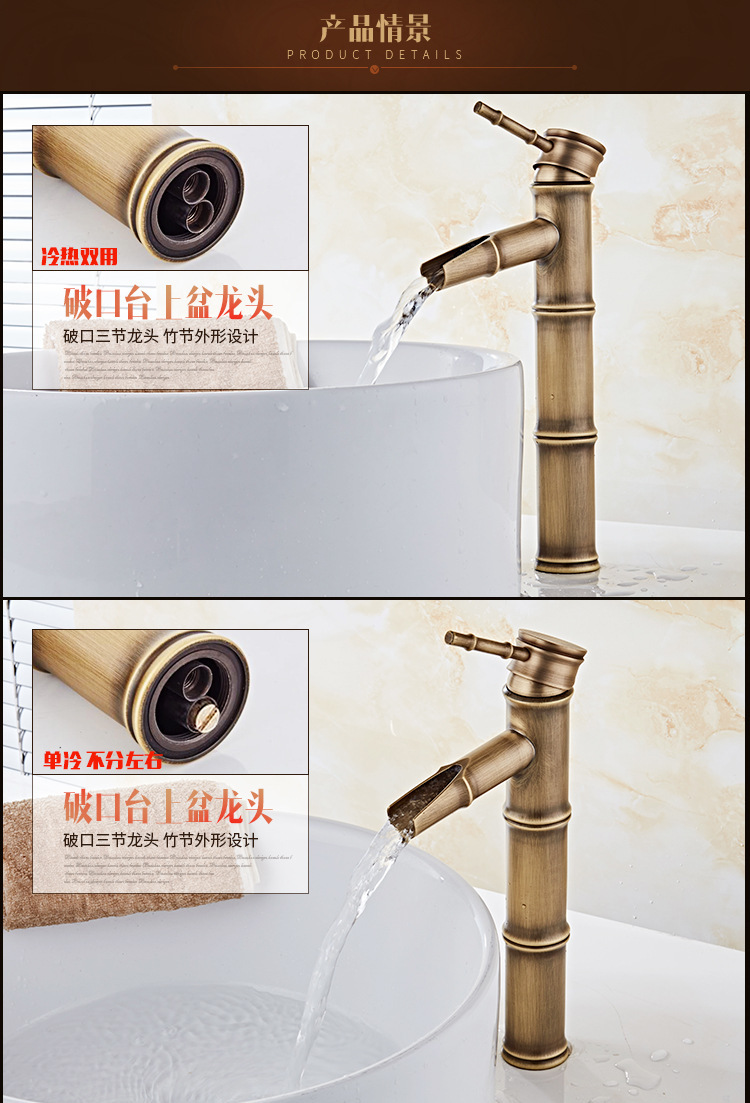 골동품 수도꼭지 단일 차가운 야외 세면기 대나무 섹션 빈티지 분지 중국 스타일 냉기 및 핫 카운터 분지 분지 분지 예술스토어 가기