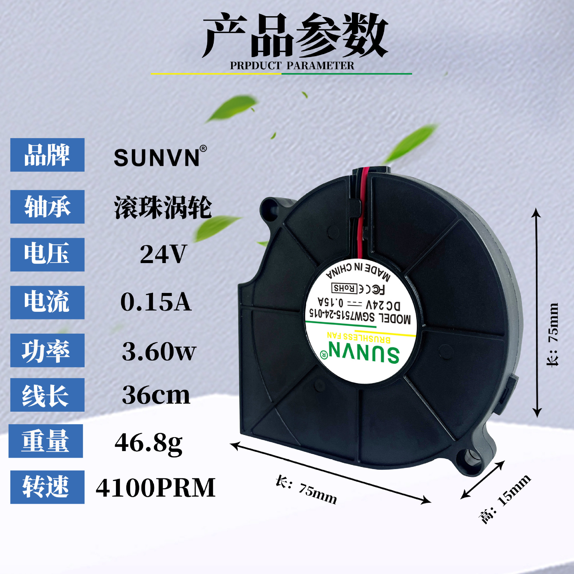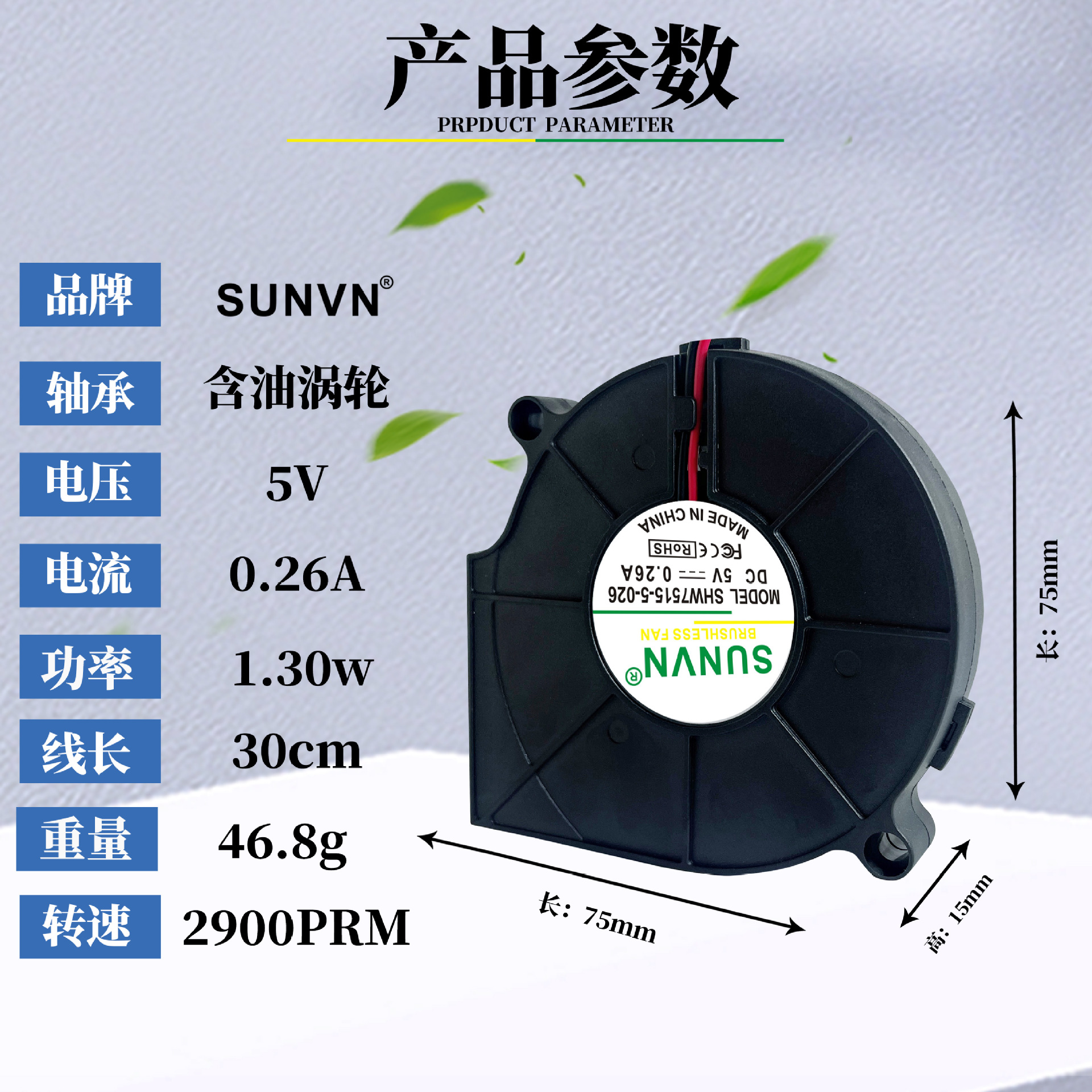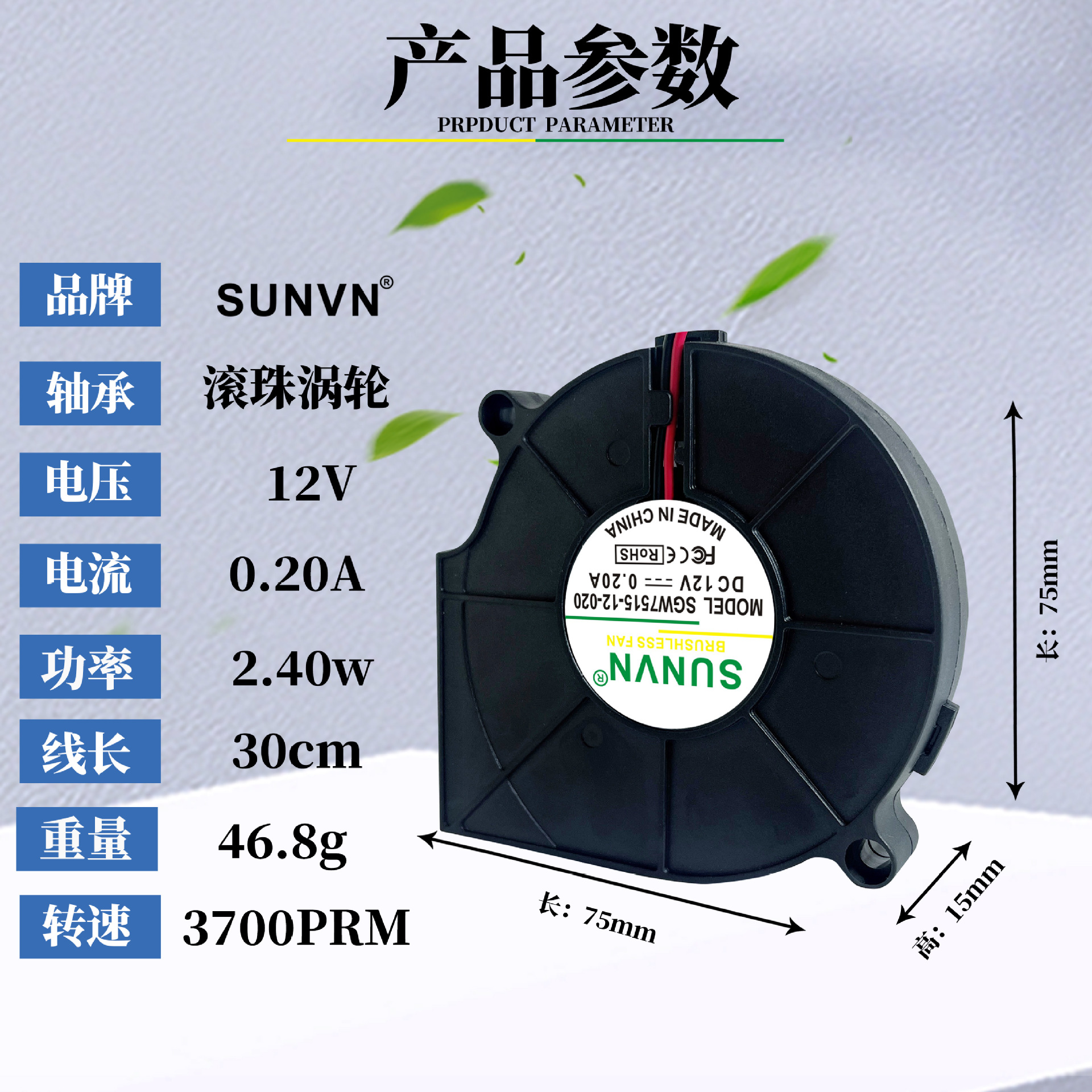 SUNVN DC7515 원심 팬 5v 오일 함유 12v 아로마 디퓨저 식기 세척기 진공 청소기 터보 블로어 7cm