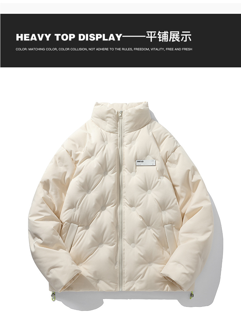 NASA 라이트 블루 엠보싱 마름모 다운 재킷 내셔널 타이드 브랜드 겨울 두꺼운 짧은 커플 다운 재킷 남성과 여성을위한