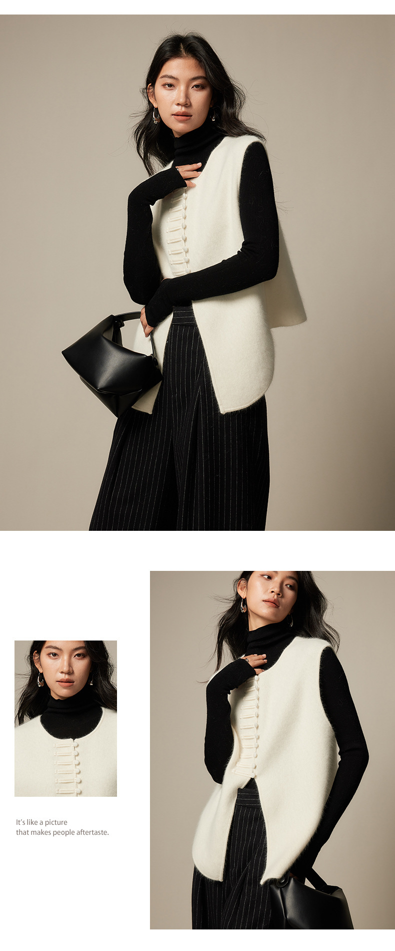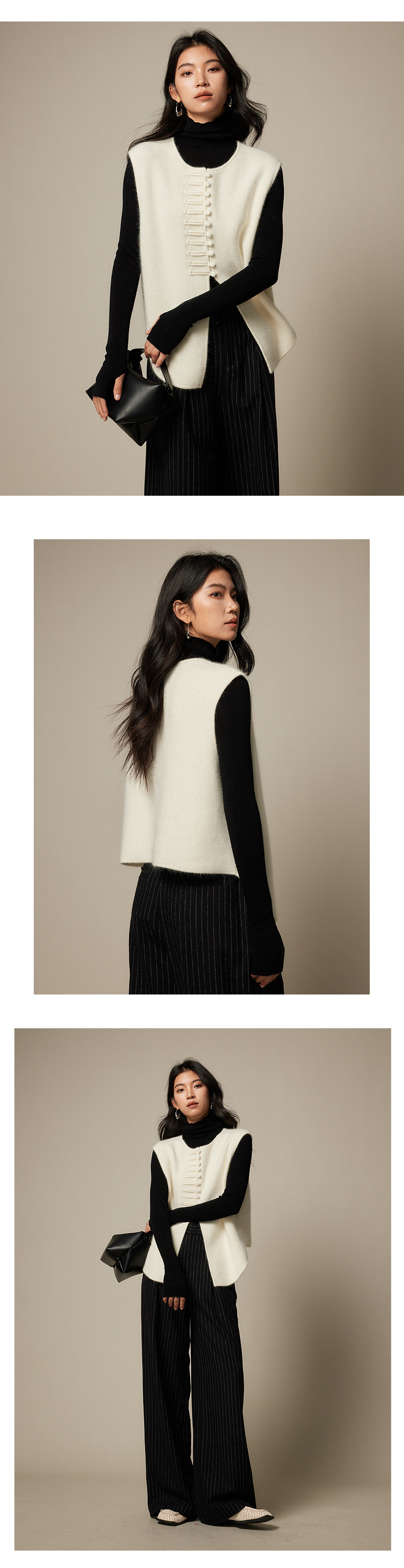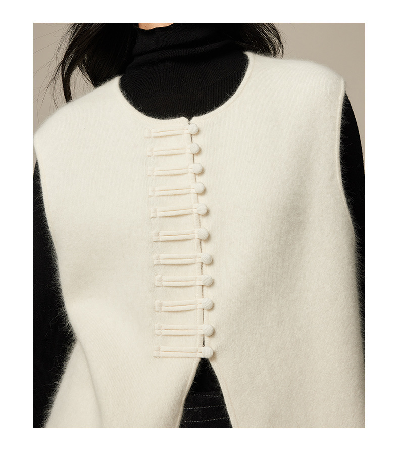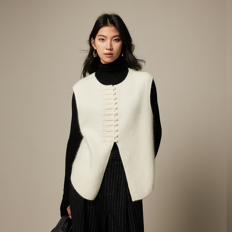 신중국풍 라운드넥 너구리털 니트 조끼 여성복 25 신상 울 조끼 초가을 여성 아우터