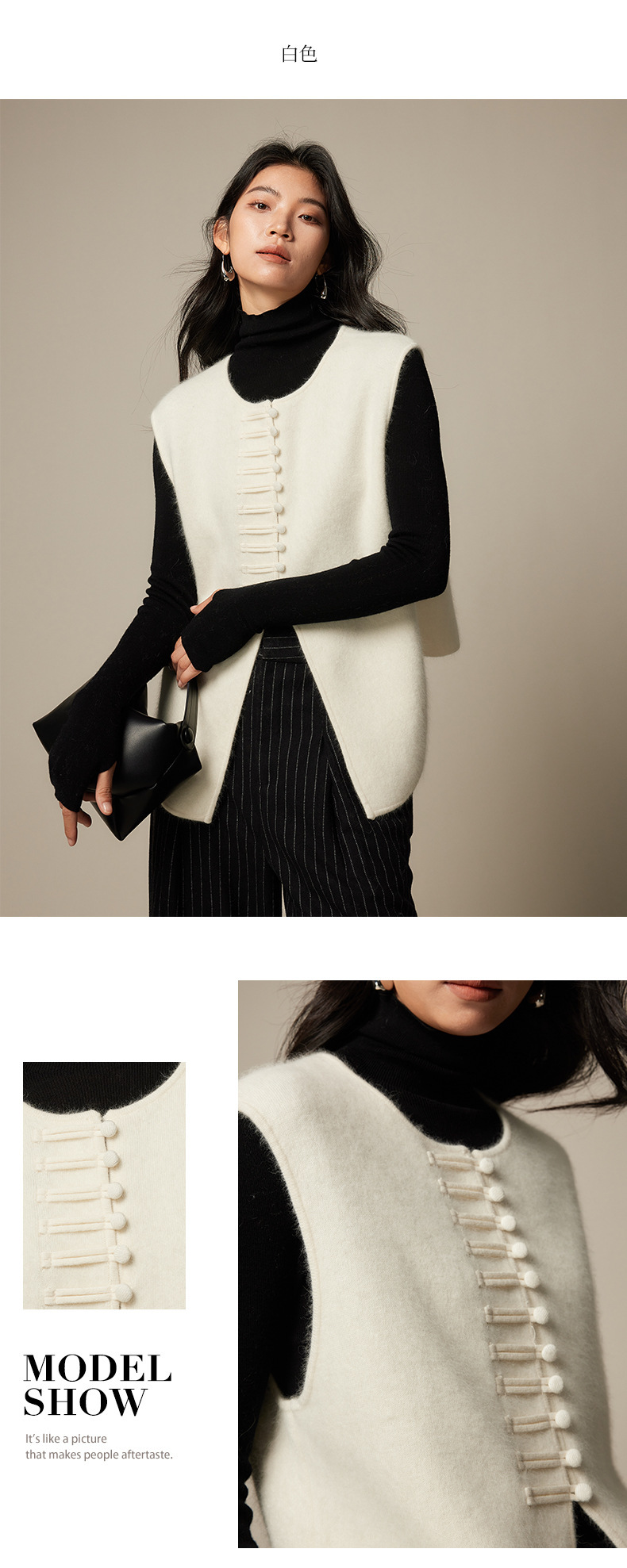 신중국풍 라운드넥 너구리털 니트 조끼 여성복 25 신상 울 조끼 초가을 여성 아우터스토어 가기