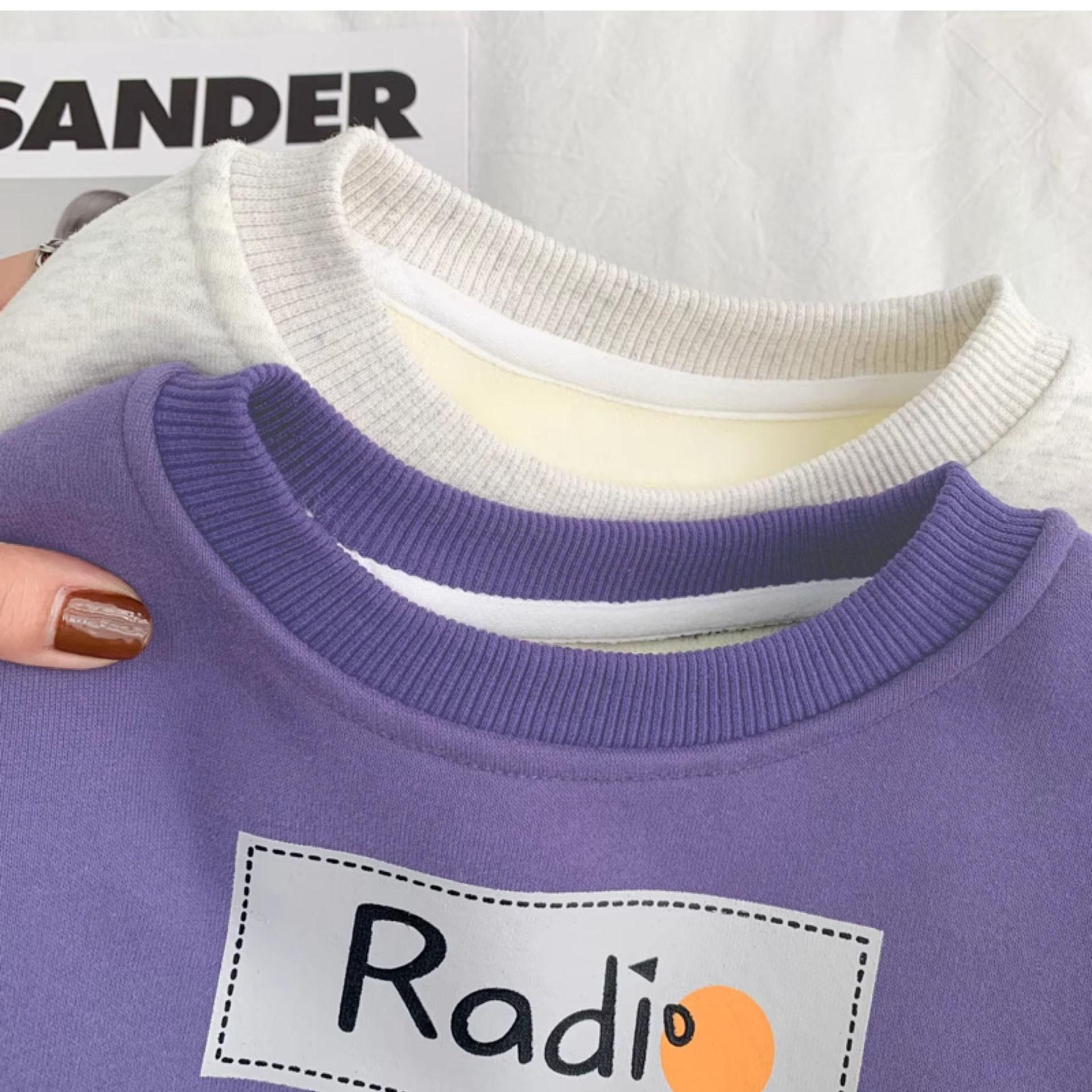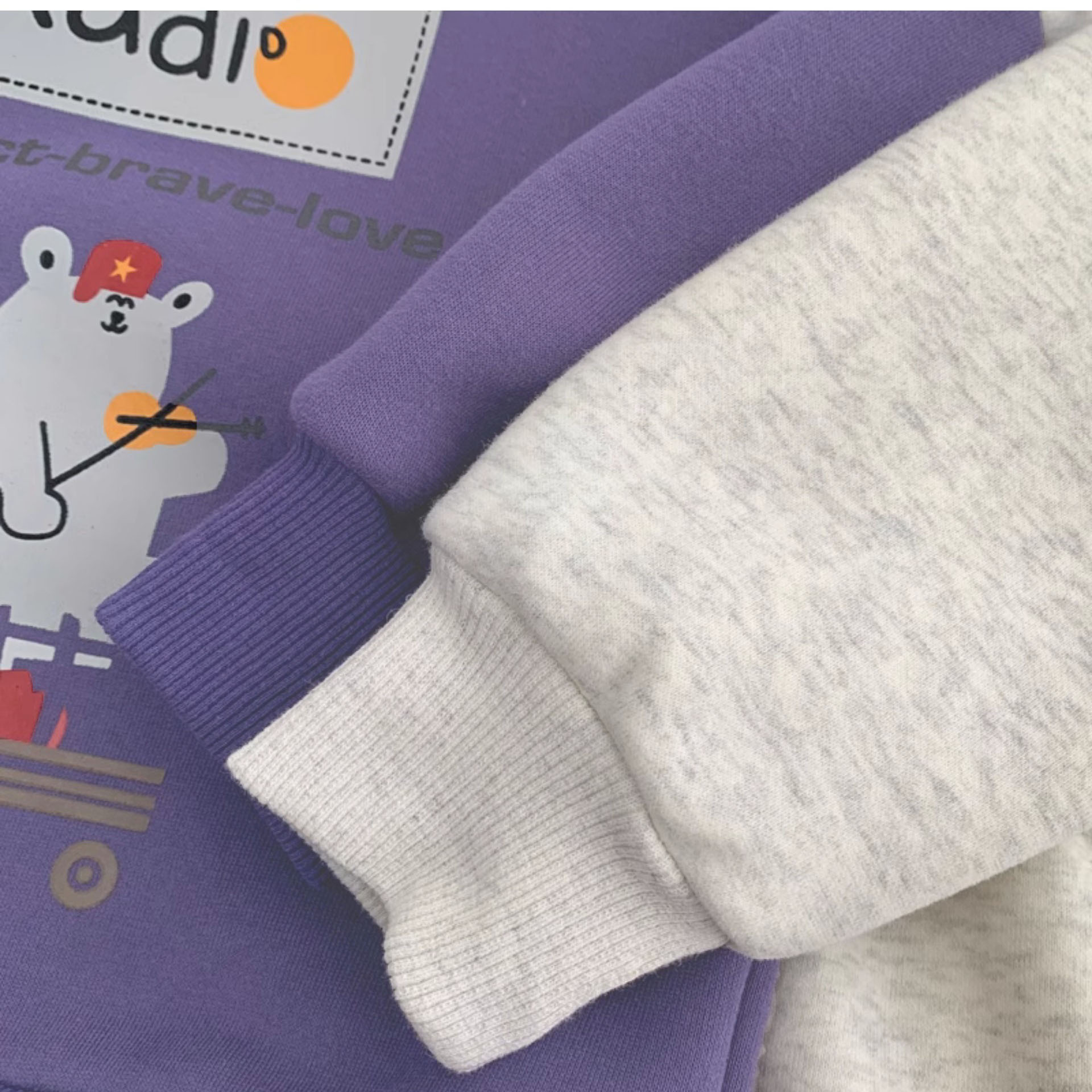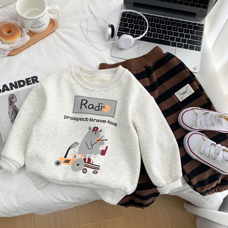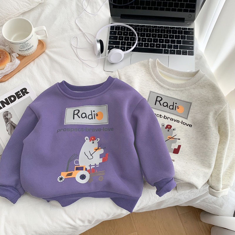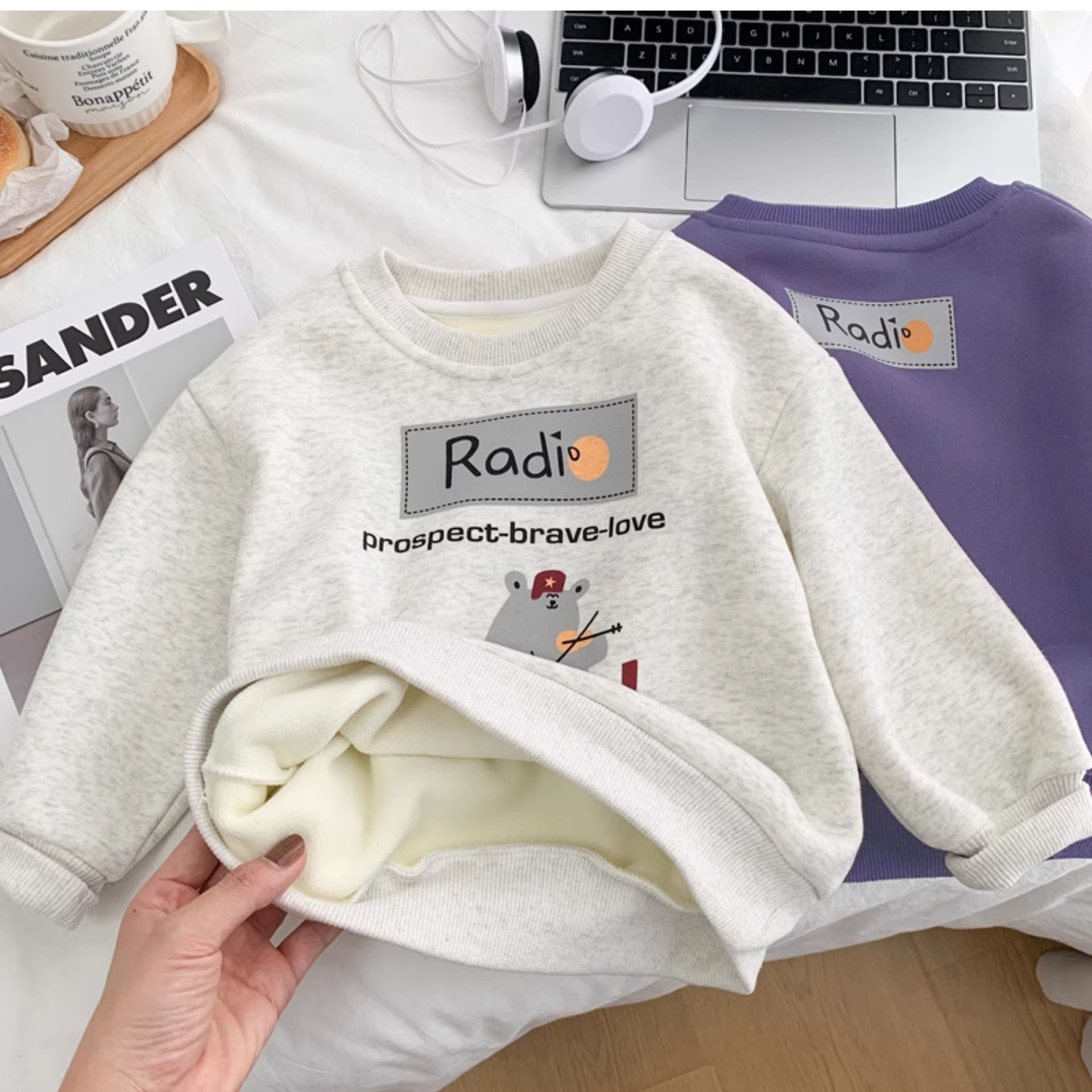 소년 기모 스웨터 가을과 겨울 의류 어린이 만화 서양 스타일 풀오버 2023 새로운 어린이 원피스 벨벳 탑스토어 가기