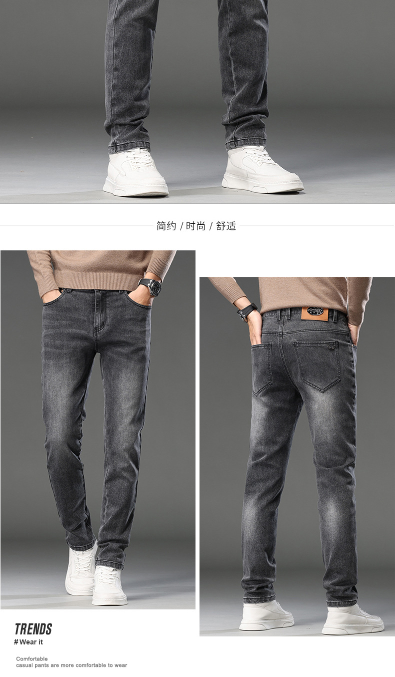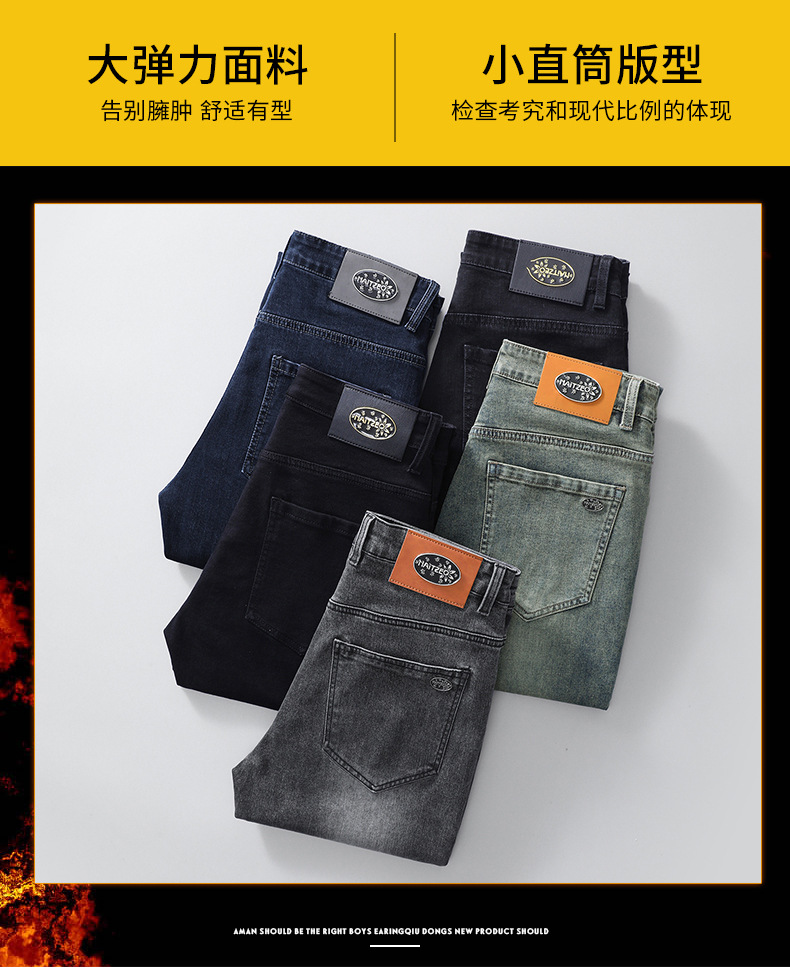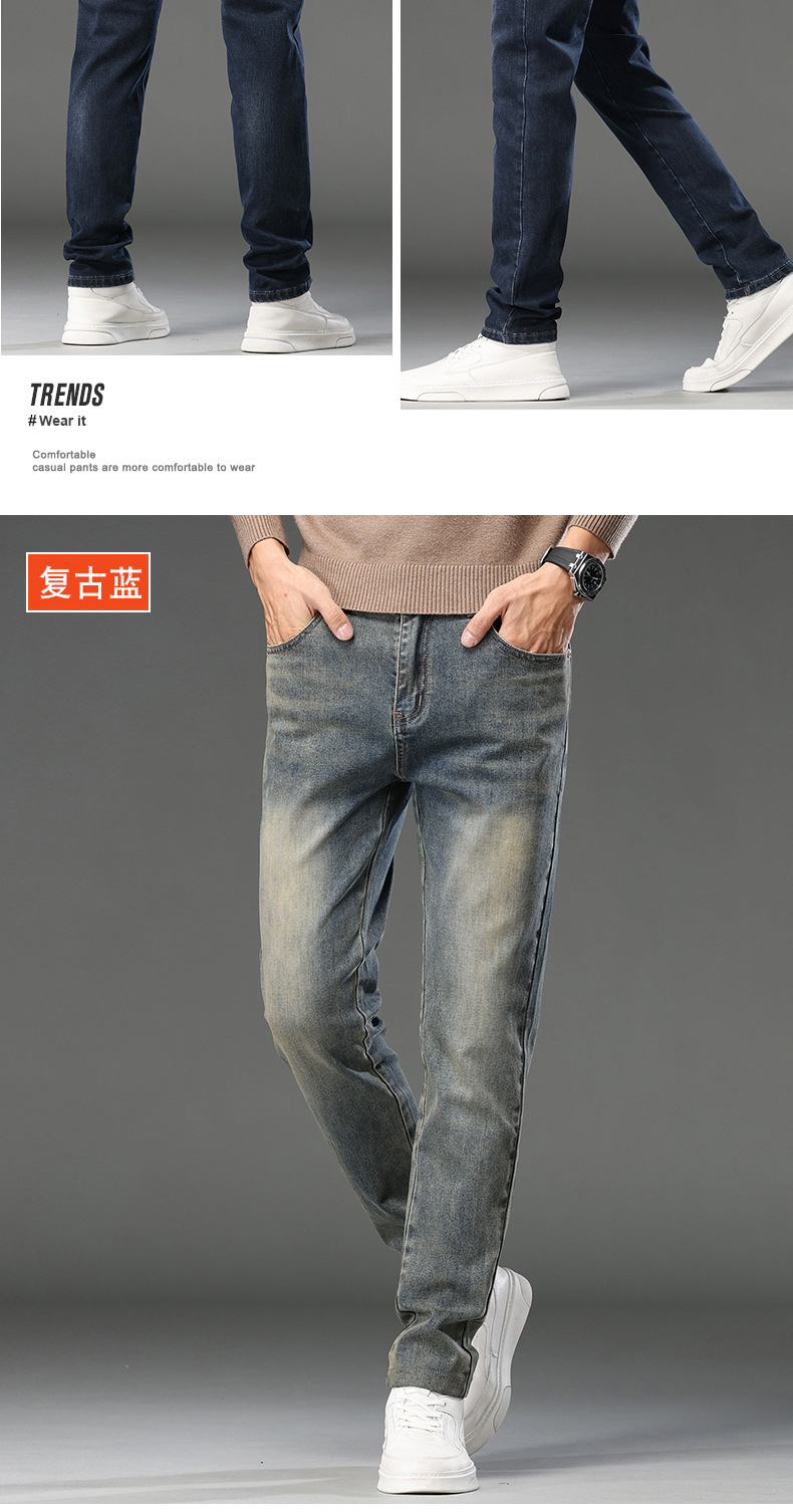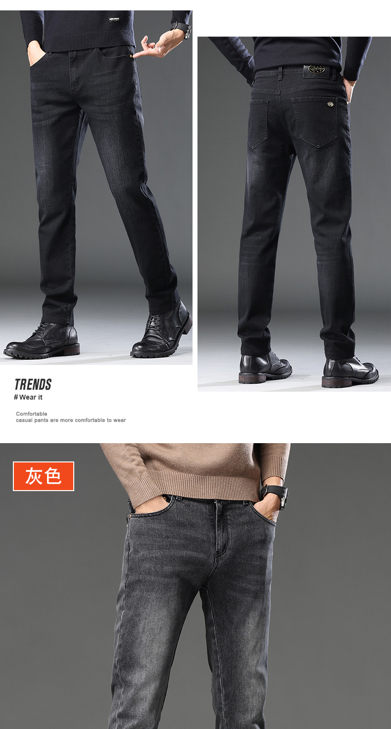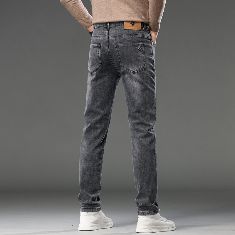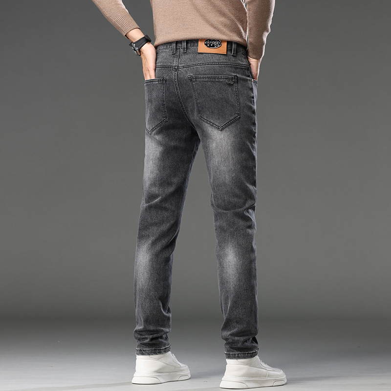 가을과 겨울 새로운 슬림핏 청바지 남성용 트렌디 한 모든 매치 스트레치 바지 남성 청소년 인기 캐주얼 스트레이트 팬츠스토어 가기