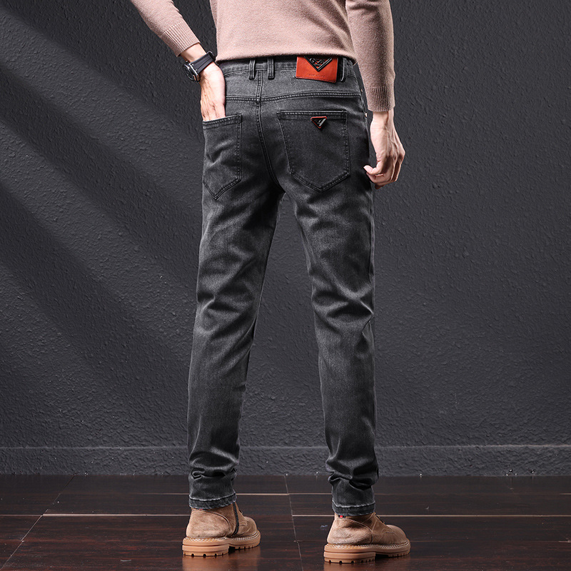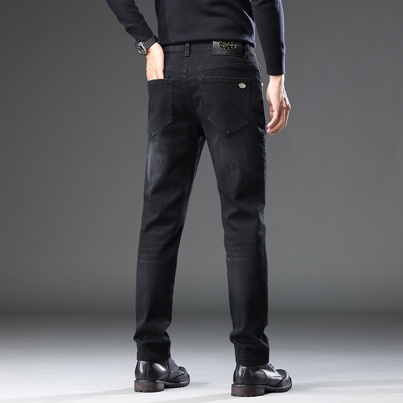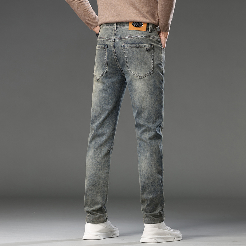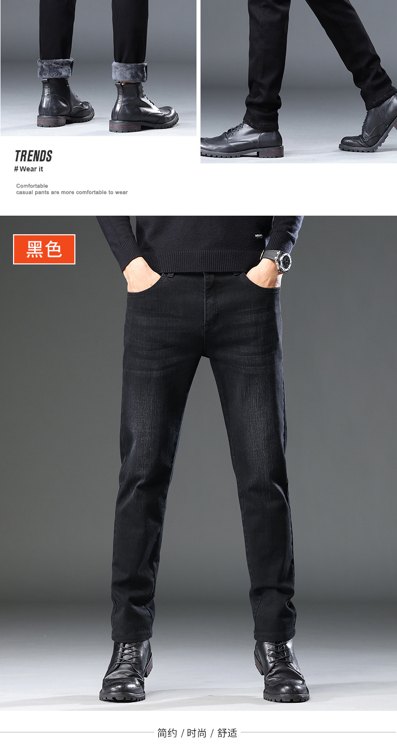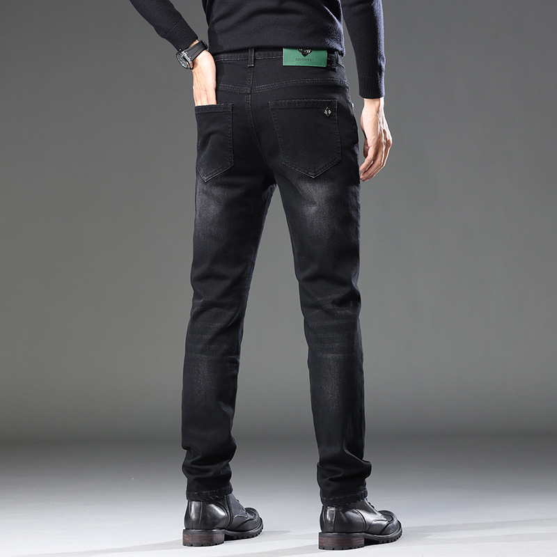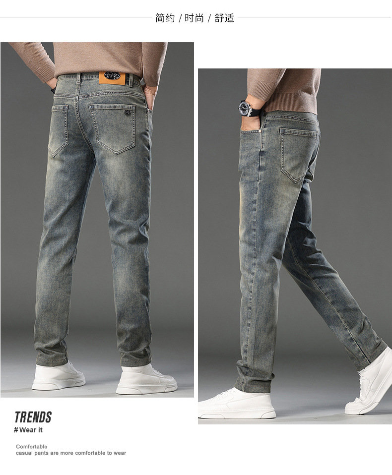 가을과 겨울 새로운 슬림핏 청바지 남성용 트렌디 한 모든 매치 스트레치 바지 남성 청소년 인기 캐주얼 스트레이트 팬츠스토어 가기