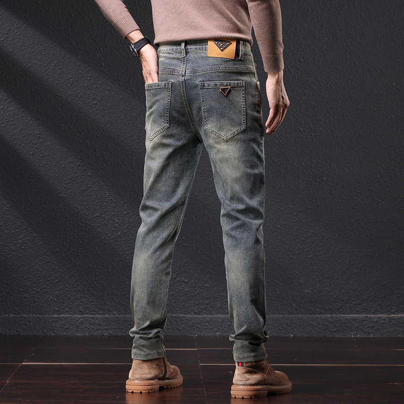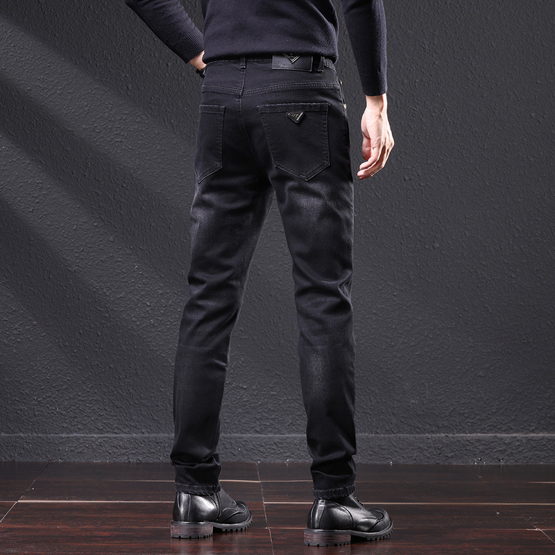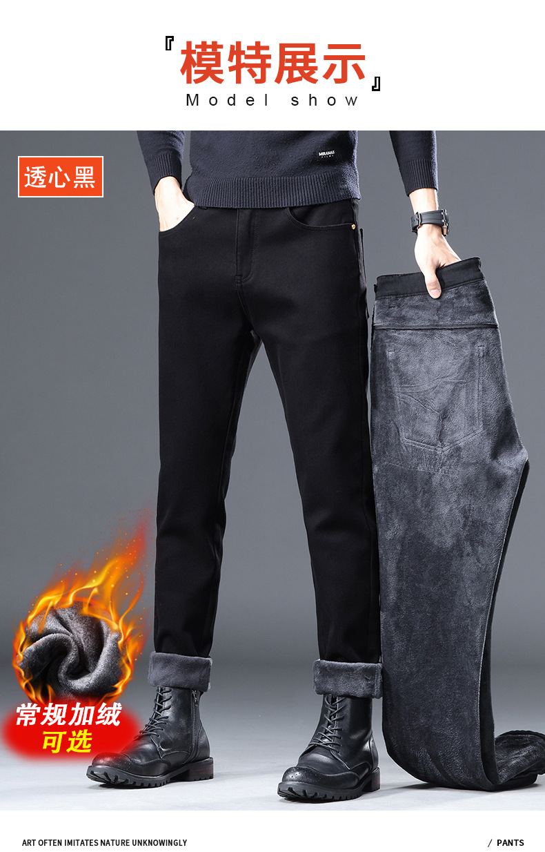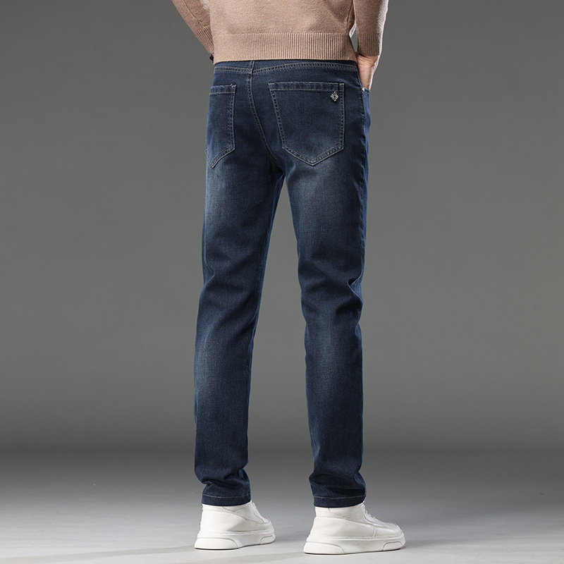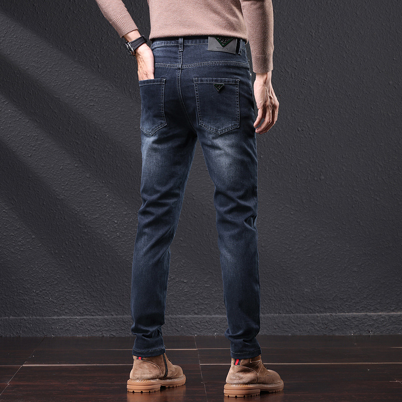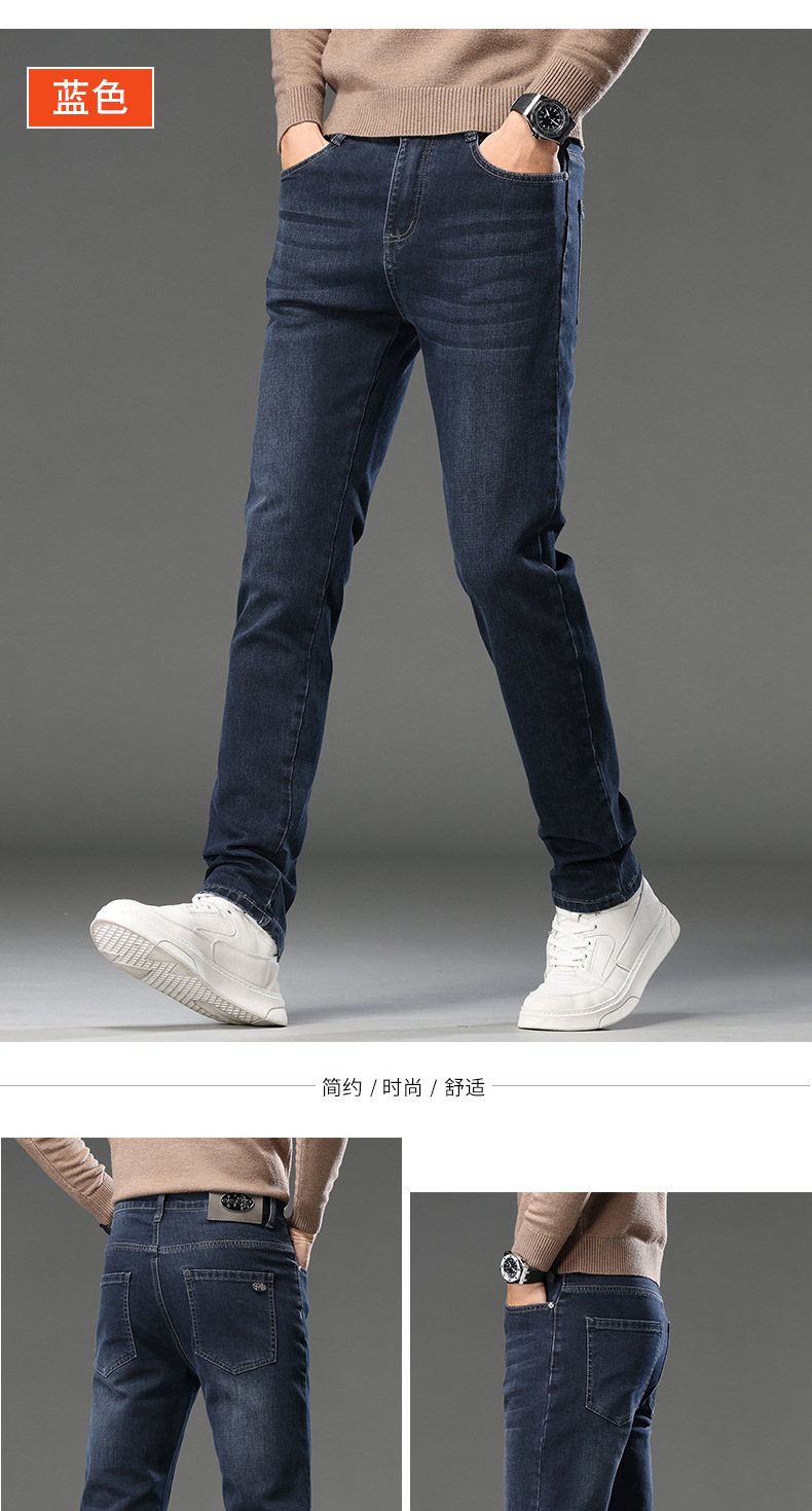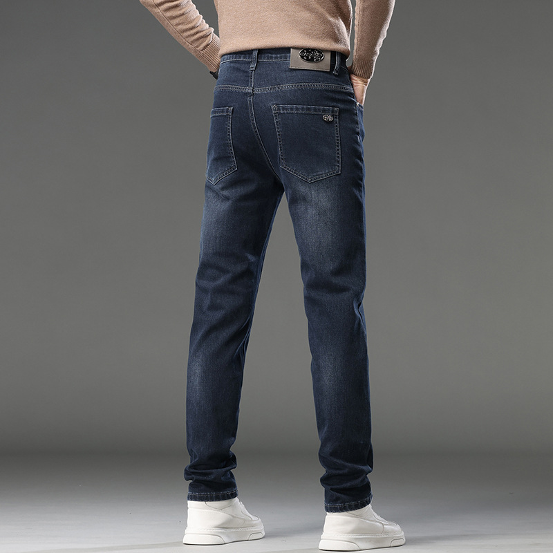 가을과 겨울 새로운 슬림핏 청바지 남성용 트렌디 한 모든 매치 스트레치 바지 남성 청소년 인기 캐주얼 스트레이트 팬츠스토어 가기