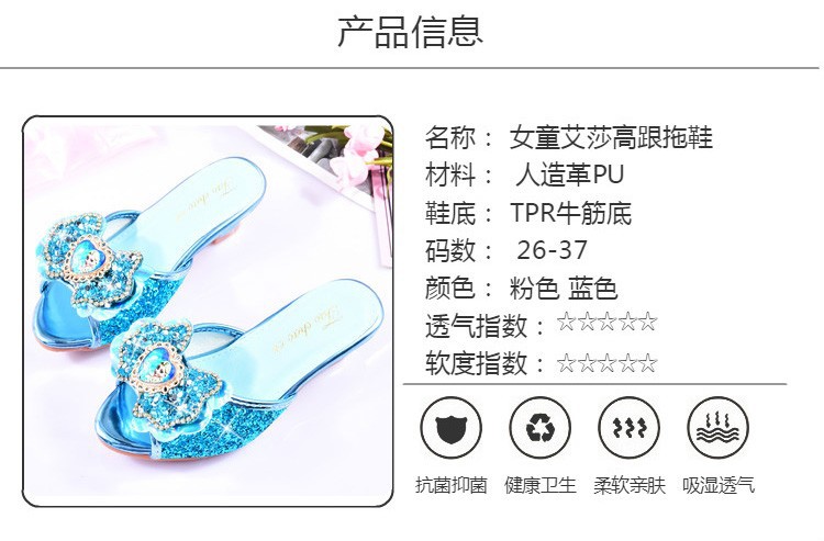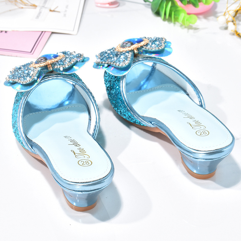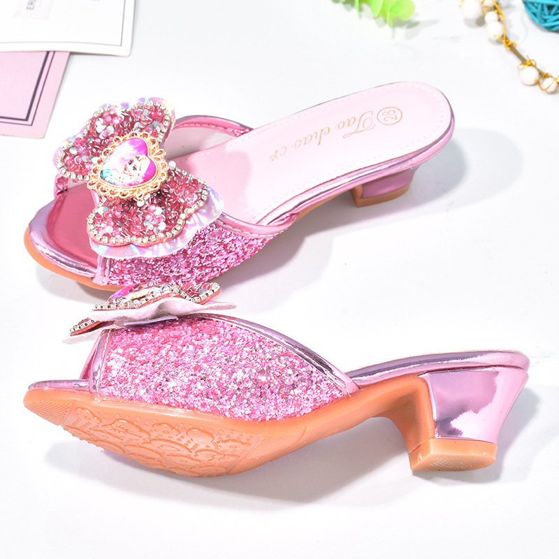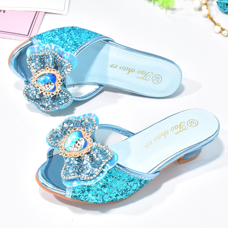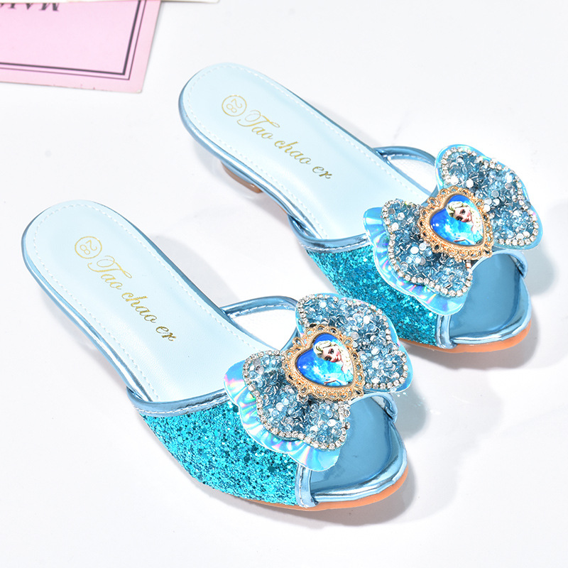 엘사 공주 신발 여름 여자아이 하이힐 슬리퍼 다용도 어린이 만화 샌들 반짝이 슬리퍼 홈 어린이 신발스토어 가기