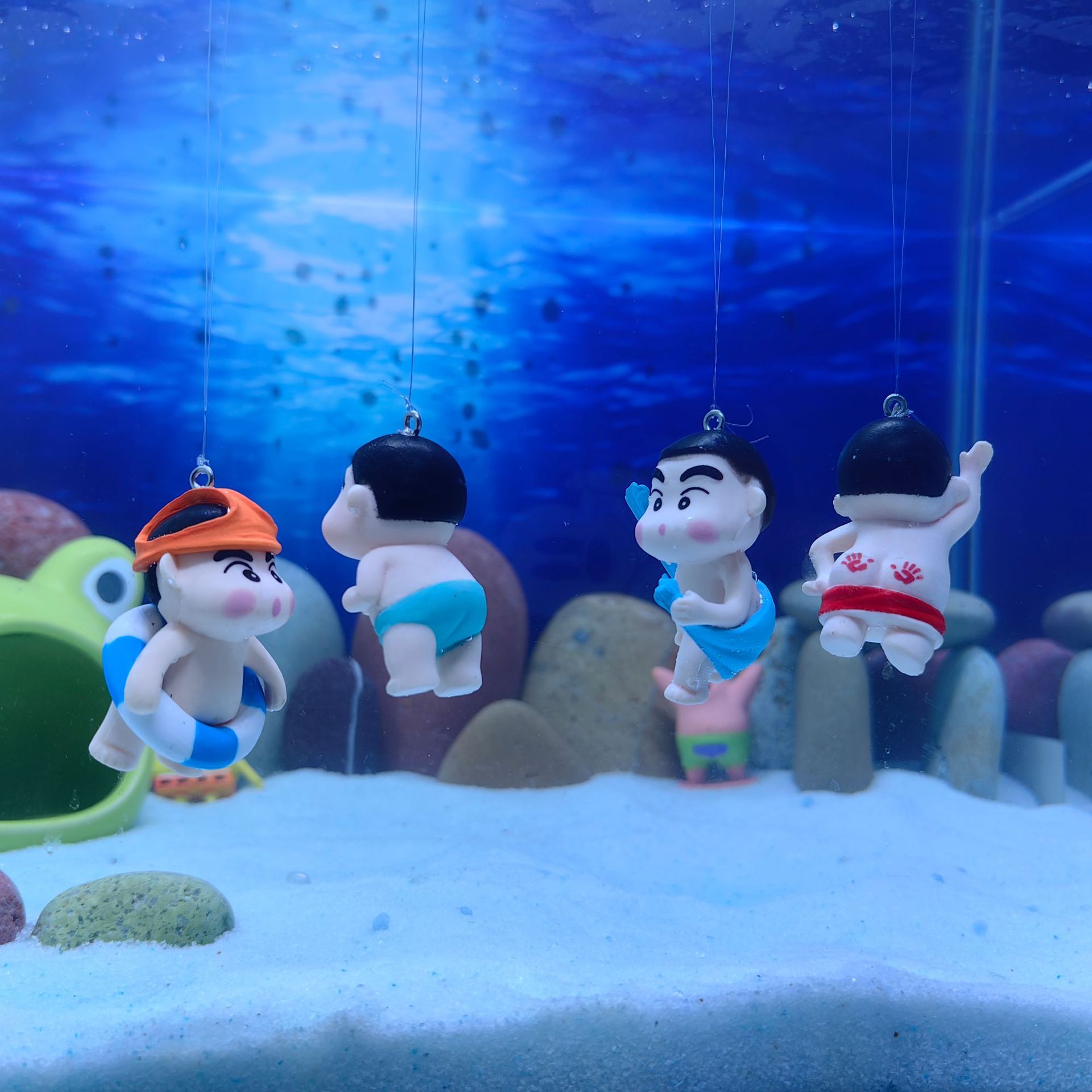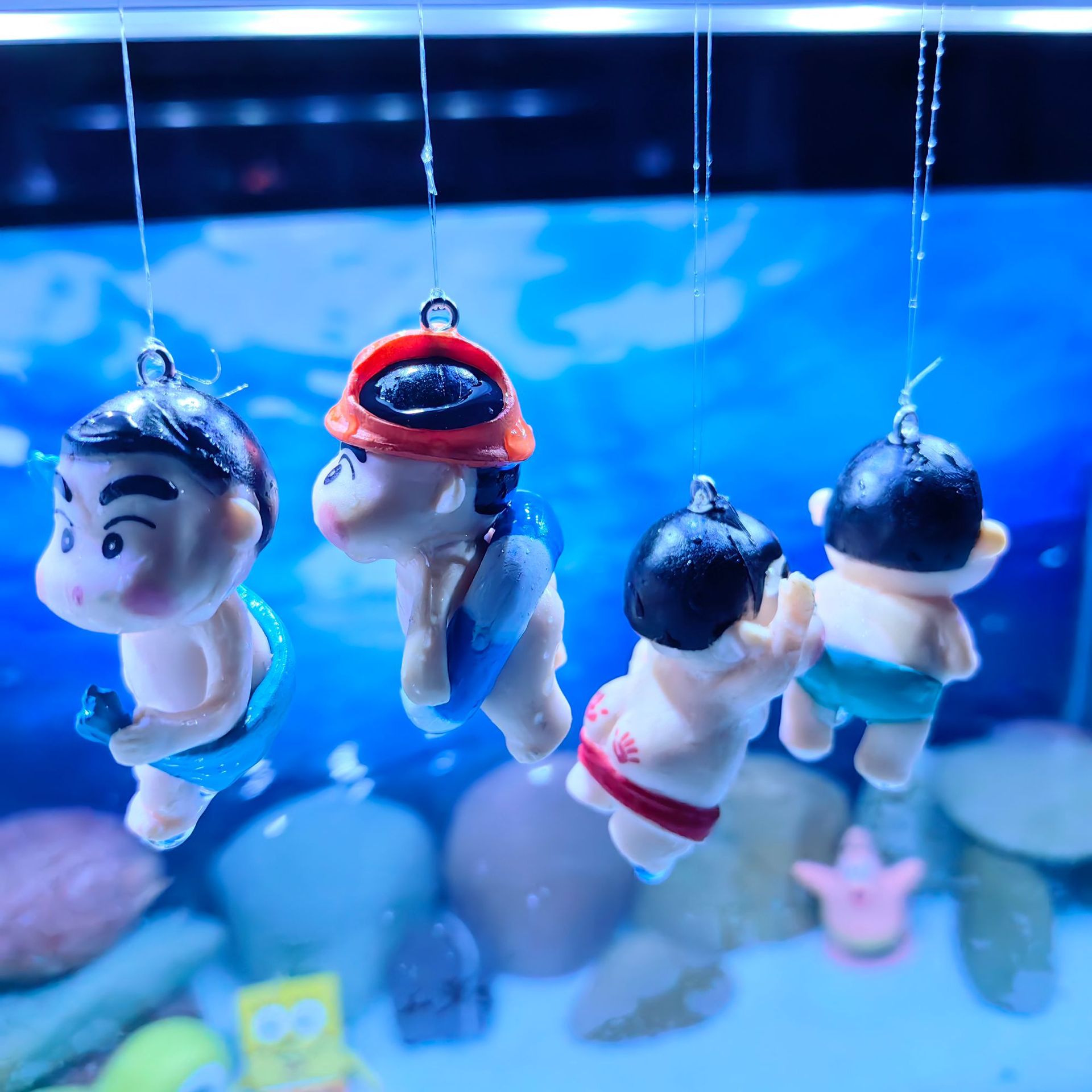 크리 에이 티브 어항 서스펜션 장식 만화 크레용 작은 새 수족관 떠 다니는 개체 귀여운 인형 조경 작은 장식품