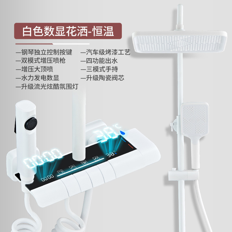 욕실 홈 건 그레이 모든 구리 분위기 빛 샤워 세트 일정 온도 디지털 디스플레이 과급 샤워 샤워 도매