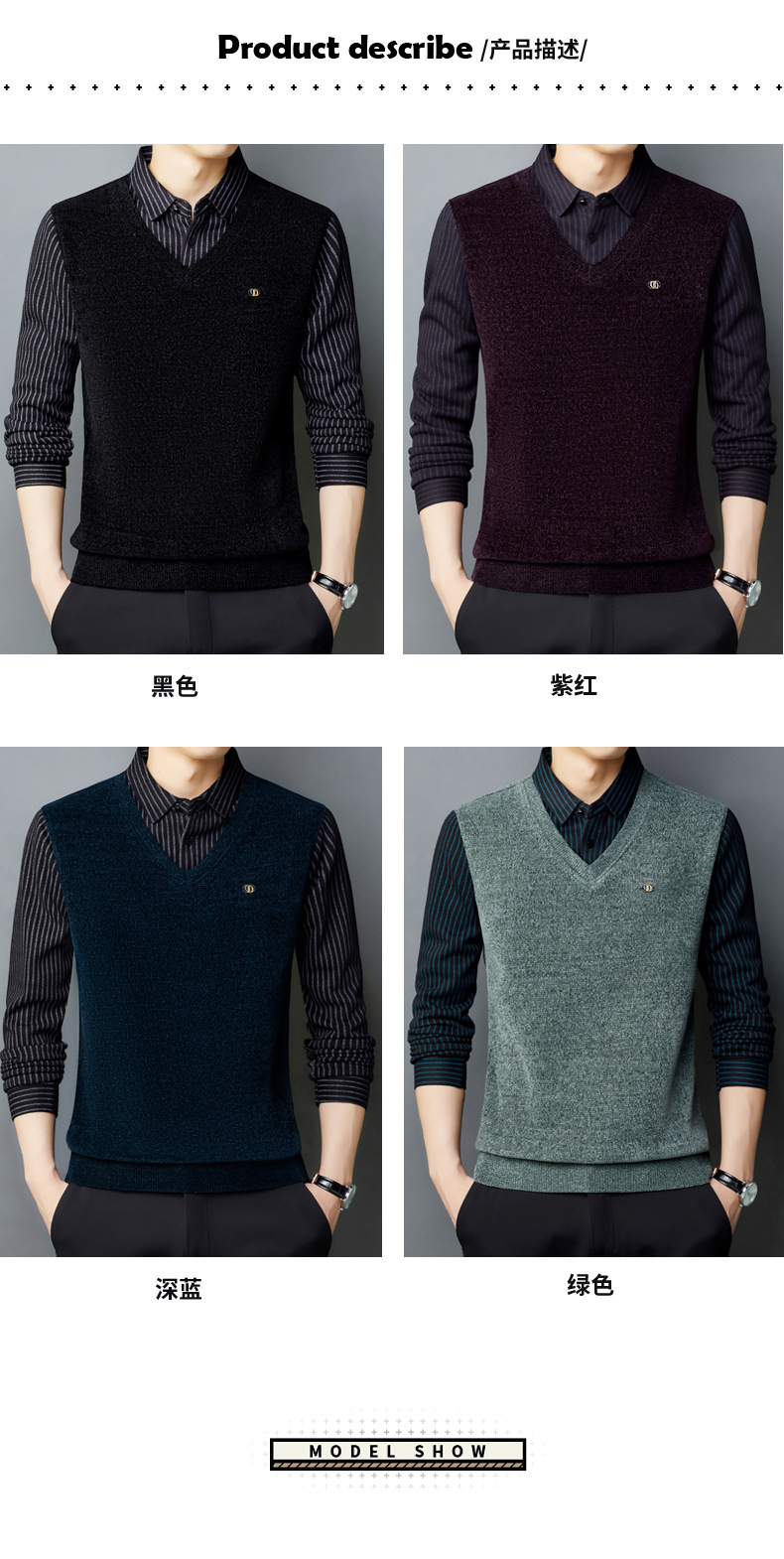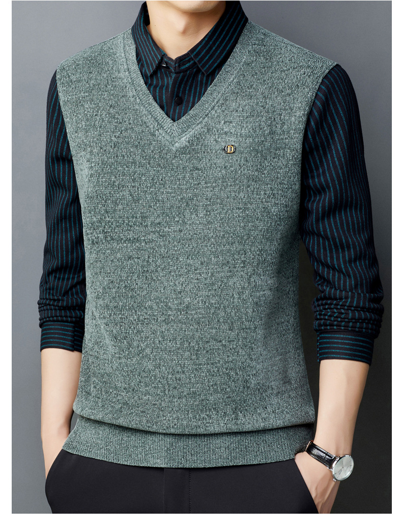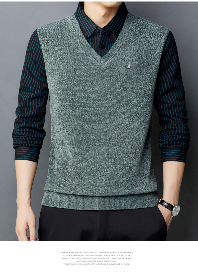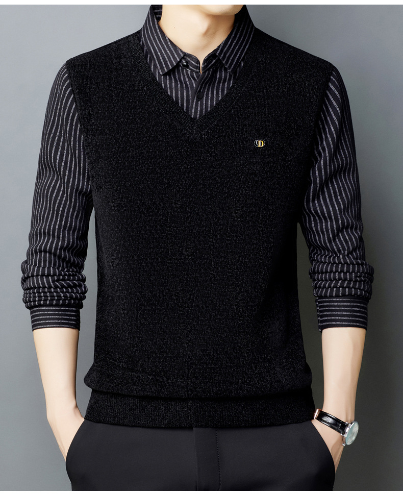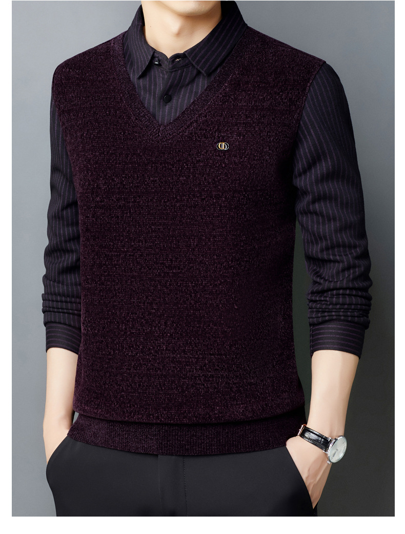 [기모 농축] 가을과 겨울 아빠 니트 스웨터 가짜 두 중년 남성 따뜻한 기본 스웨터 컬러 매칭