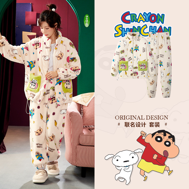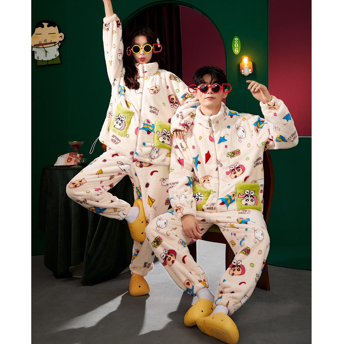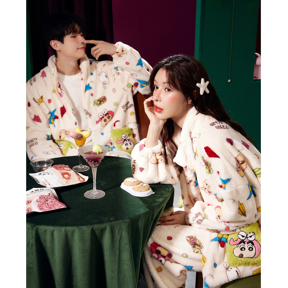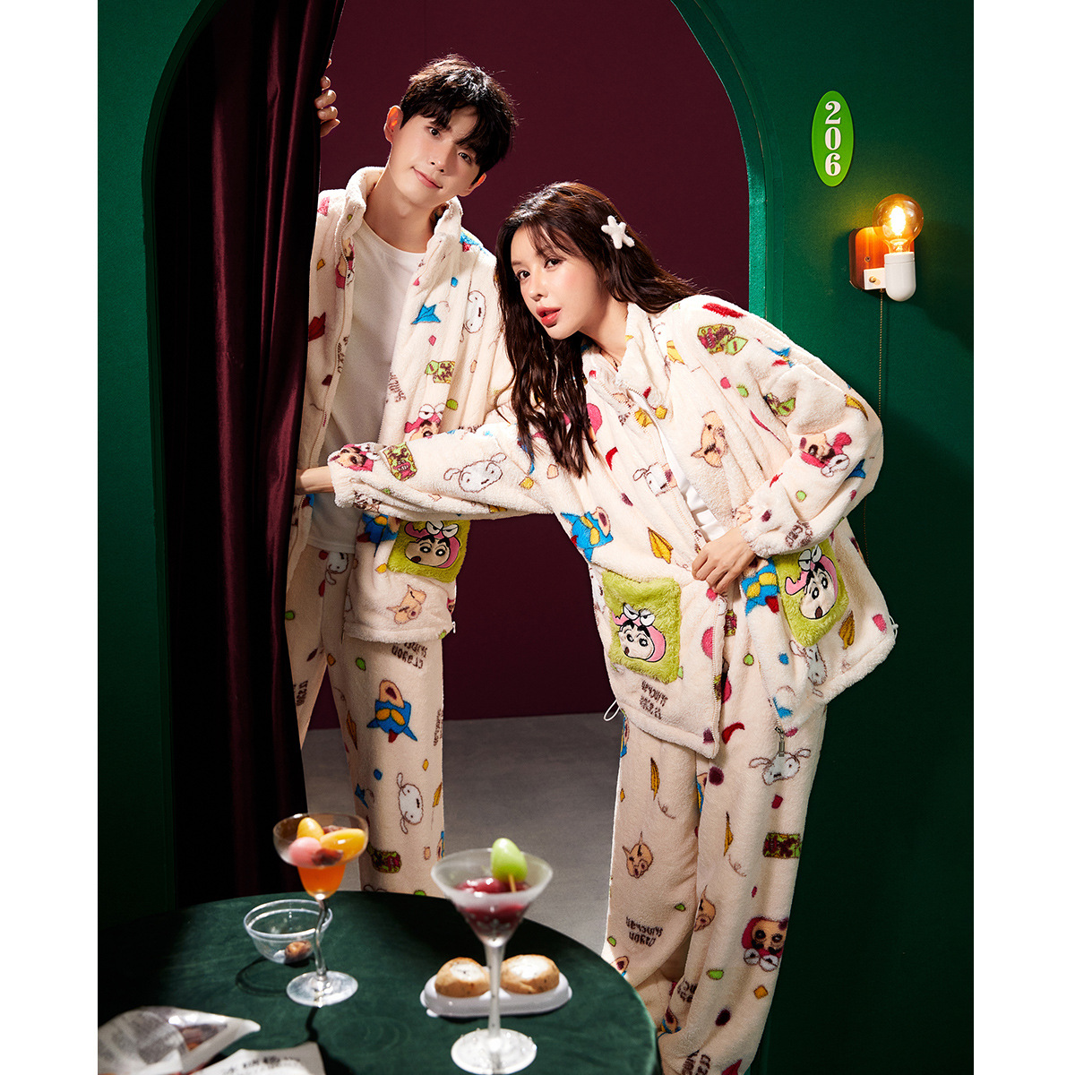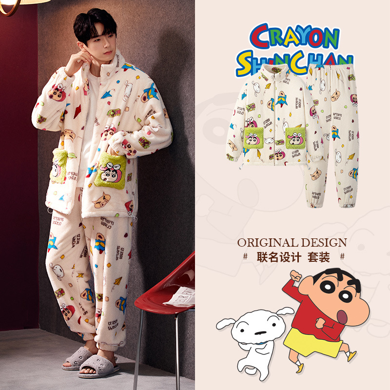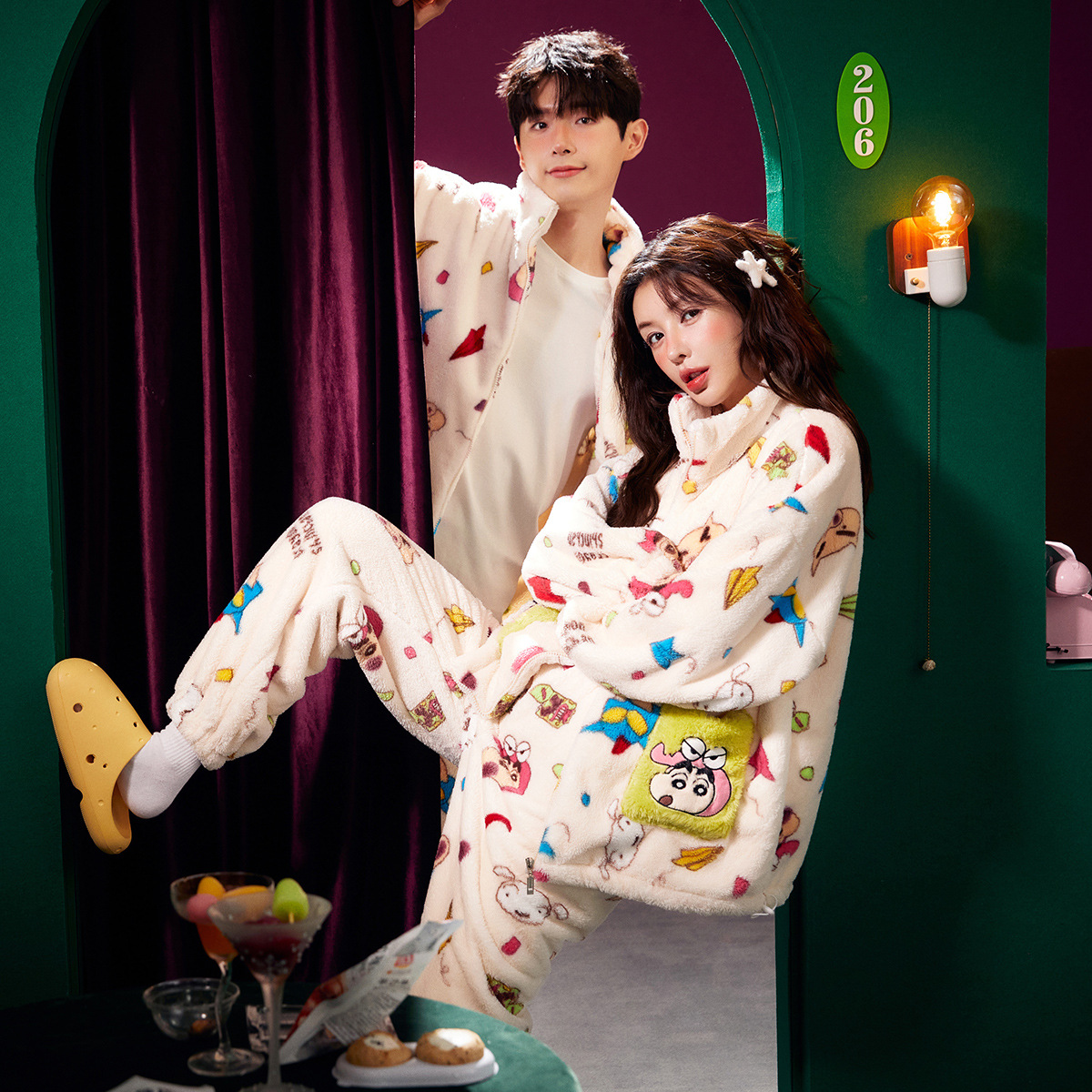 런마 [축열형] 크레용 Xiaoxin 가을과 겨울 잠옷 여성 두꺼운 커플 산호 양털 잠옷 가정복 남자스토어 가기