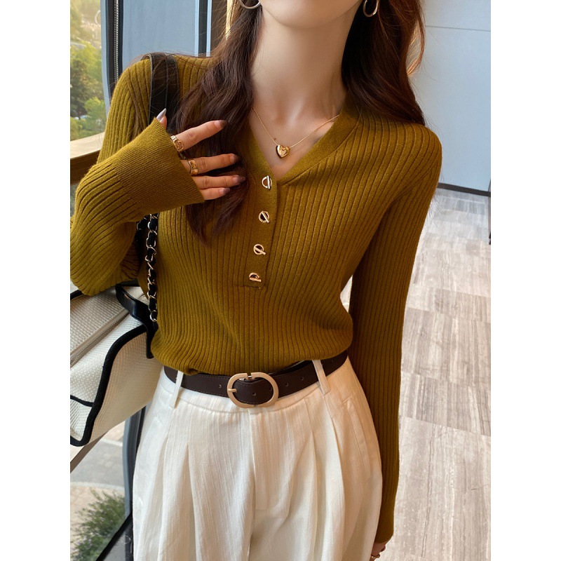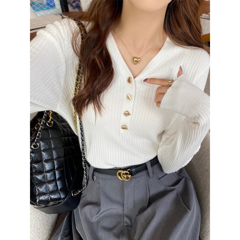 베이스 셔츠 여성용 샤넬 스타일 내부 2023 새로운 가을과 겨울 니트 셔츠 높은 지혜 부드러운 밀랍 스웨터 가을 탑스토어 가기
