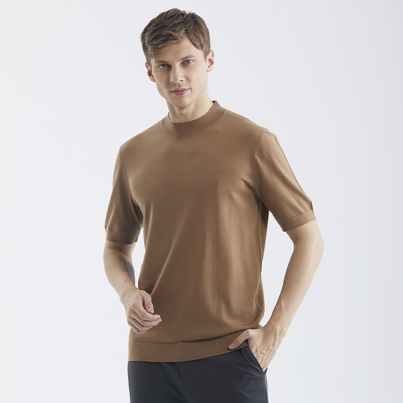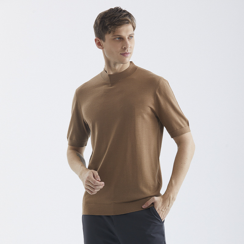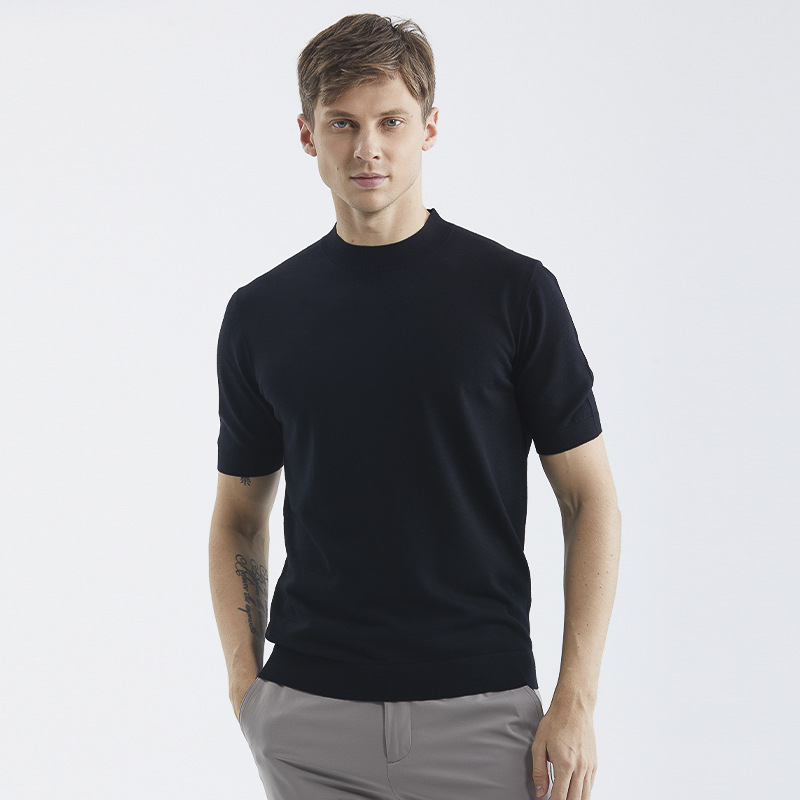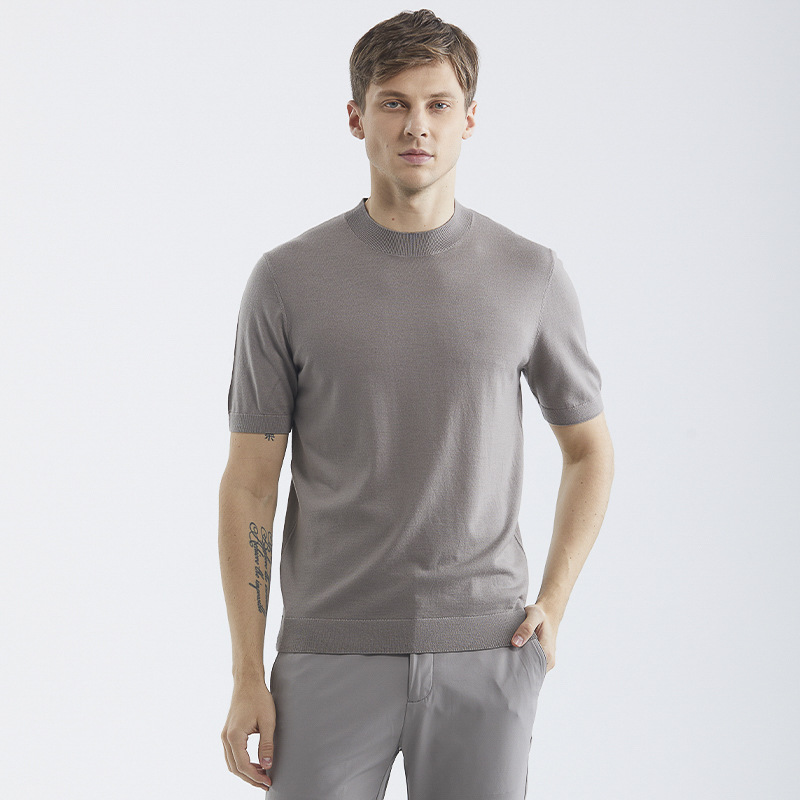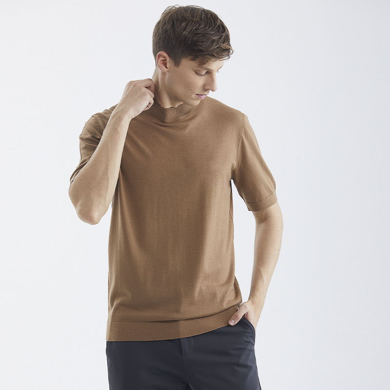 인기 상품 세탁기 사용 가능 반팔 스웨터 남성용 라운드넥 심플 남성복 캐주얼 비즈니스 고급 100% 울 스웨터 남성용 HM163