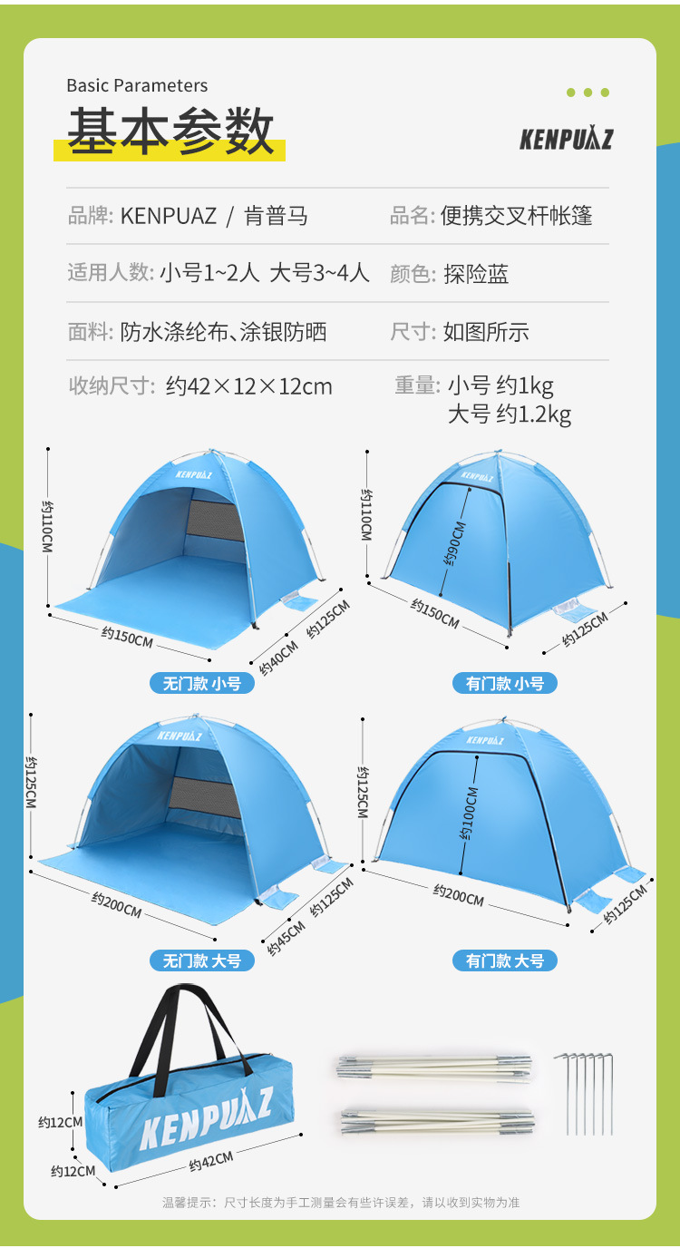 【尺寸/size】帐篷展开:S小号约 145*165*110CM,L大号约200*165*125CM;