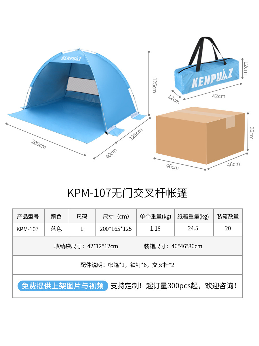 【箱规/carton specification】:S小号:无门帘款单个重约1KG,箱重约20.5KG,一箱可装20顶;S小号:有门帘款单个重约1.25KG,箱重约22KG,一箱可装20顶;L大号:无门帘款单个重约1KG,箱重约24.5KG,一箱可装20顶;L大号:有门帘款单个重1.25KG,箱重约25.5KG,一箱可装20顶;箱尺寸46*46*36CM