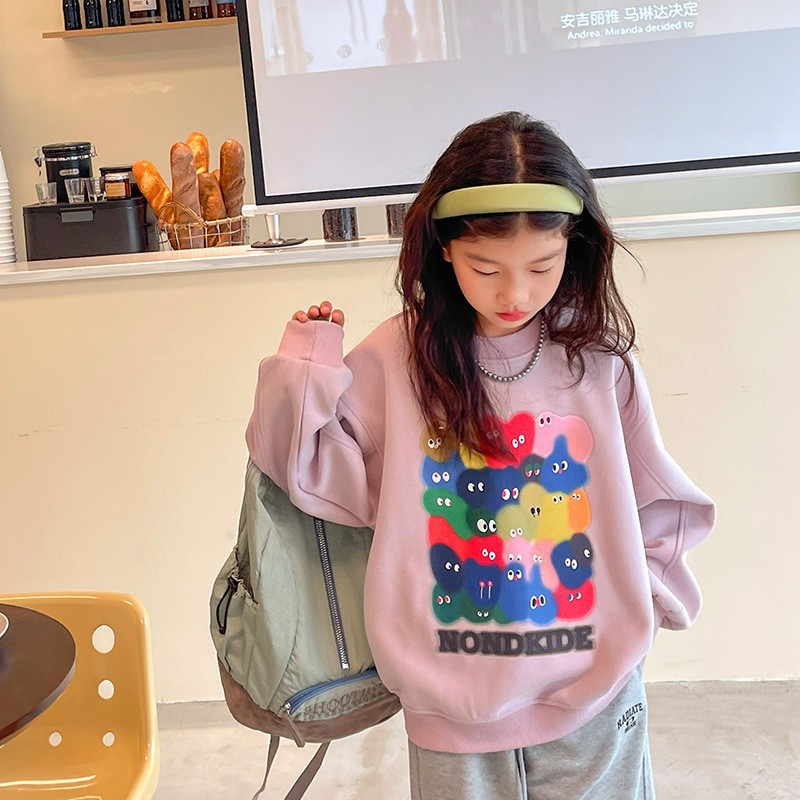 가을과 겨울 어린이 기모 두꺼운 게으른 스타일 느슨한 캐주얼 스웨터 여아 재미 낙서 풀오버 탑 긴 소매 티셔츠