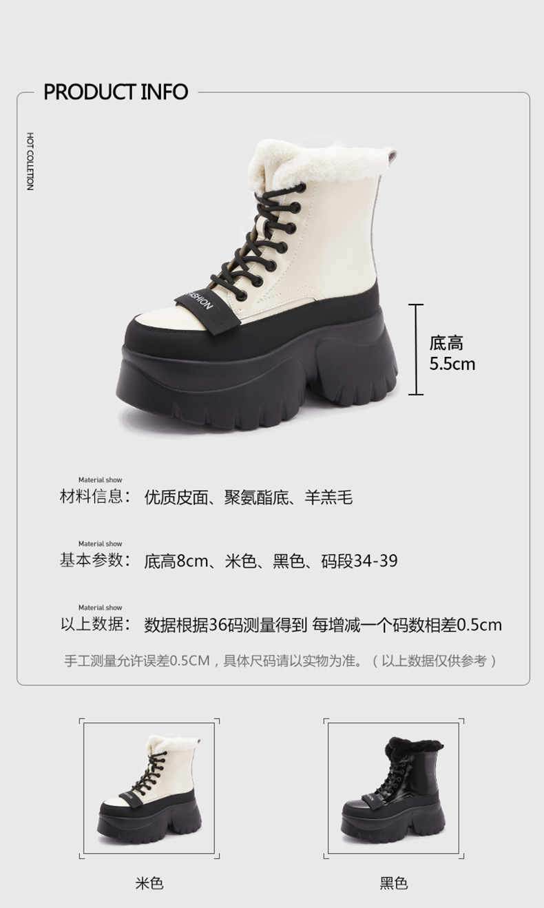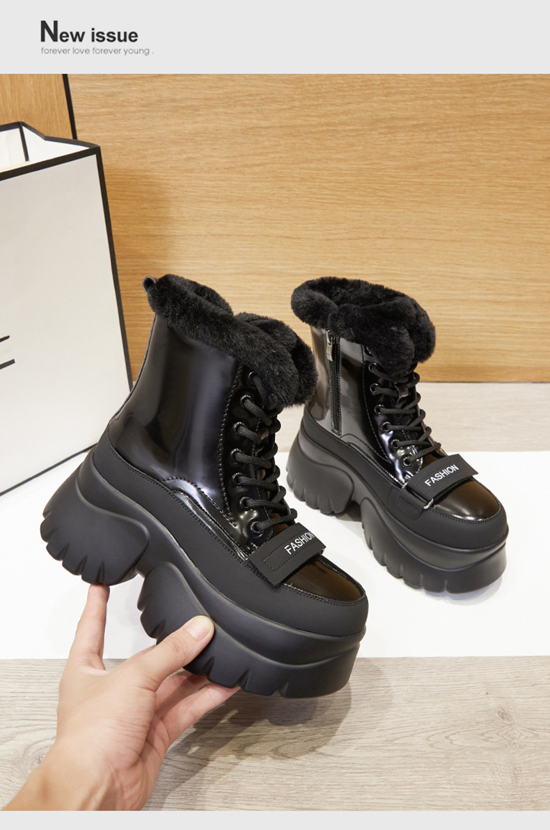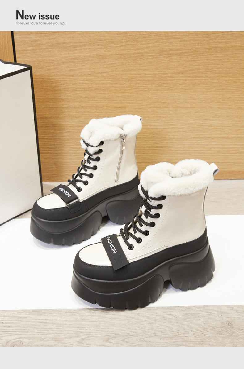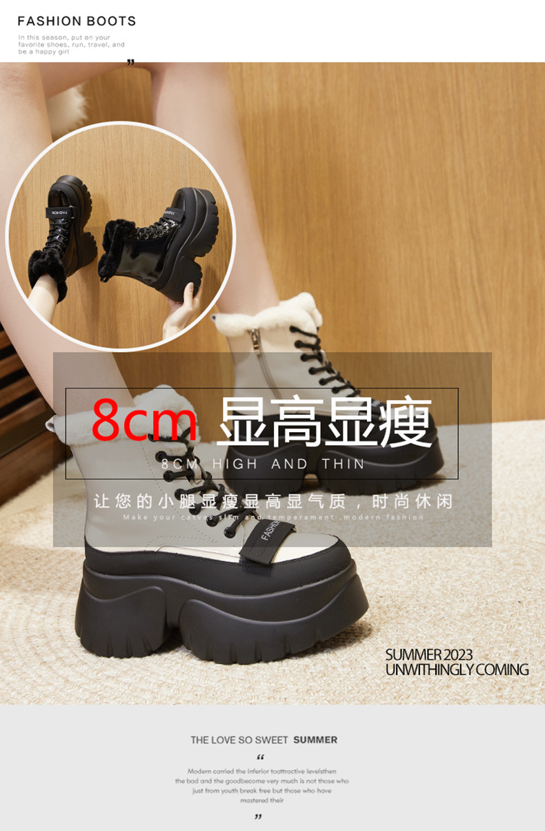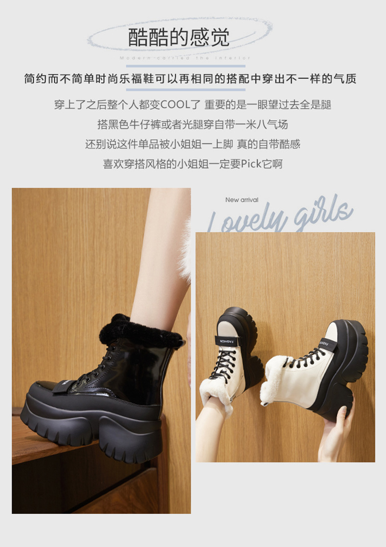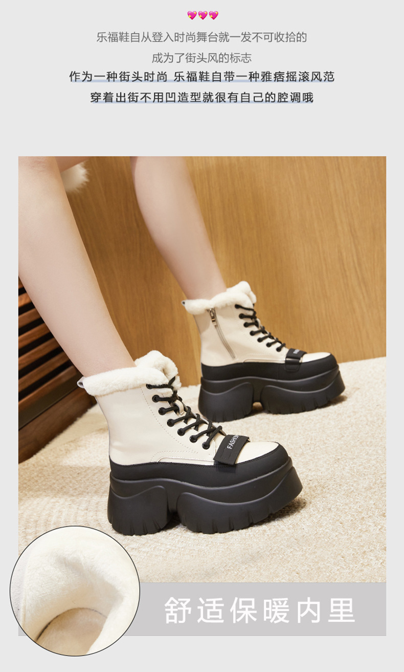 두꺼운 밑창 키높이 로퍼 여성용 2024 신상 가을 겨울 따뜻한 플리스 안감 영국 스타일 가죽 신발 중간 높이 하이탑 면화 신발스토어 가기