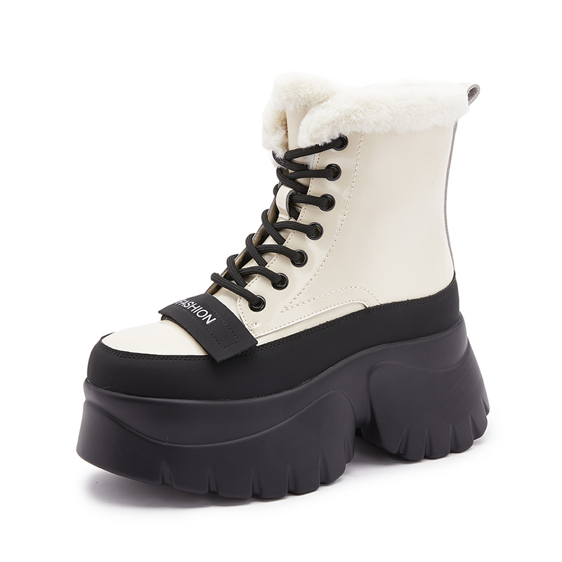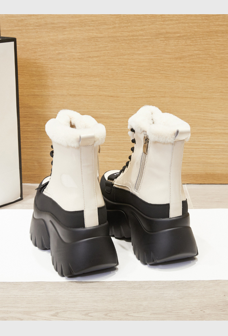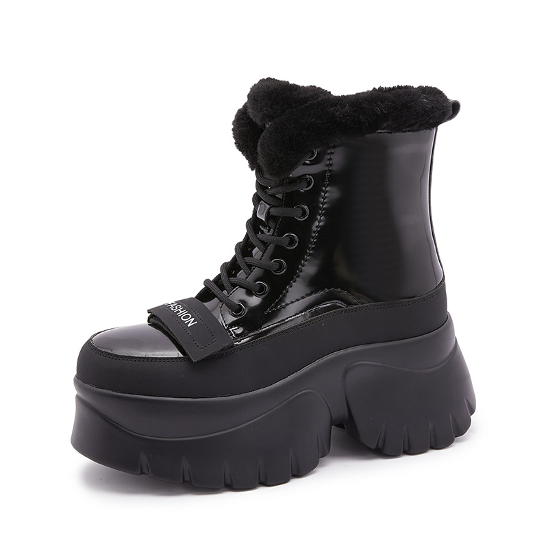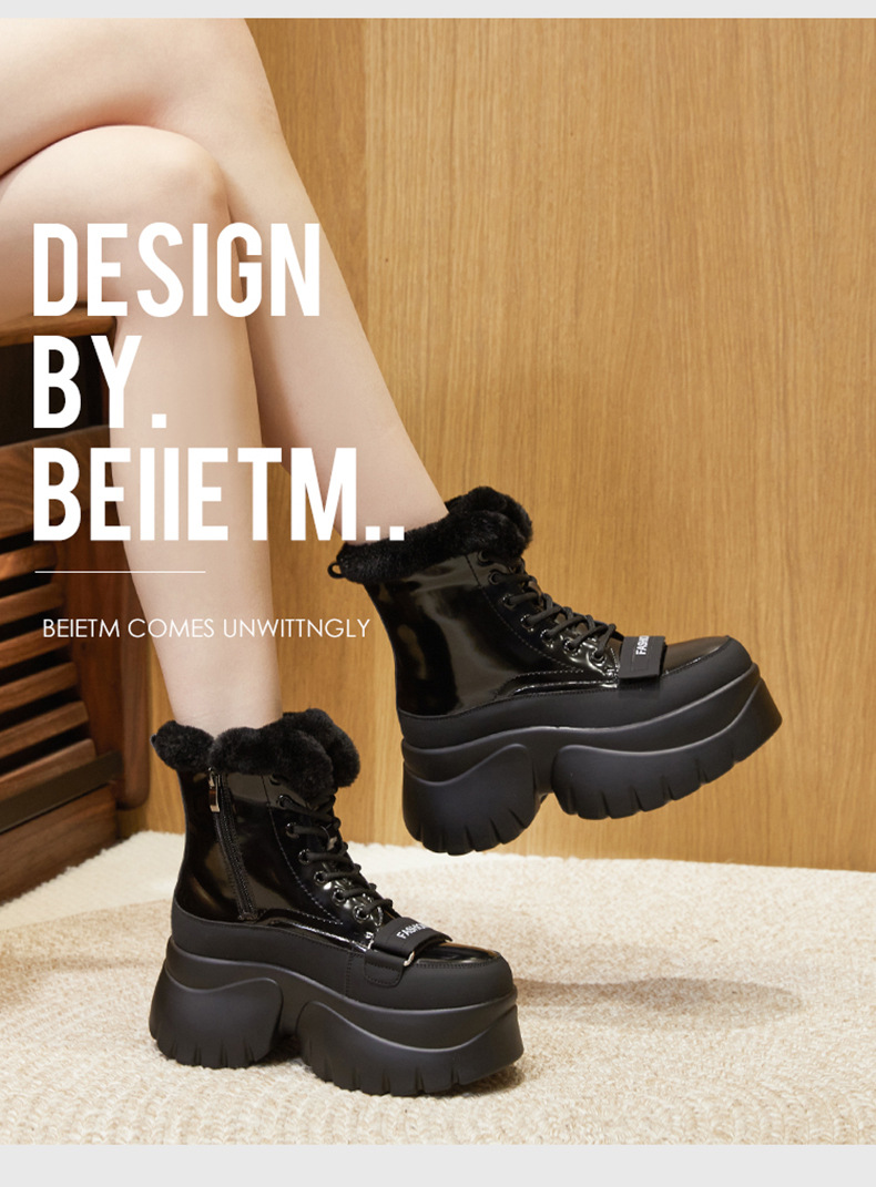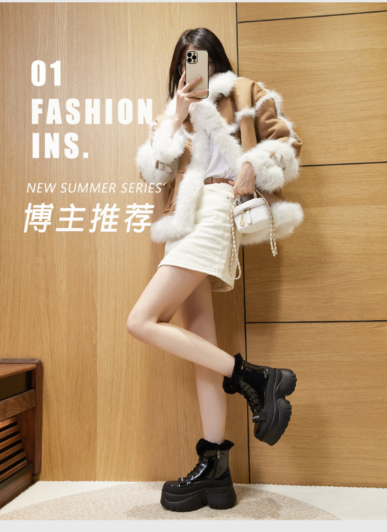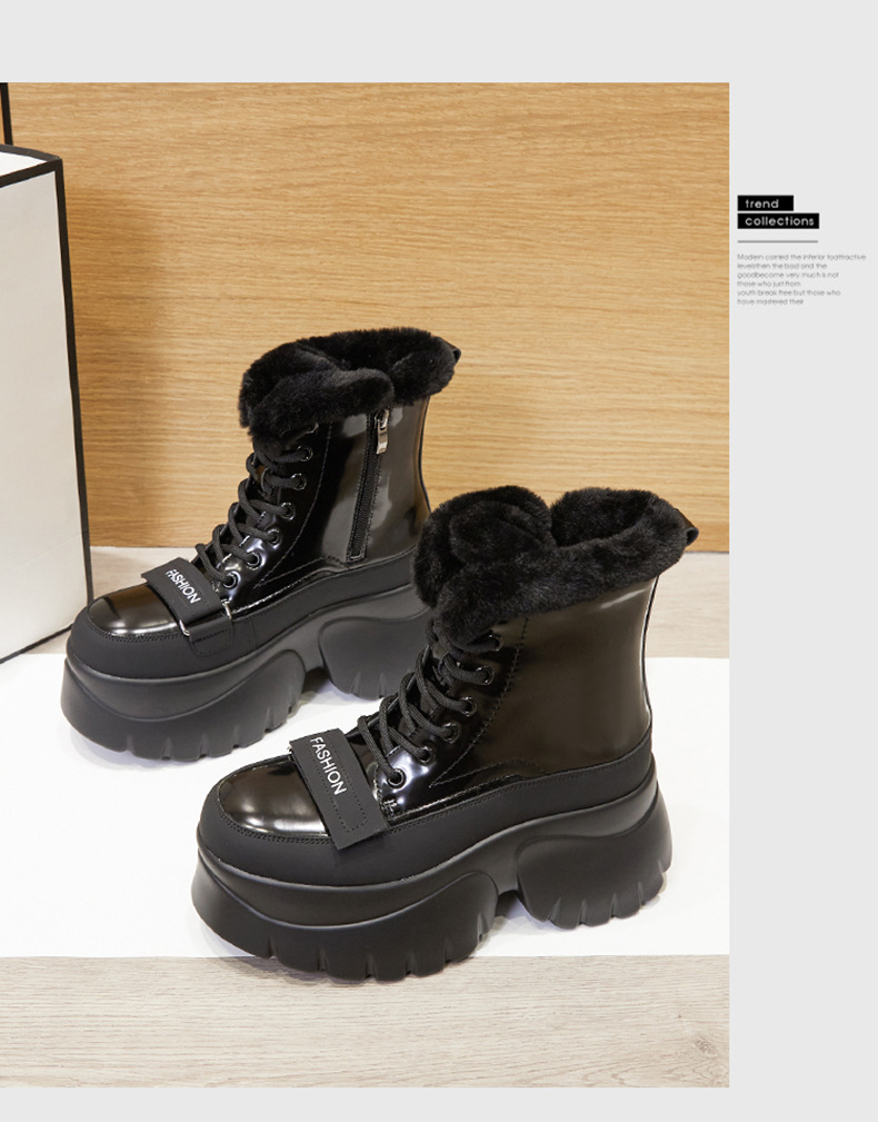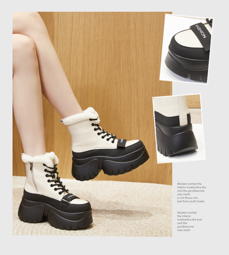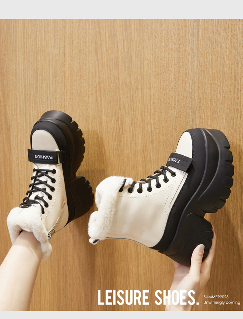 두꺼운 밑창 키높이 로퍼 여성용 2024 신상 가을 겨울 따뜻한 플리스 안감 영국 스타일 가죽 신발 중간 높이 하이탑 면화 신발스토어 가기