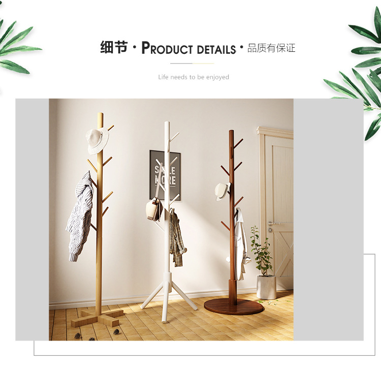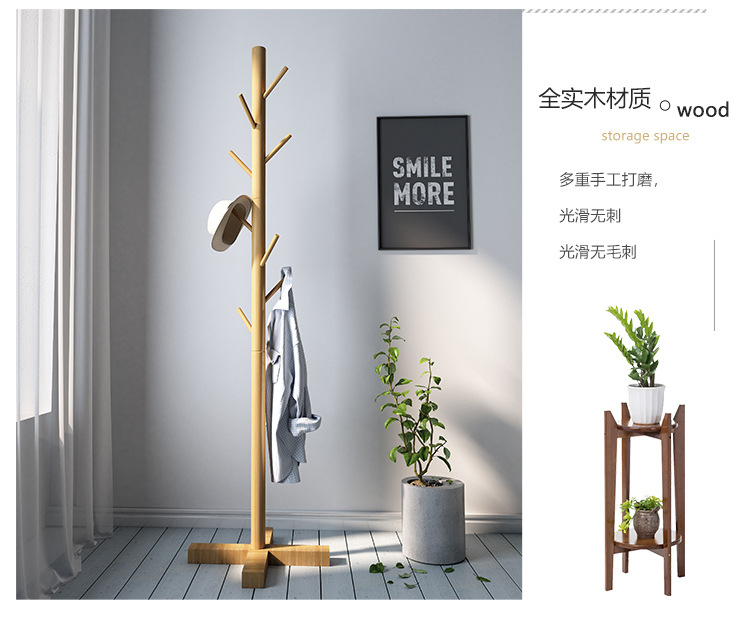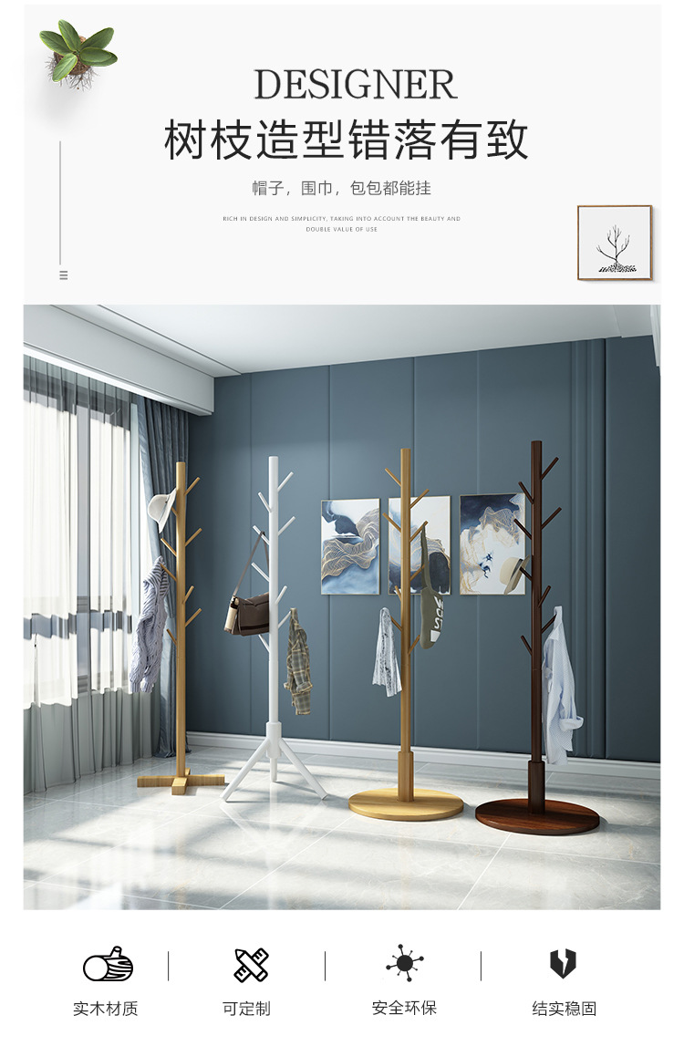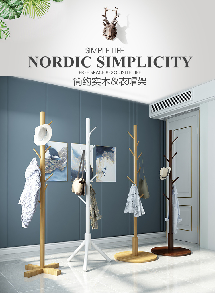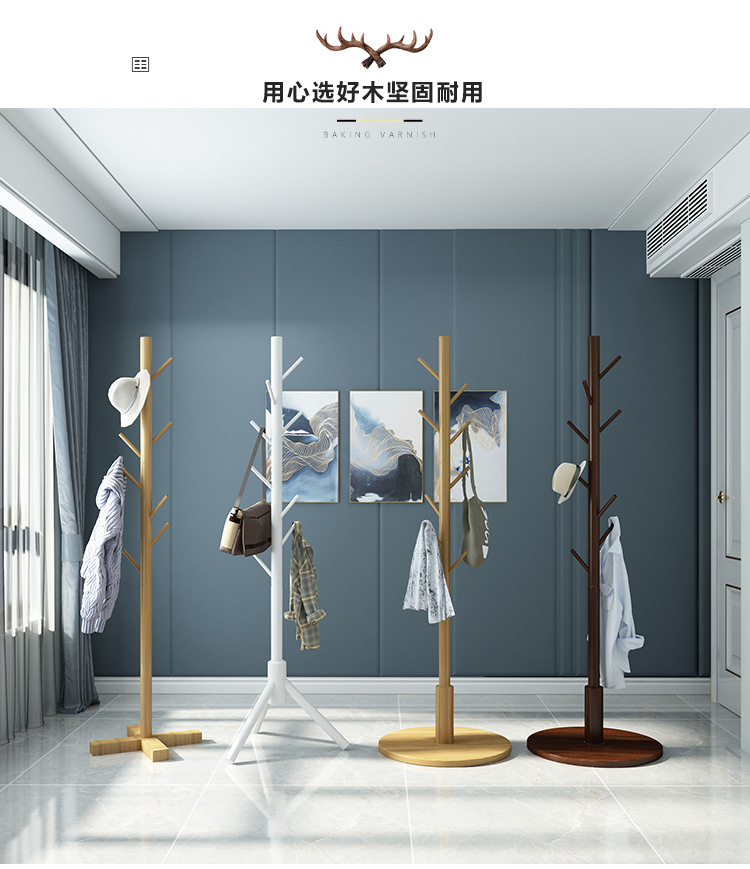 단단한 나무 코트 랙 가정용 간단한 옷 걸이 랙 룸 가방 랙 바닥 침실 수직 옷걸이스토어 가기