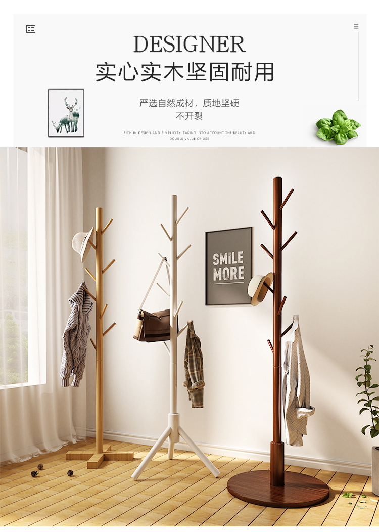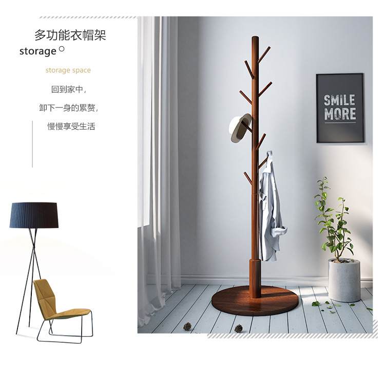 단단한 나무 코트 랙 가정용 간단한 옷 걸이 랙 룸 가방 랙 바닥 침실 수직 옷걸이